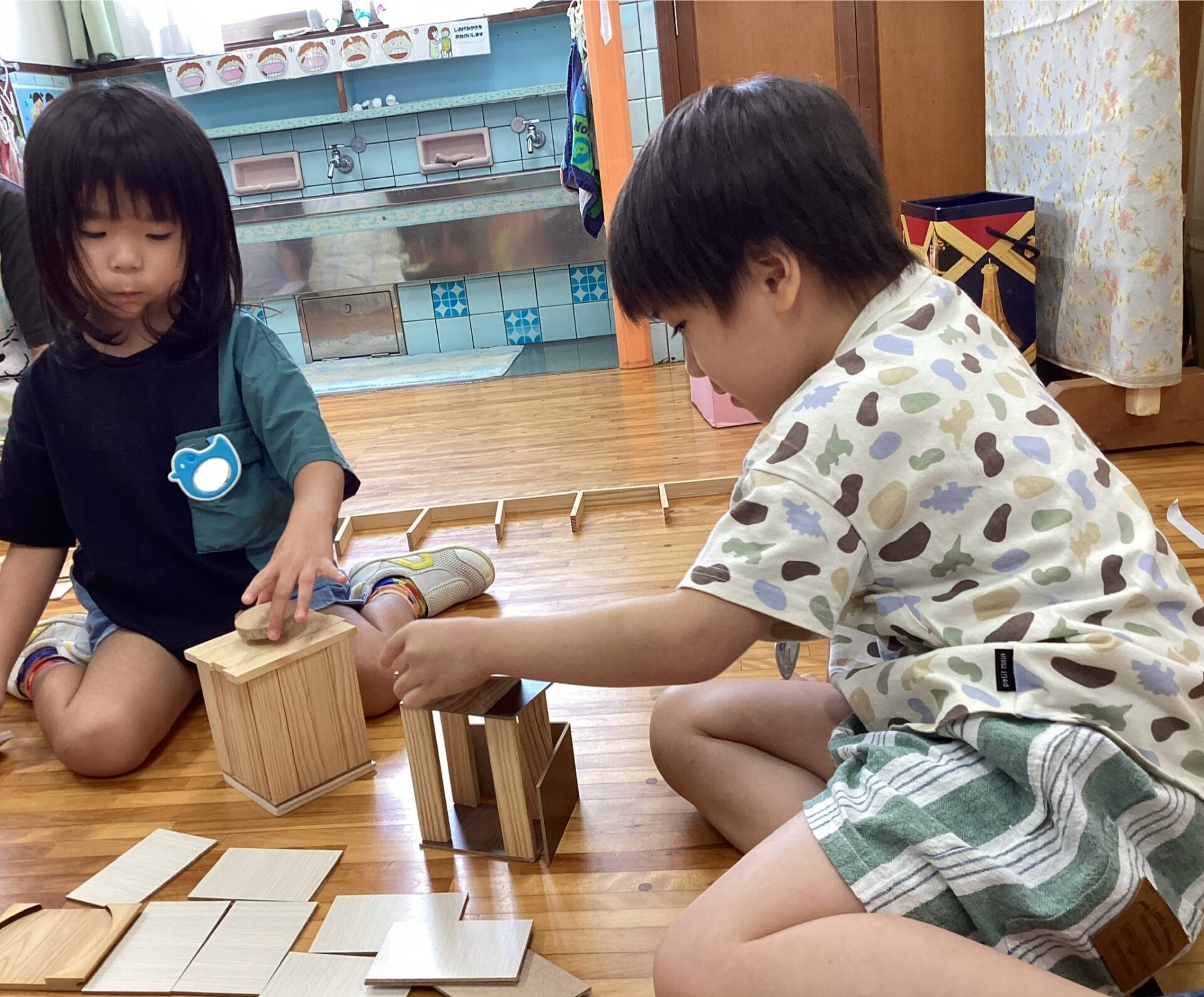 木片遊びからヒントを得たので、木の端材や雨樋、動物のイラストなどを用いて遊びが広がったらいいなと思っています😆