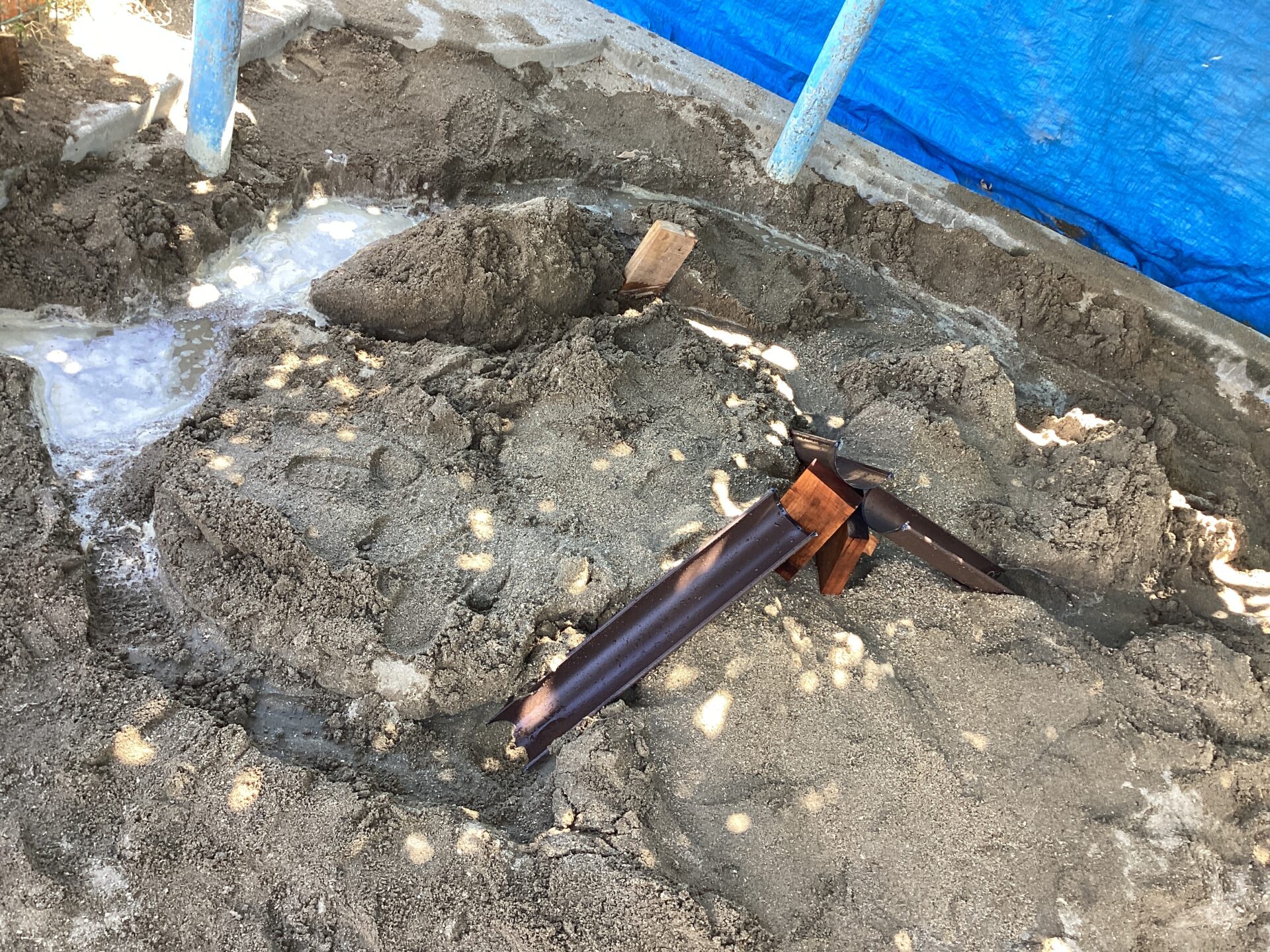 大人や友だちとたくさん砂を掘ったよ!ここを掘ったら流れるのかな?