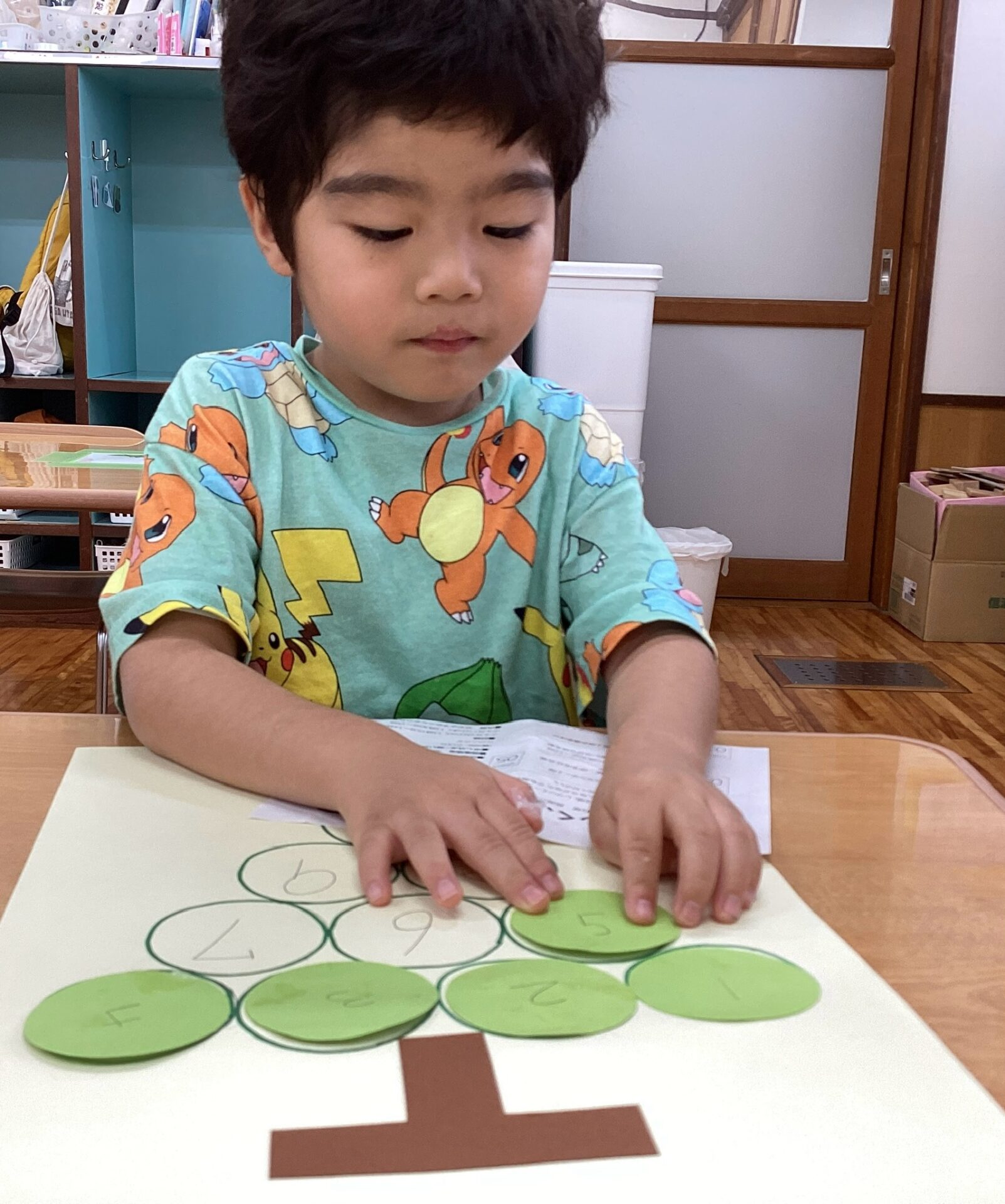 数字をなぞるように糊をつけて、上手に同じ数字のところに貼ることができていました👏