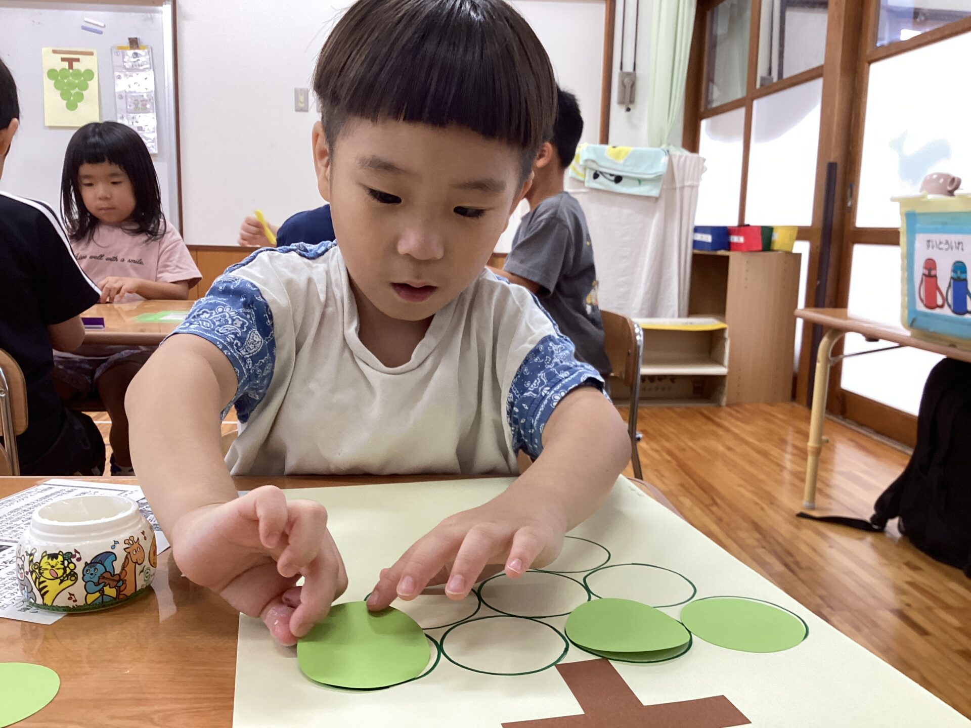 子どもたちの様子に合わせて、数字マッチングや丸マッチングなど、それぞれの段階にあわせたぶどうを作りました😊