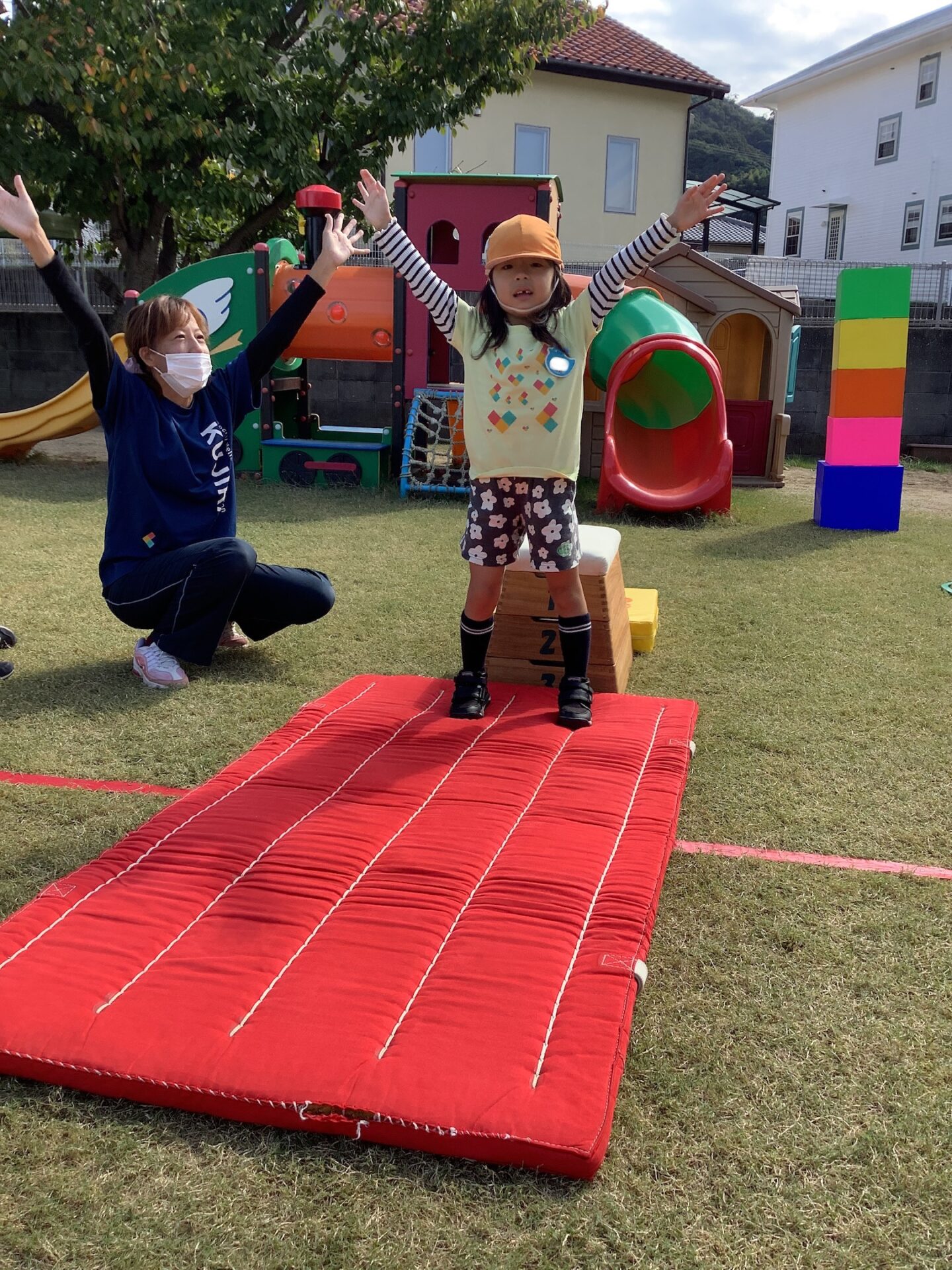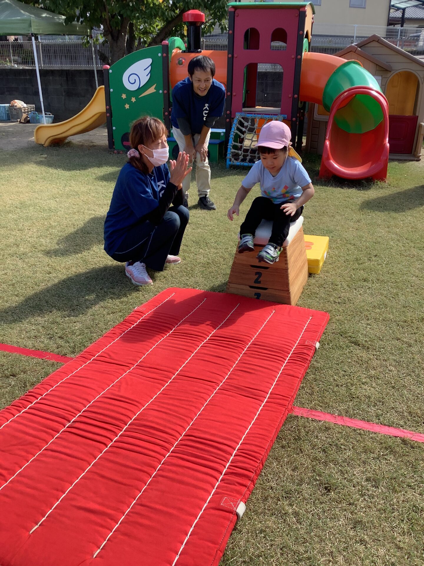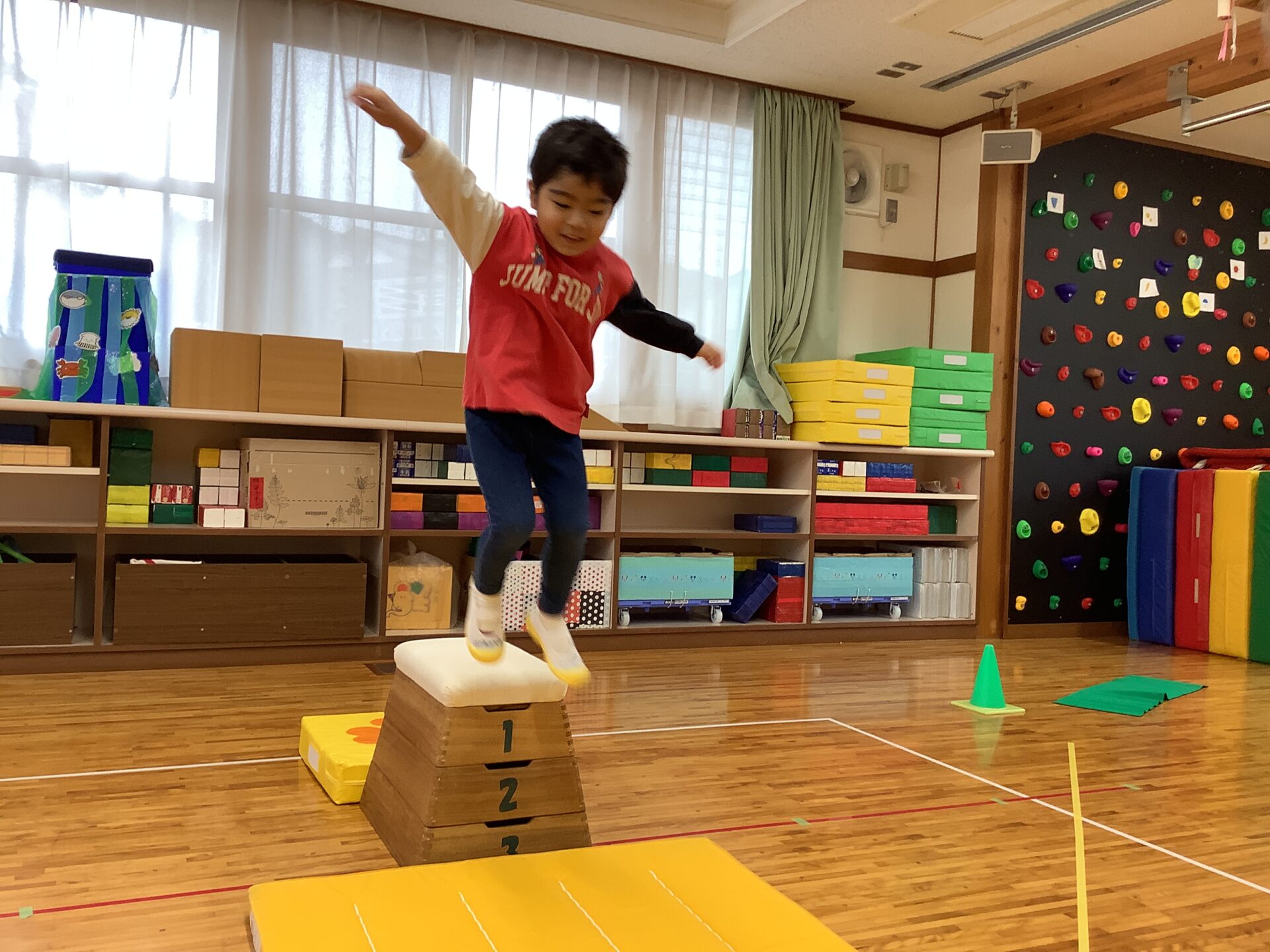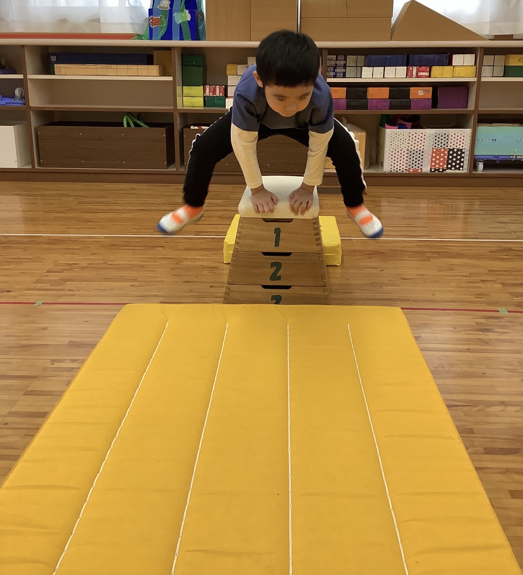 ゴールの最後では、今年は跳び箱に挑戦です。それぞれが安心できる方法でチャレンジします😊