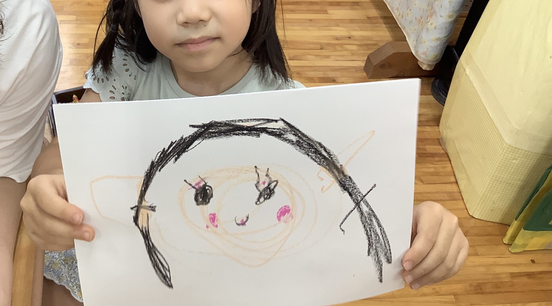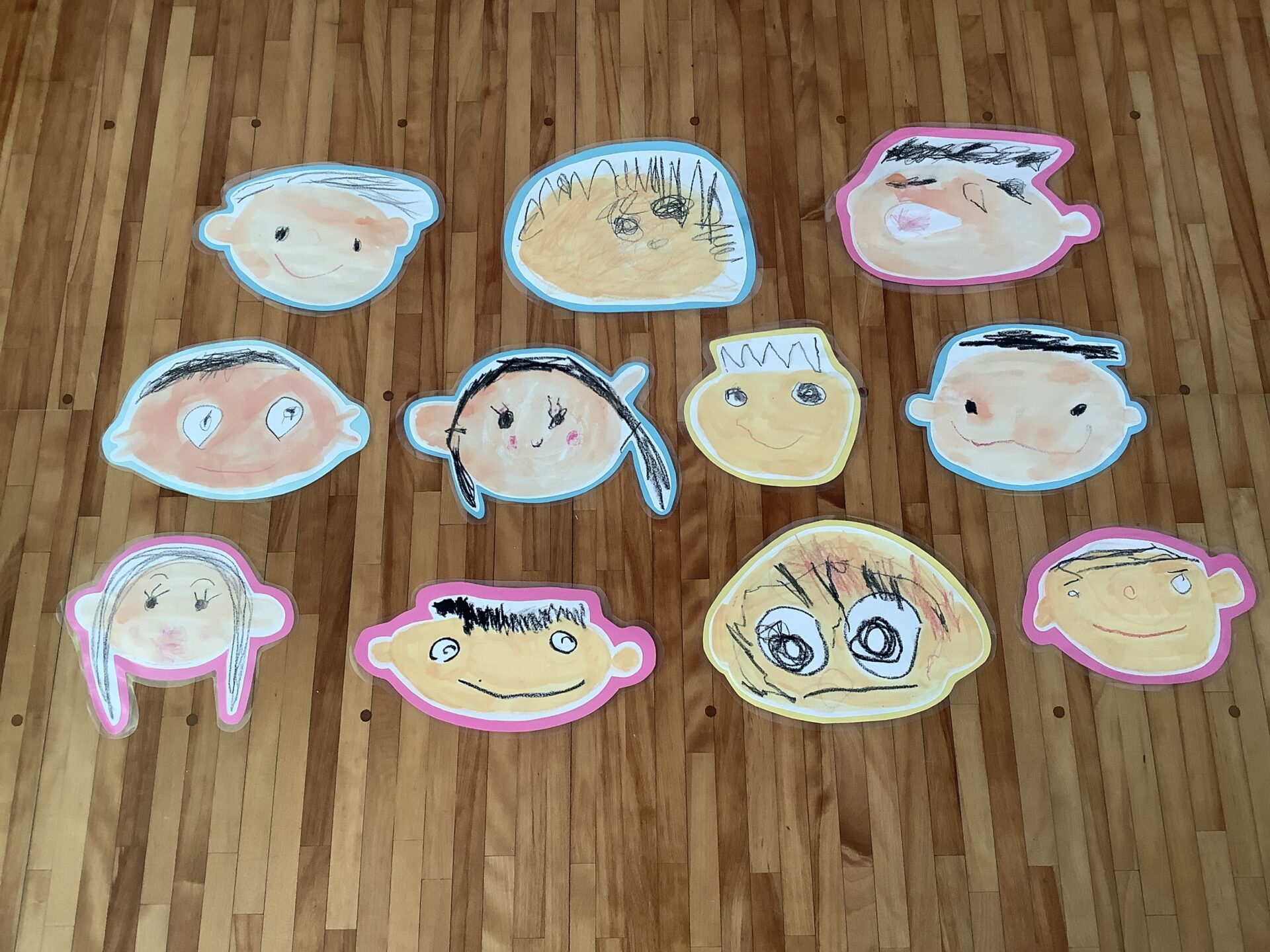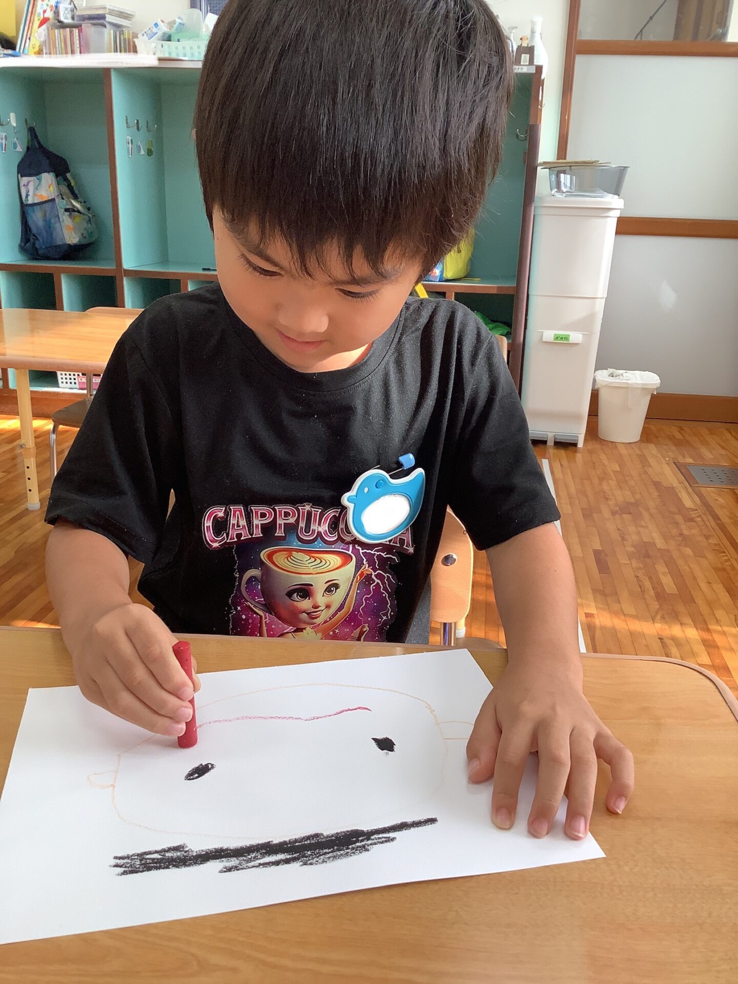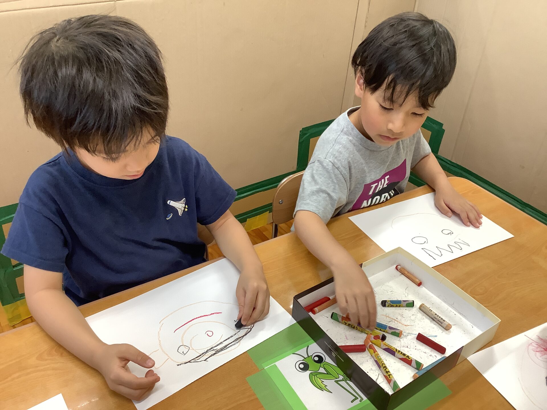 年長児は、入場門に飾る似顔絵を描きました🖍