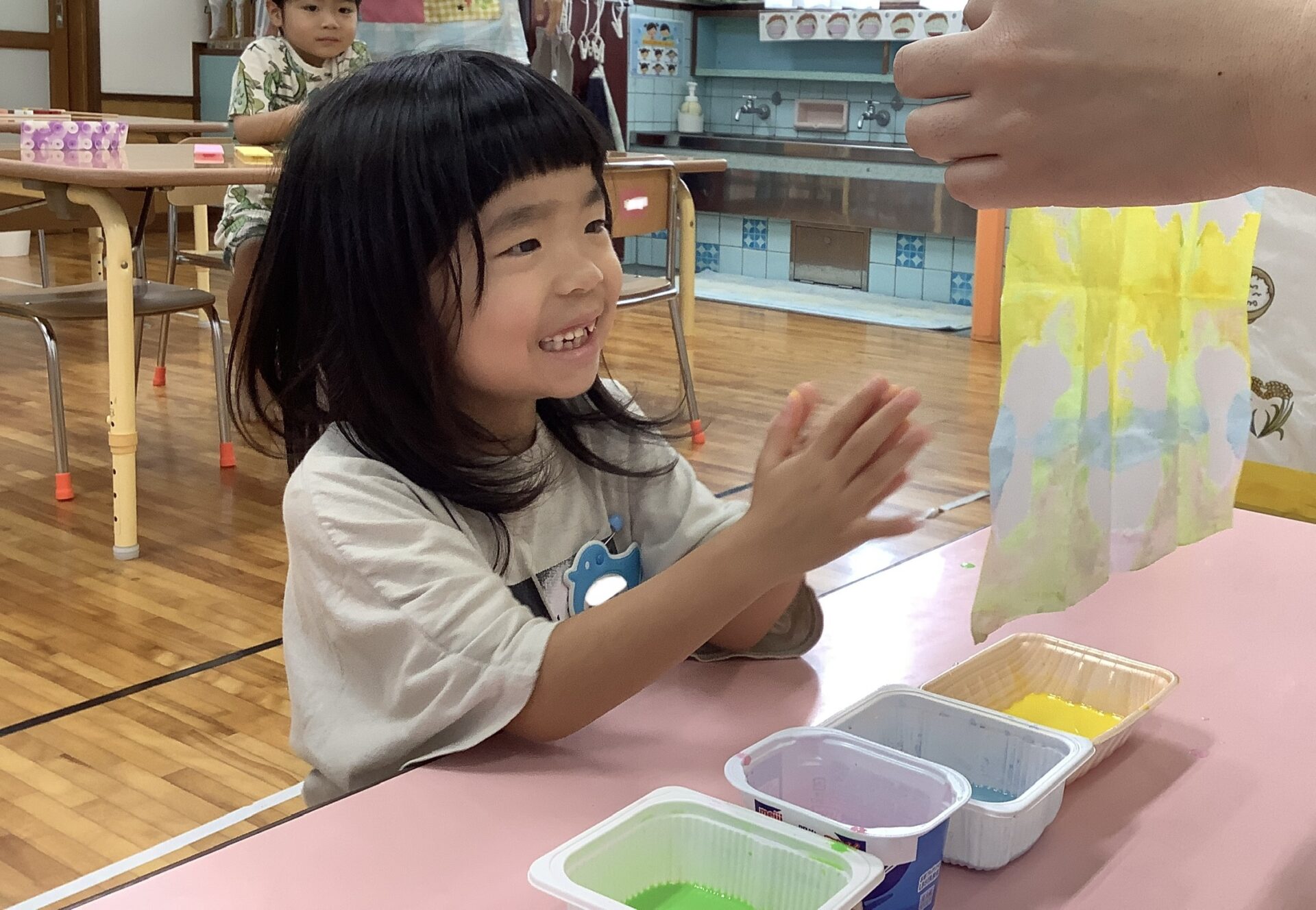 できた足形を見て「これ誰の?」と完成を楽しみにする姿も見られていました。
