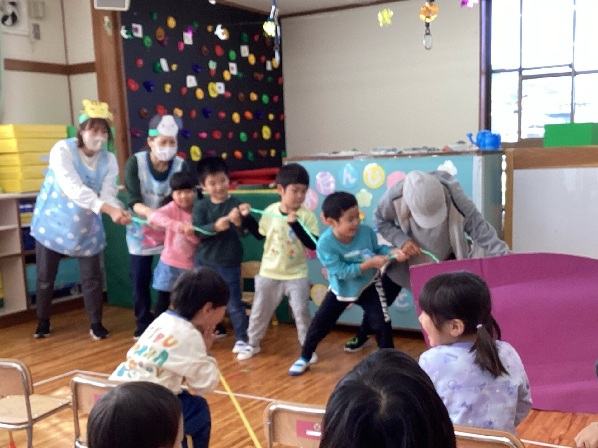 中々、抜けない、いも🍠に苦戦していると、10月のお誕生日の子どもたちが1人ずつお手伝いしてくれました。サプライズで、先生動物🐕🐈🐀登場!