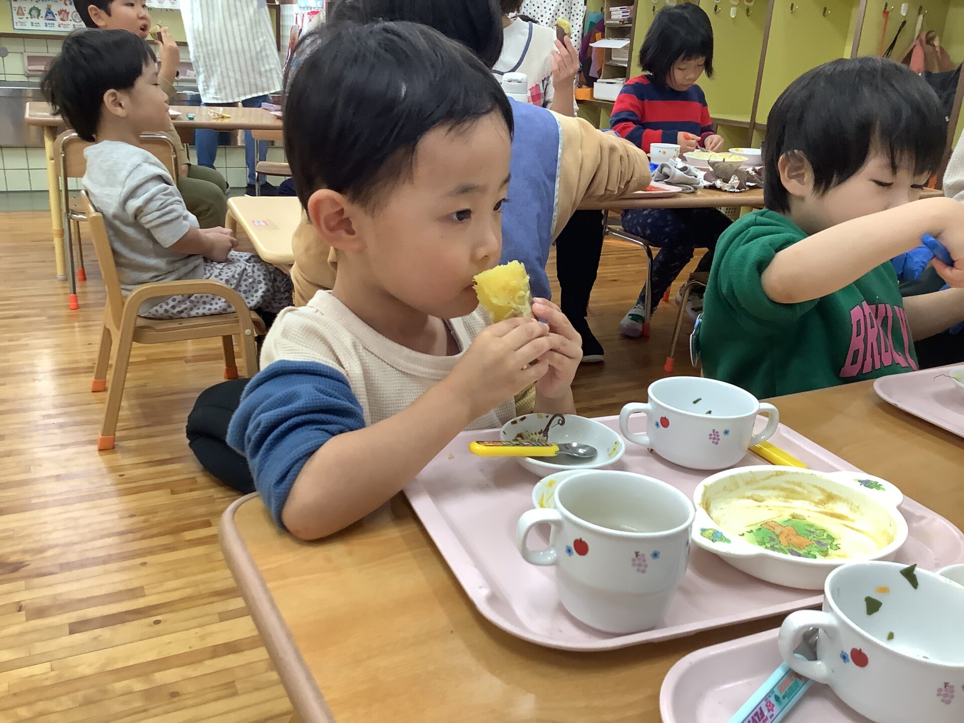 焼き芋🥔にして、みんなで美味しく食べました😋