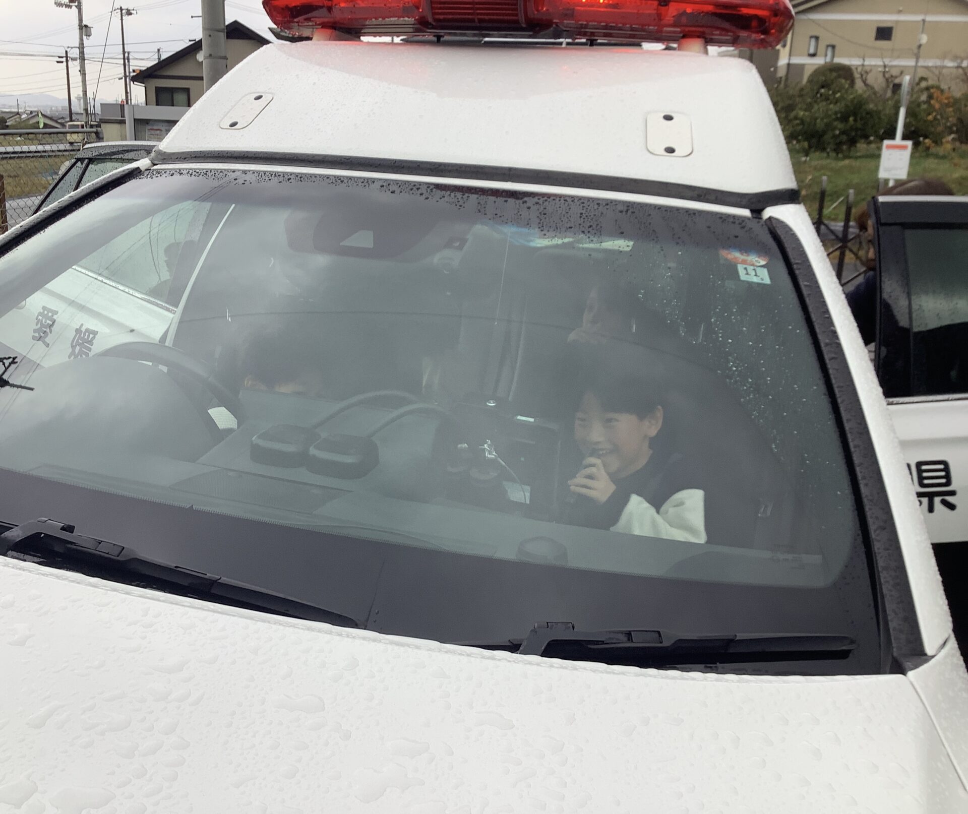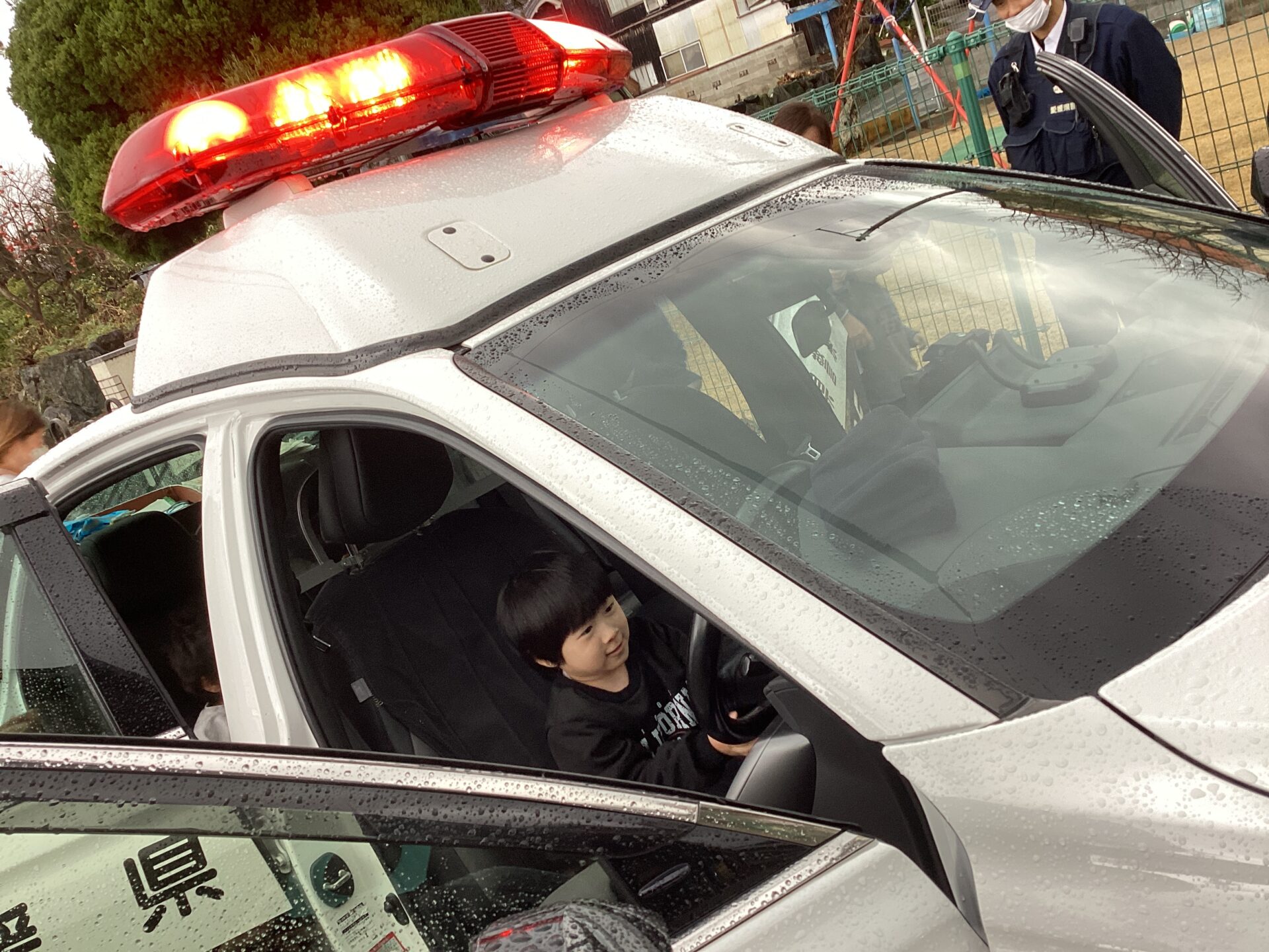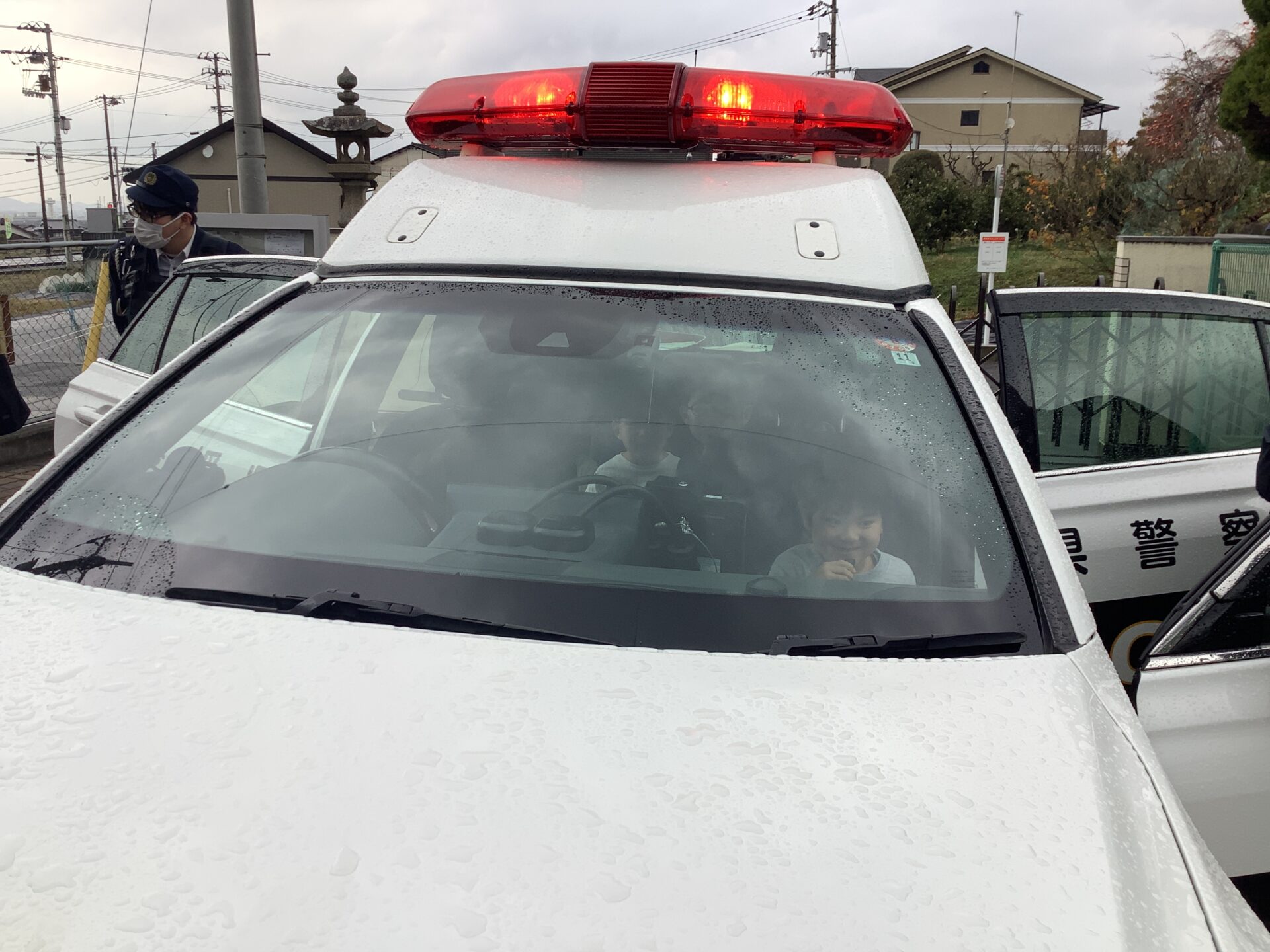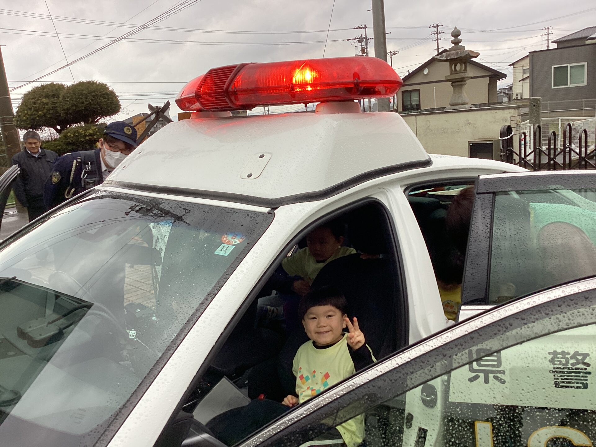 パトカーに乗せてもらったり、ハンドルやマイクを持たせてもらったりして嬉しそうな子どもたちでしたよ😄