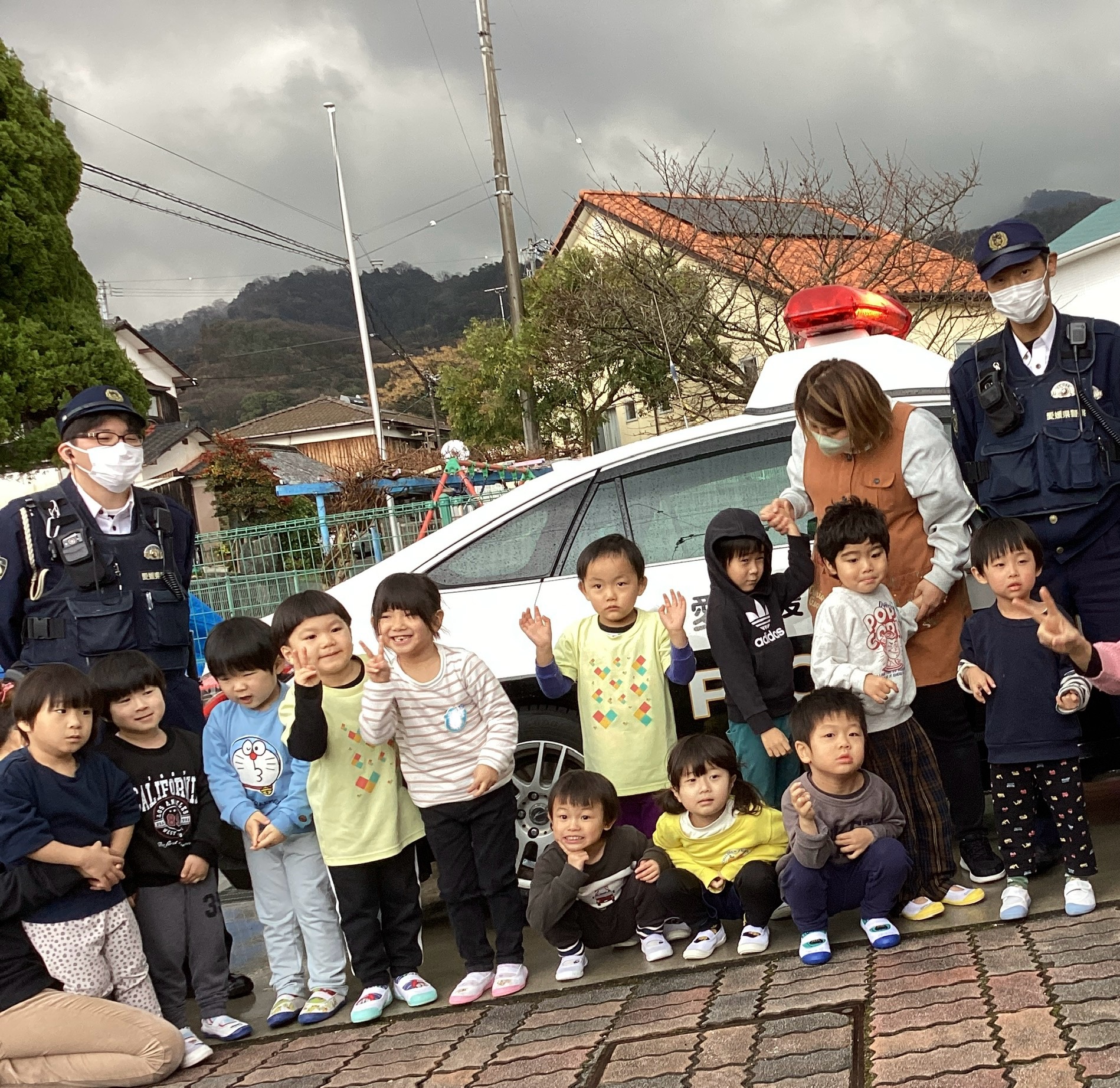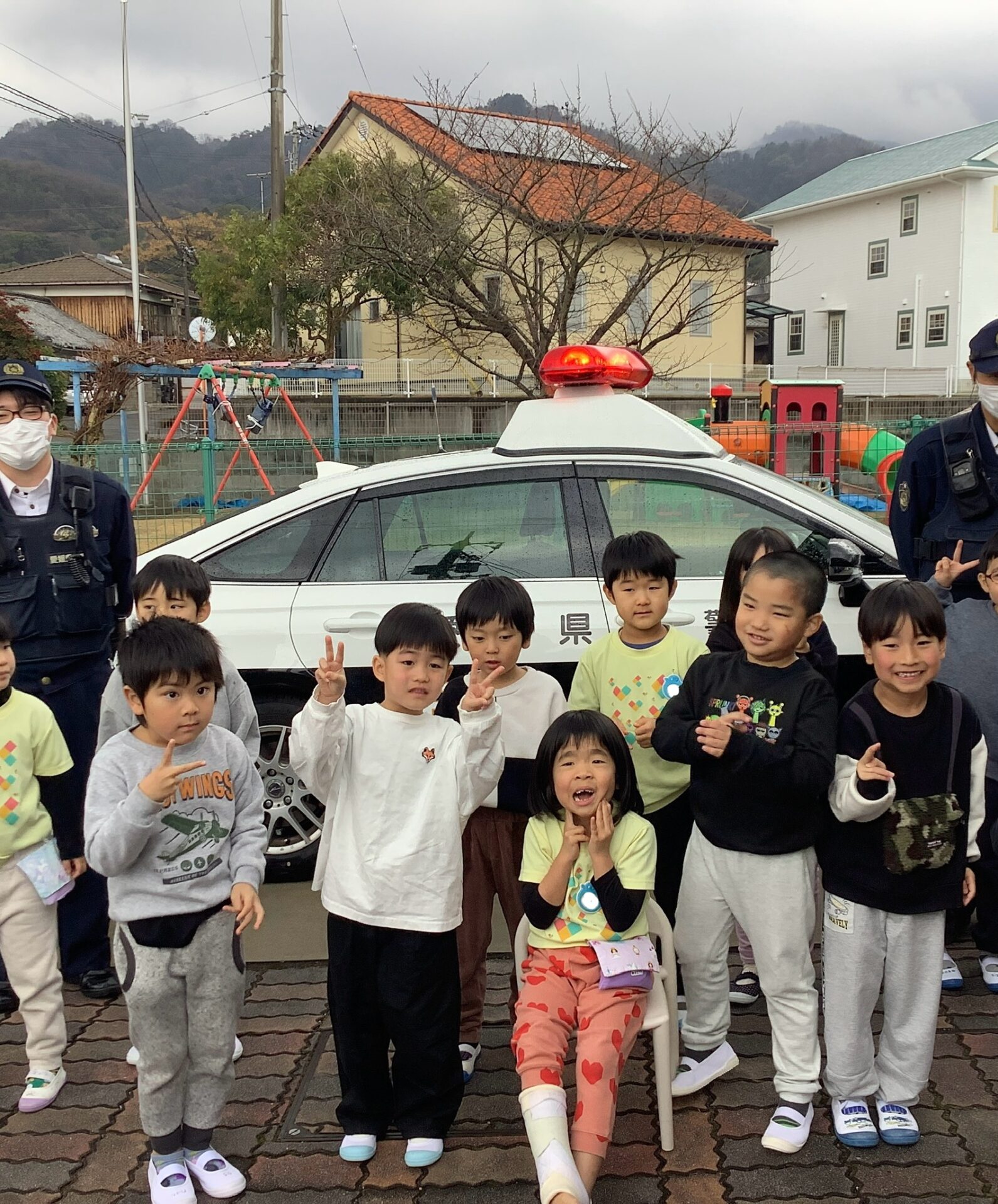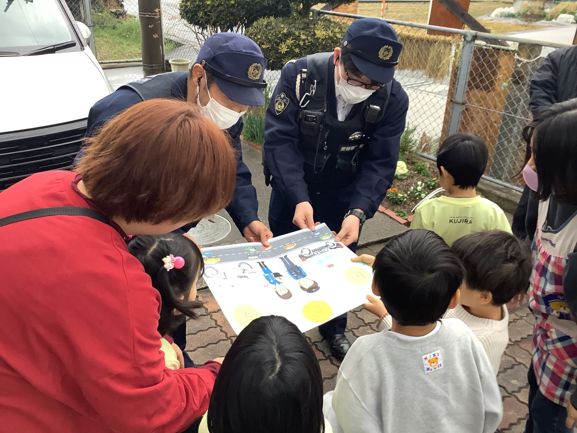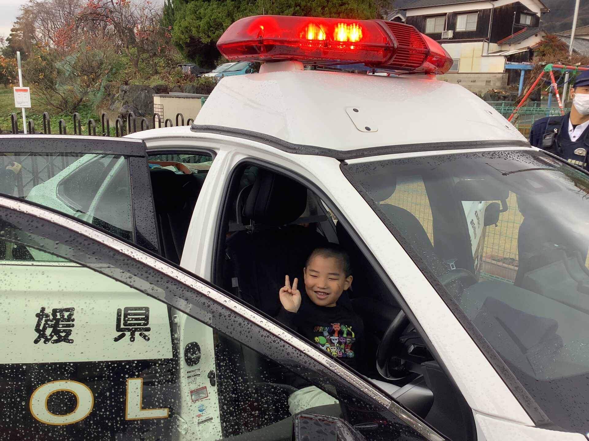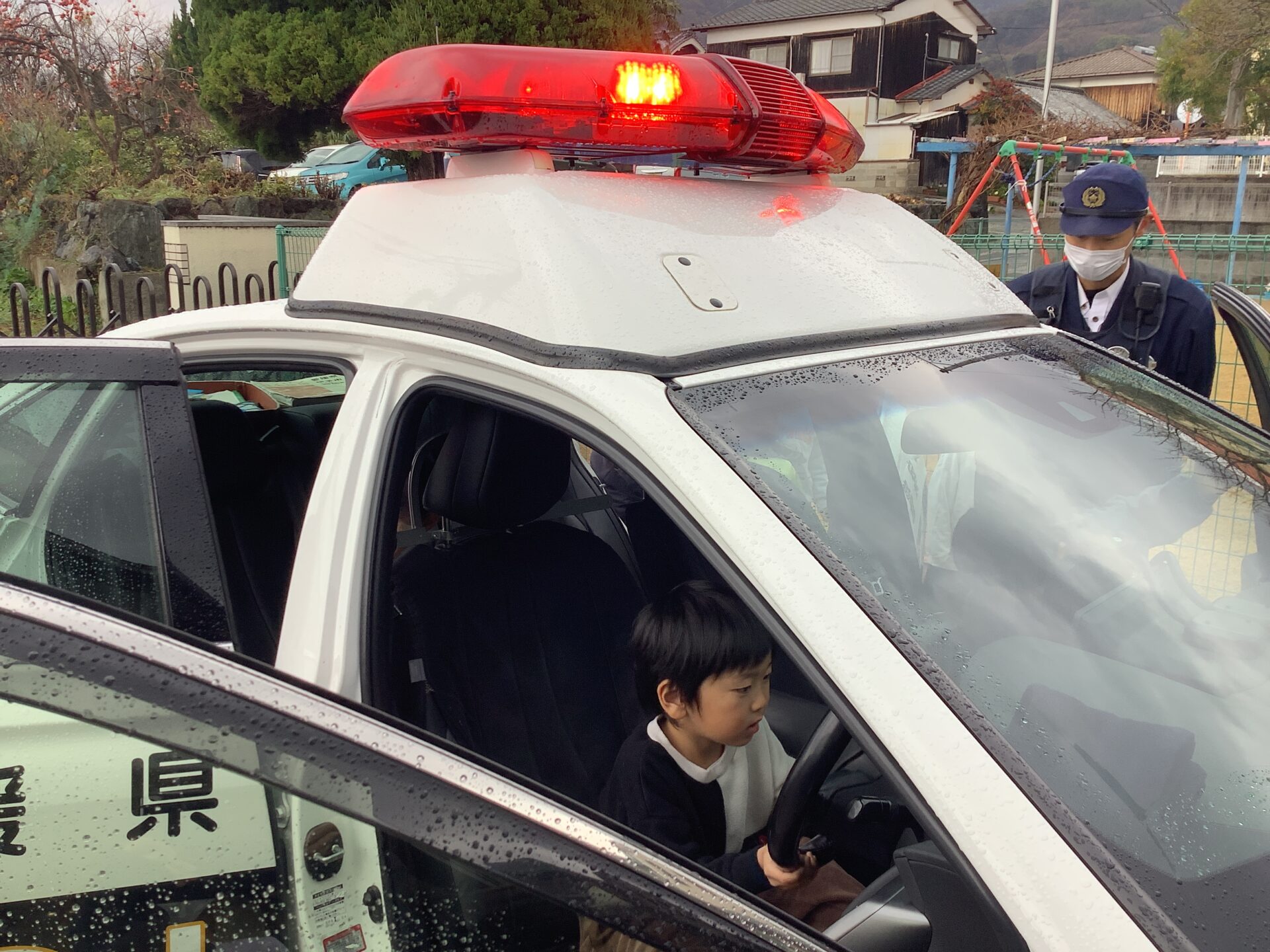パトカーに乗せてもらったり、ハンドルやマイクを持たせてもらったりして嬉しそうな子どもたちでしたよ😄