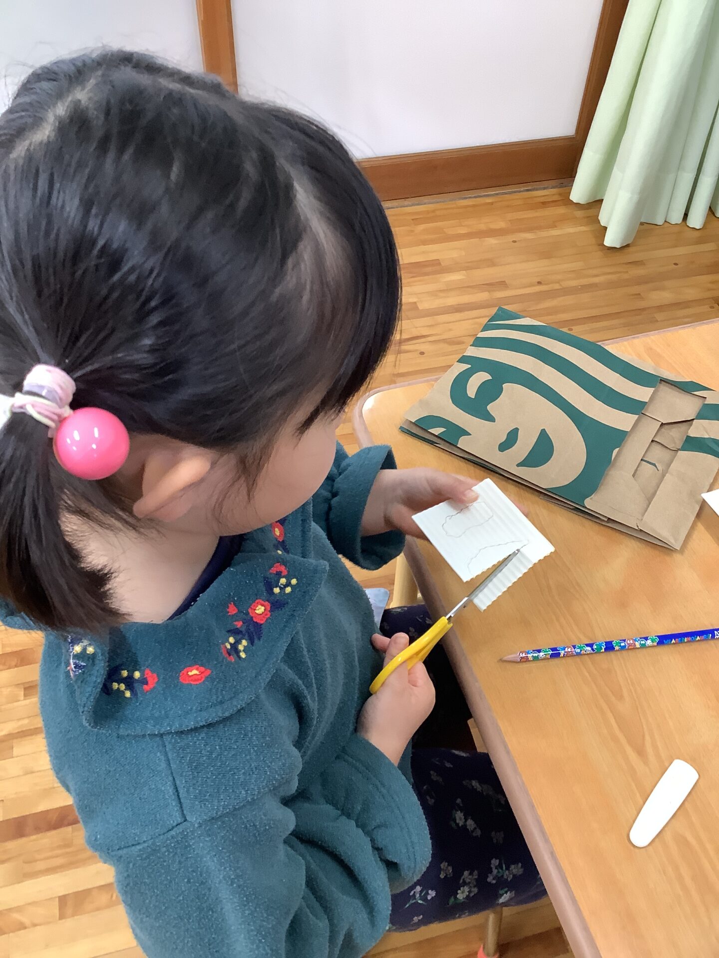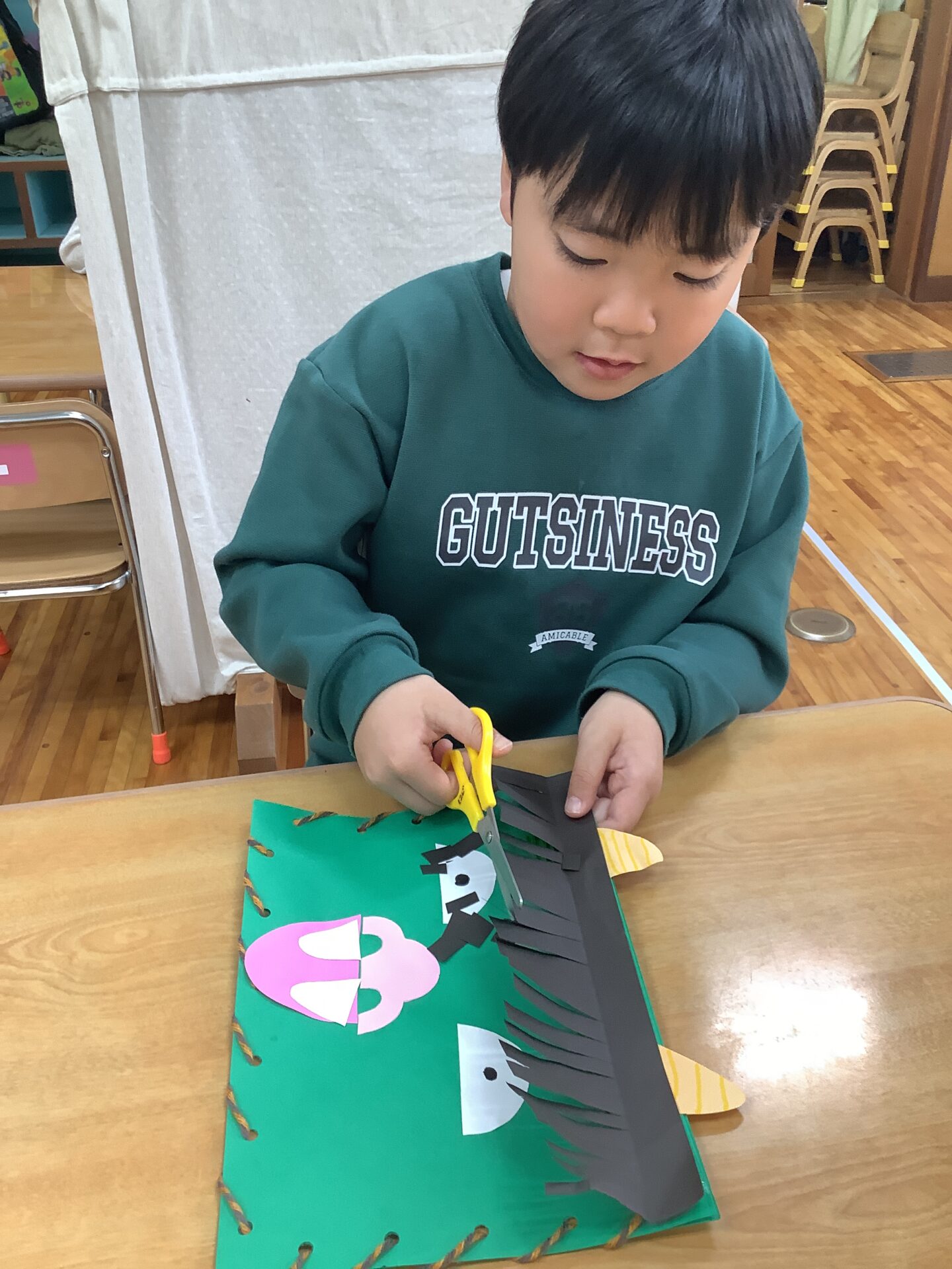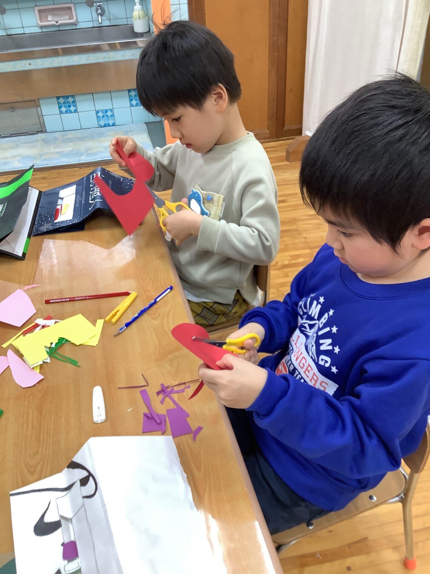 大人と一緒に考えて、鉛筆で形を切り頑張って作ることができました👏自由に作るって難しいことですが、経験としては必要なこともあるので、あと少しの制作の中で取り組めるようにしていきたいと思います✂️