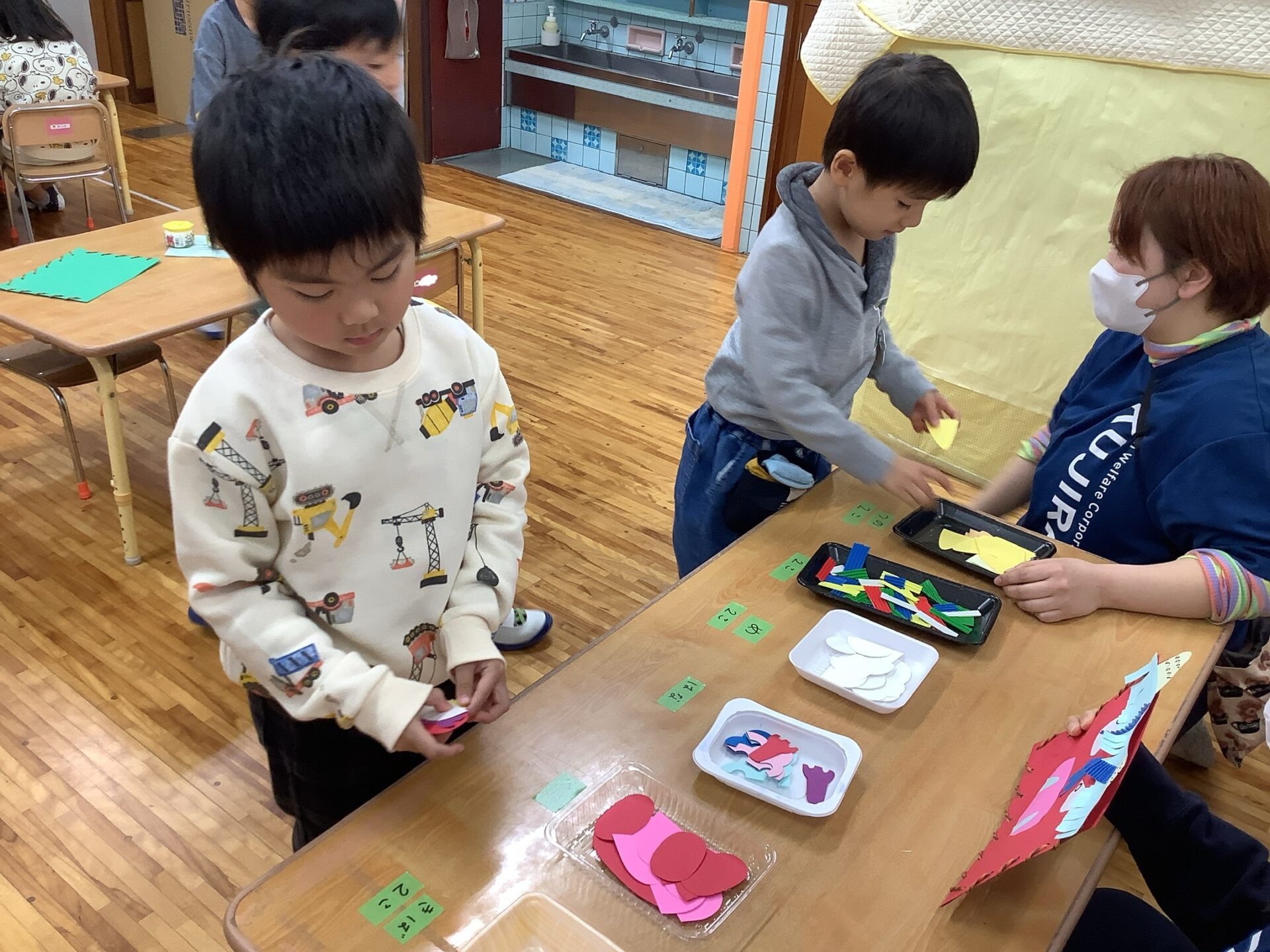 子どもたちから出た意見をもとに、少し難しいですが考えて作ることに挑戦していました✨