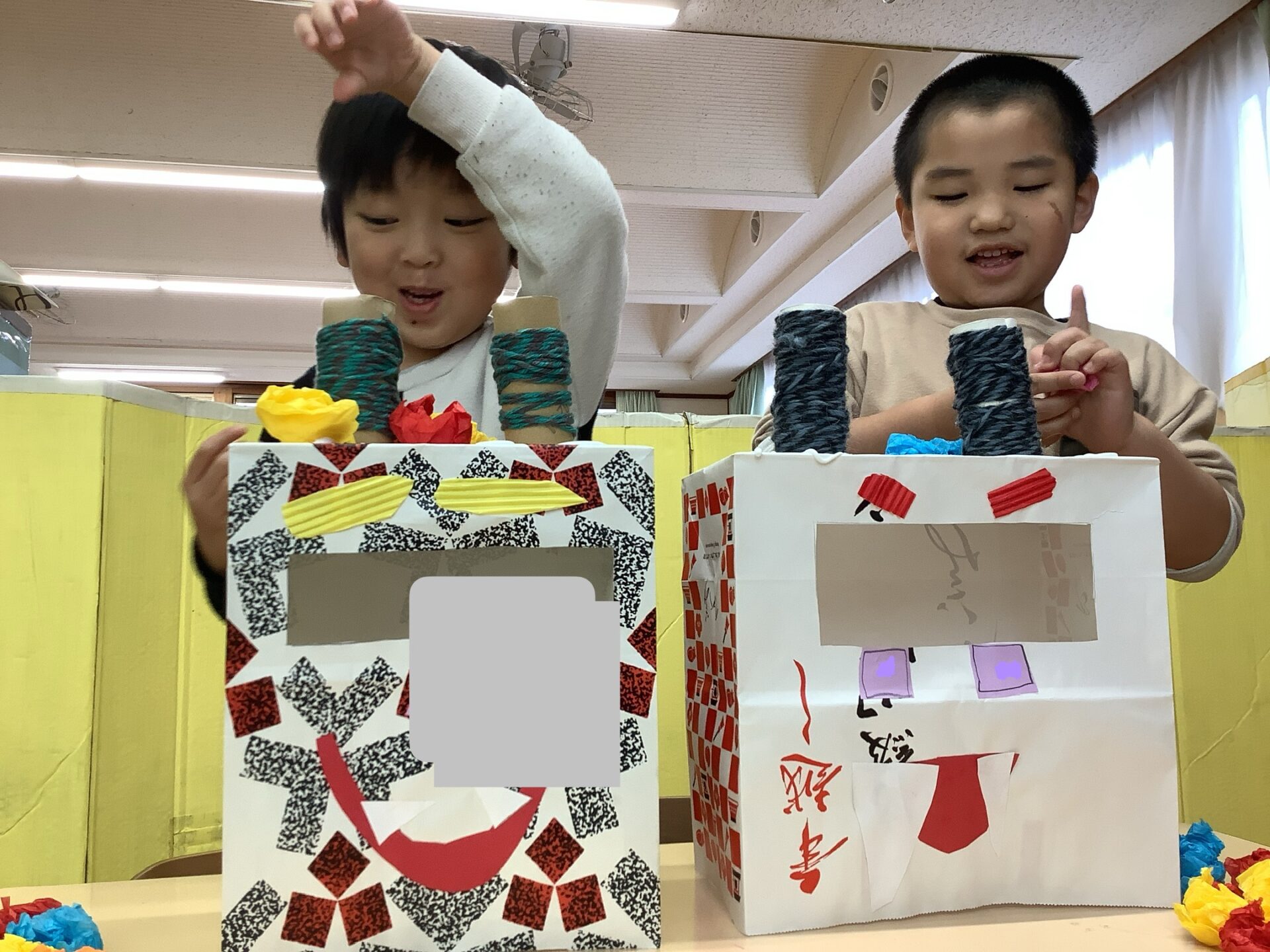 今年度は、紙袋を使って作りました🛍️