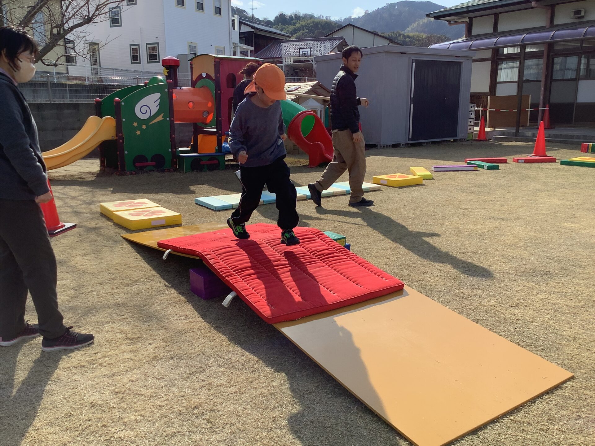 開放的な園庭で、普段よろしくダイナミックなサーキットに子どもたちも楽しそうでした😄