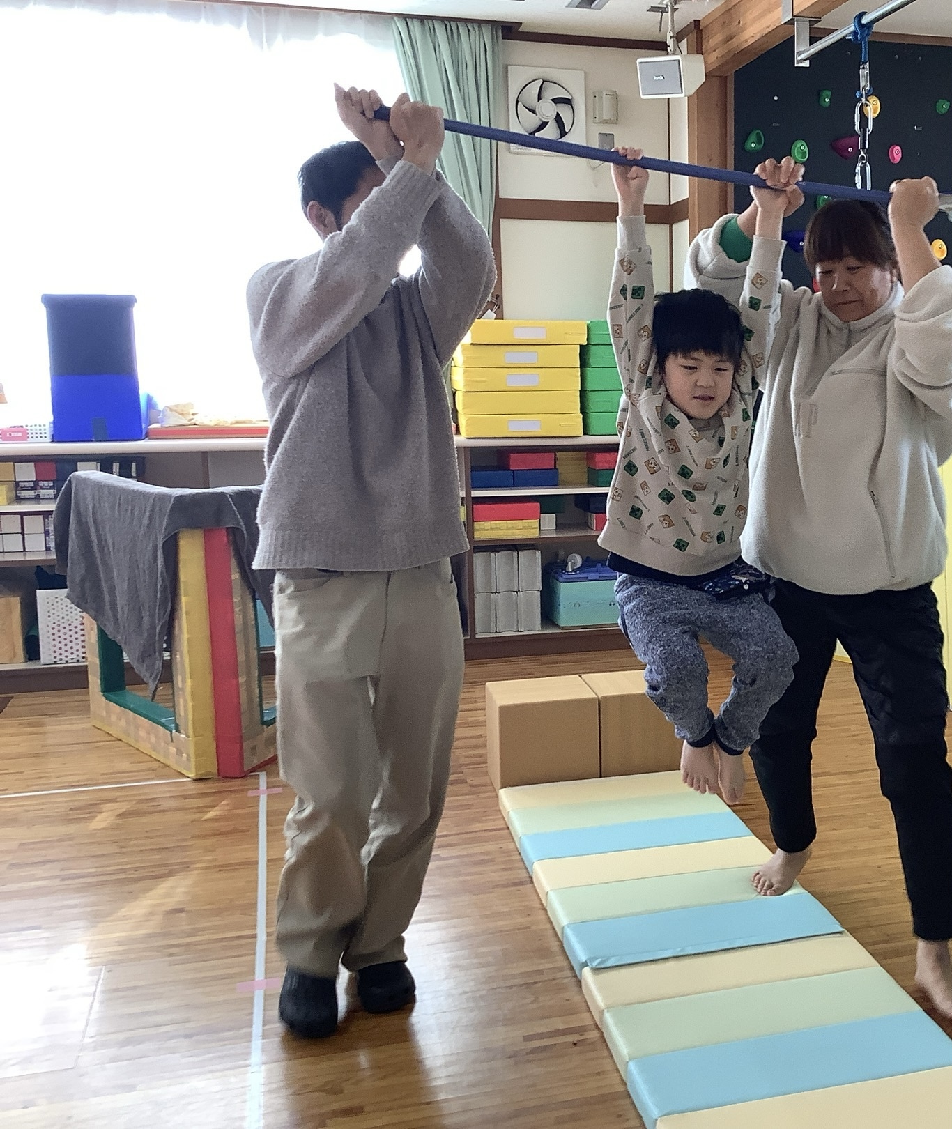 あえてコースに変化を持たせて、足元に障害物を置くことで意識してぶらさがれました!ちょっとドキドキしたね💦