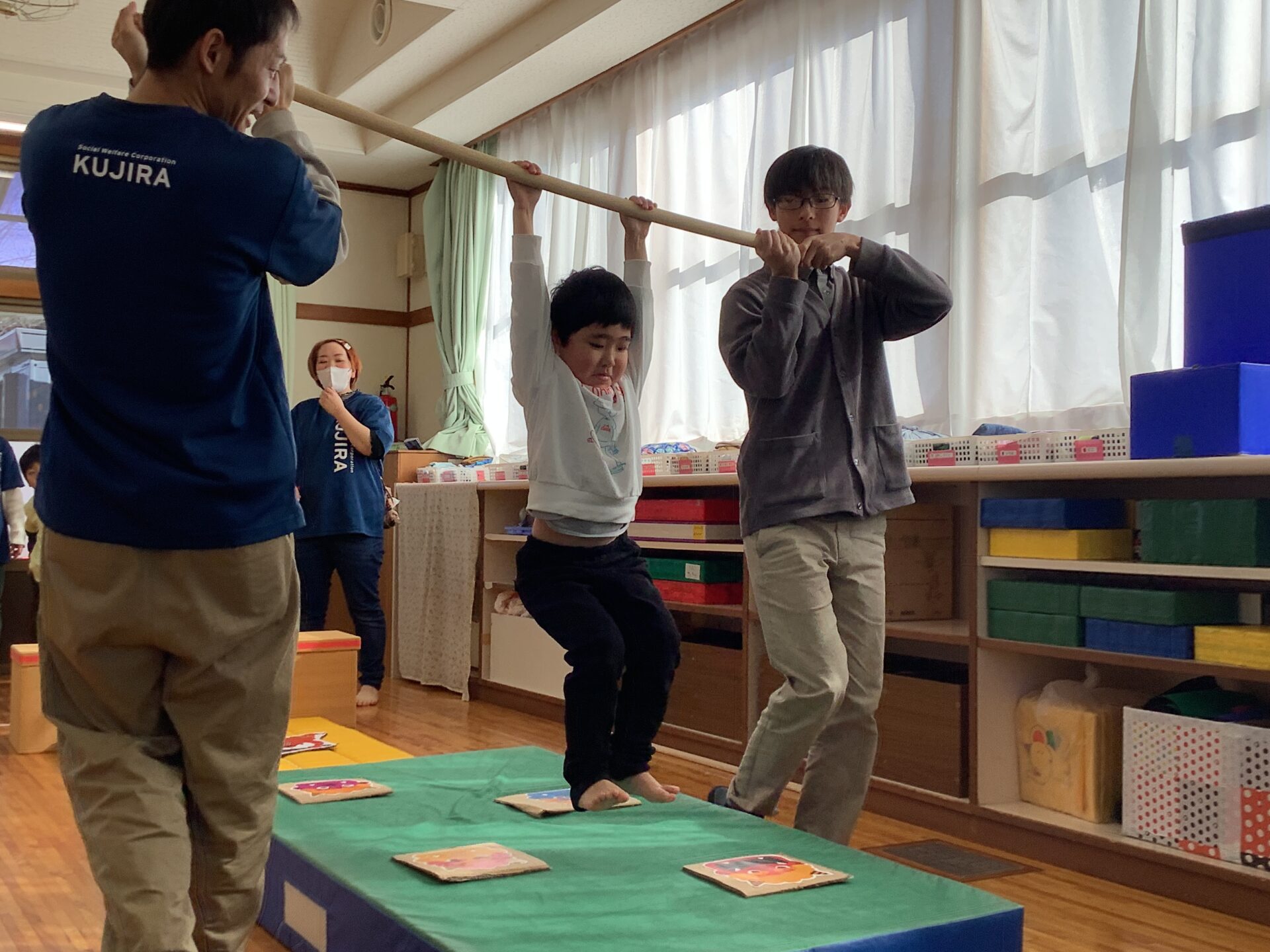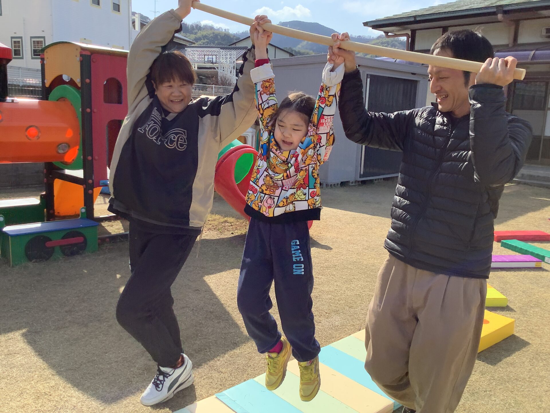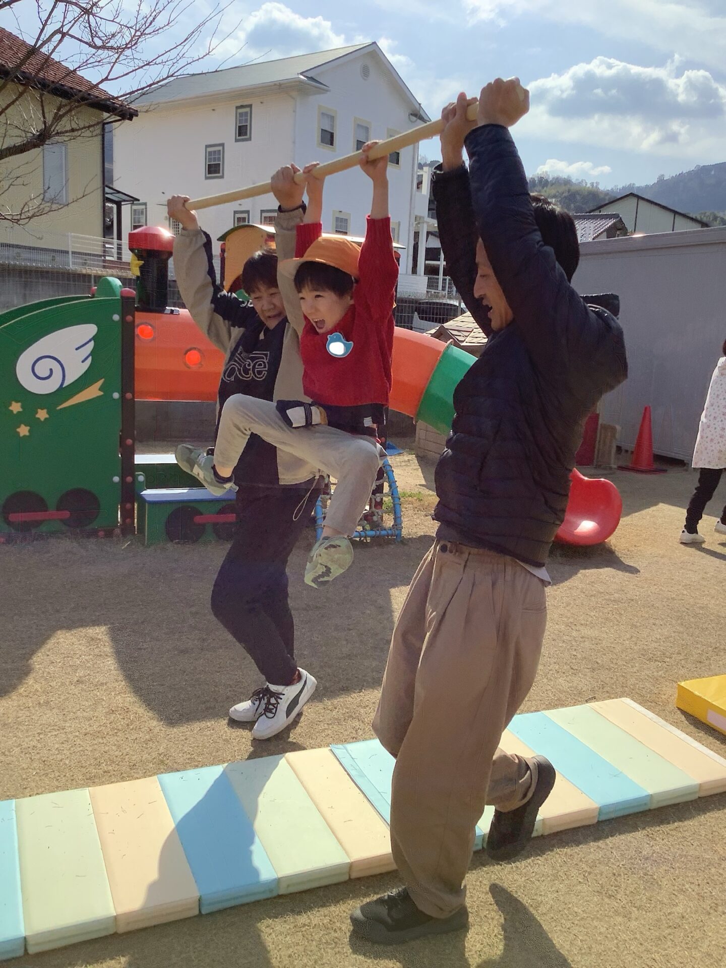 木の棒をしっかり握ってぶら下がることができるかな💪