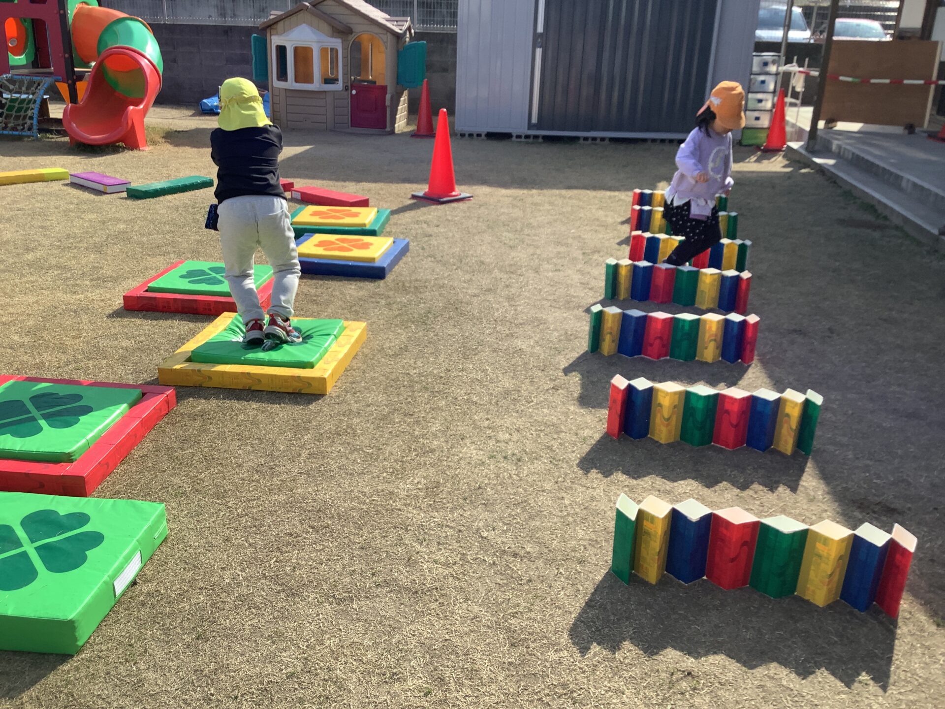 開放的な園庭で、普段よろしくダイナミックなサーキットに子どもたちも楽しそうでした😄