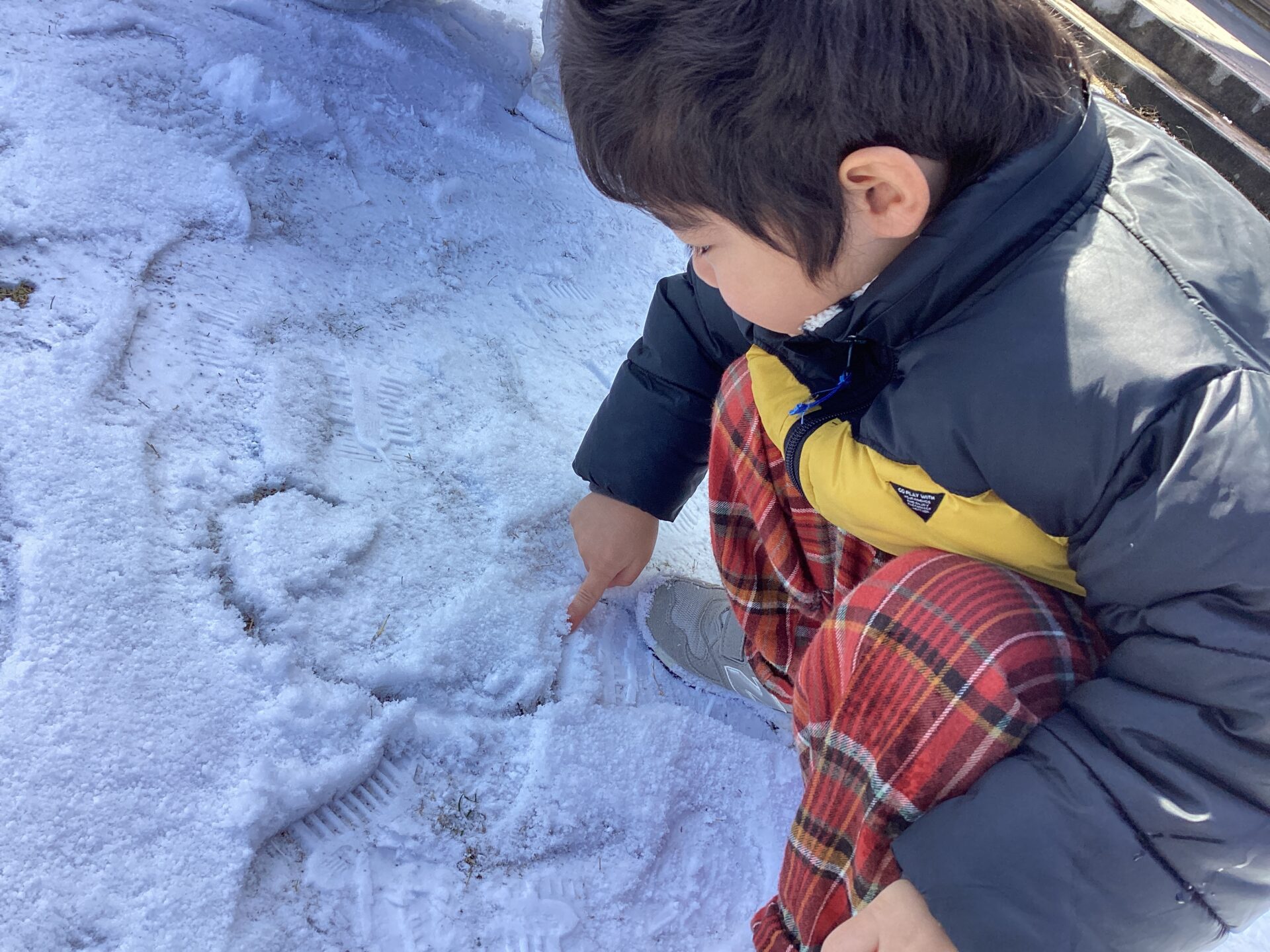 そーっと触ったり、ぎゅっぎゅっと固めたり、丸めたり、雪に字を書いたり、、、。
