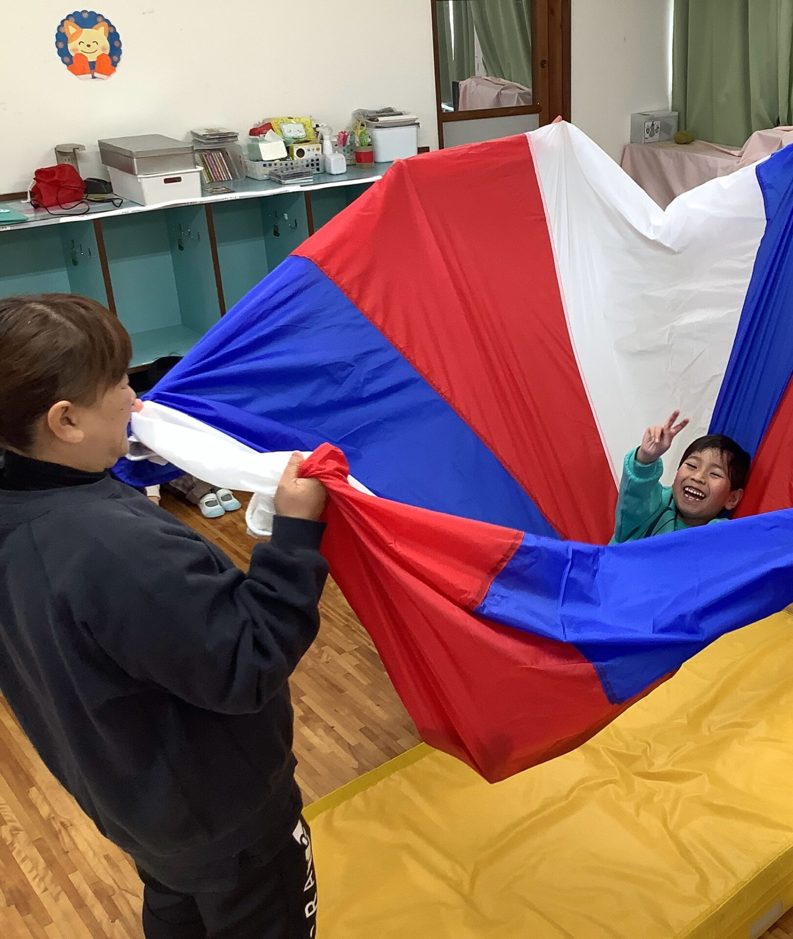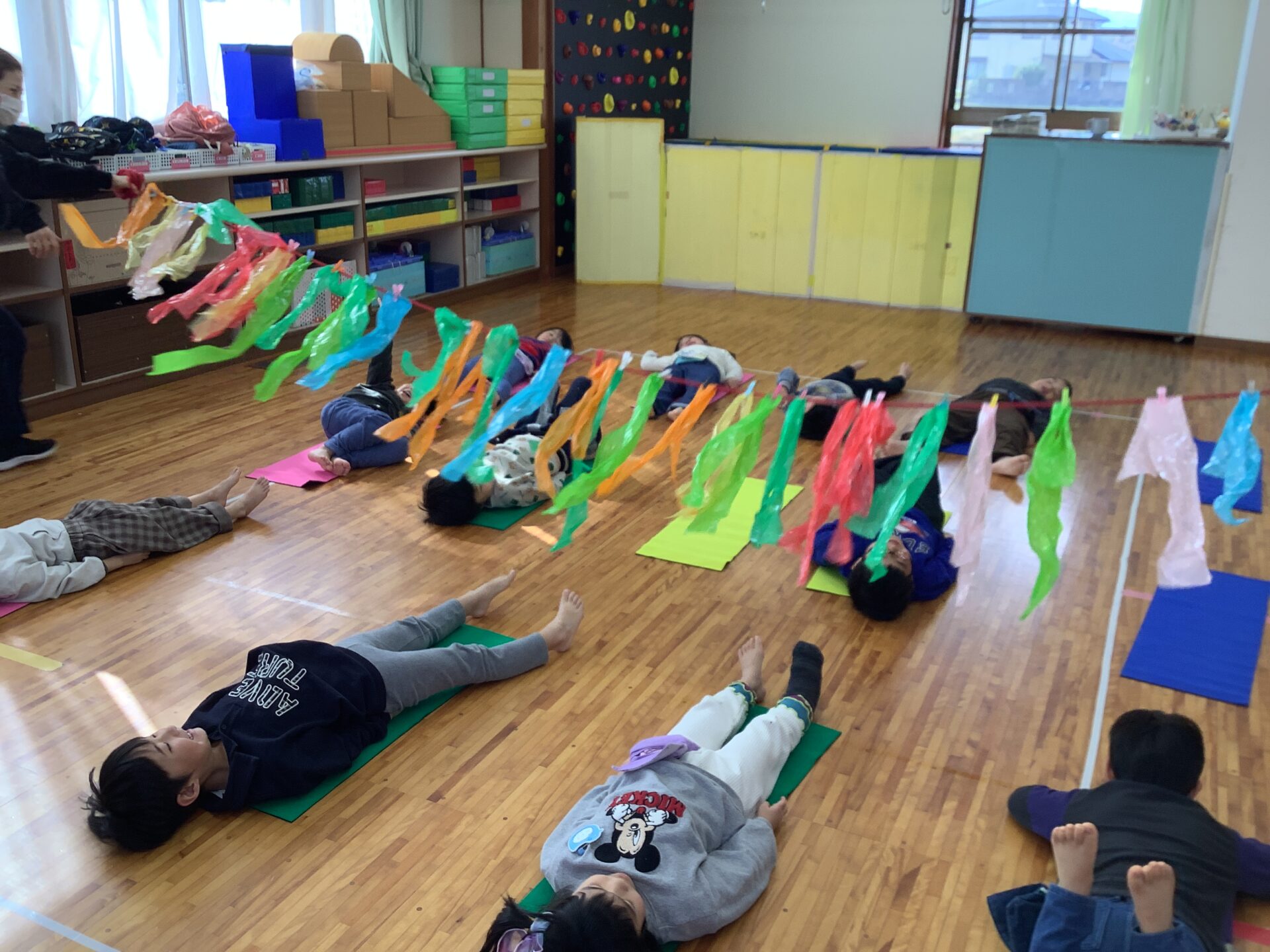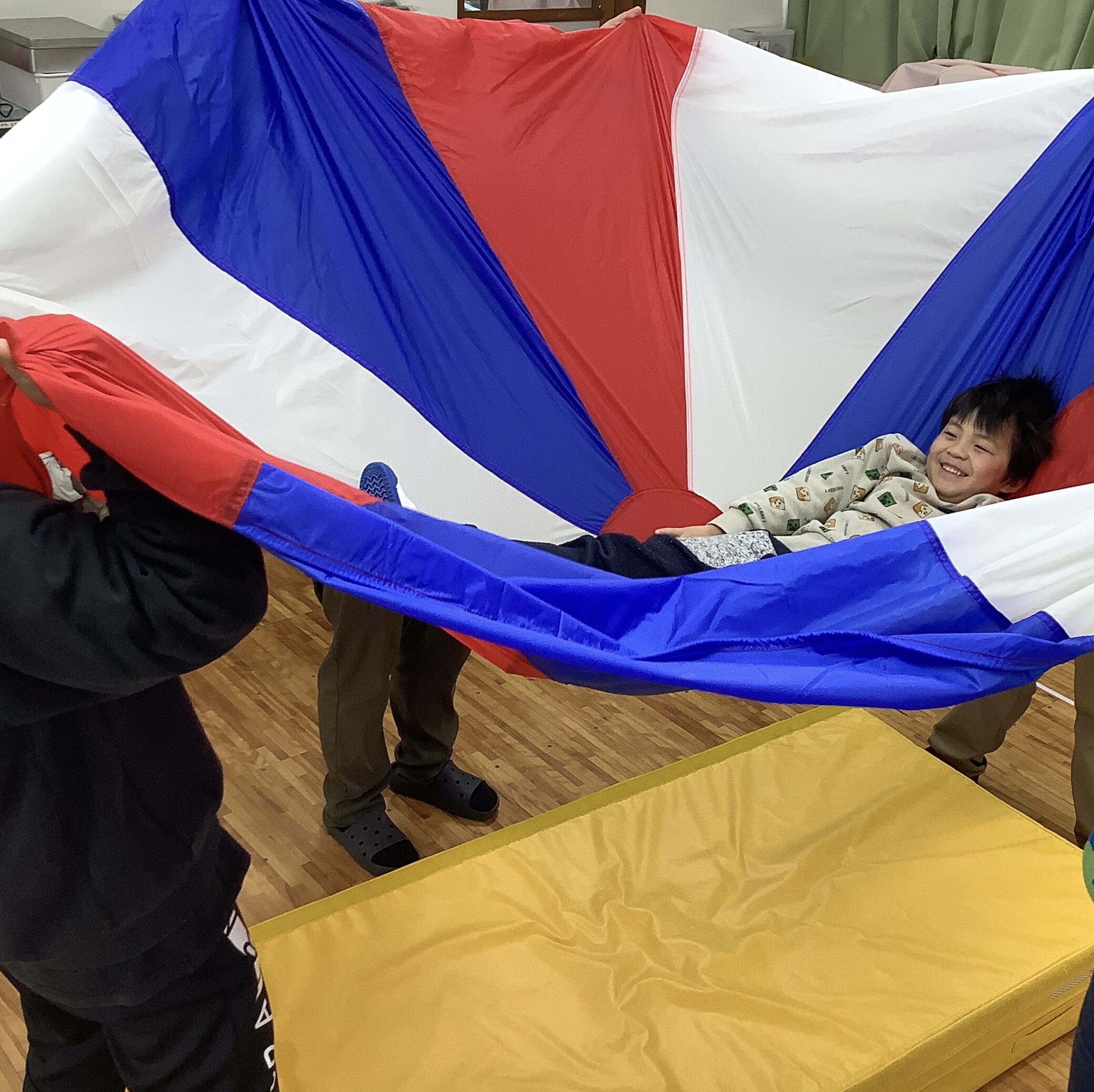 先日は、はじめて外でミュージックケアをして、室内でパラシュートも楽しみましたよ✨