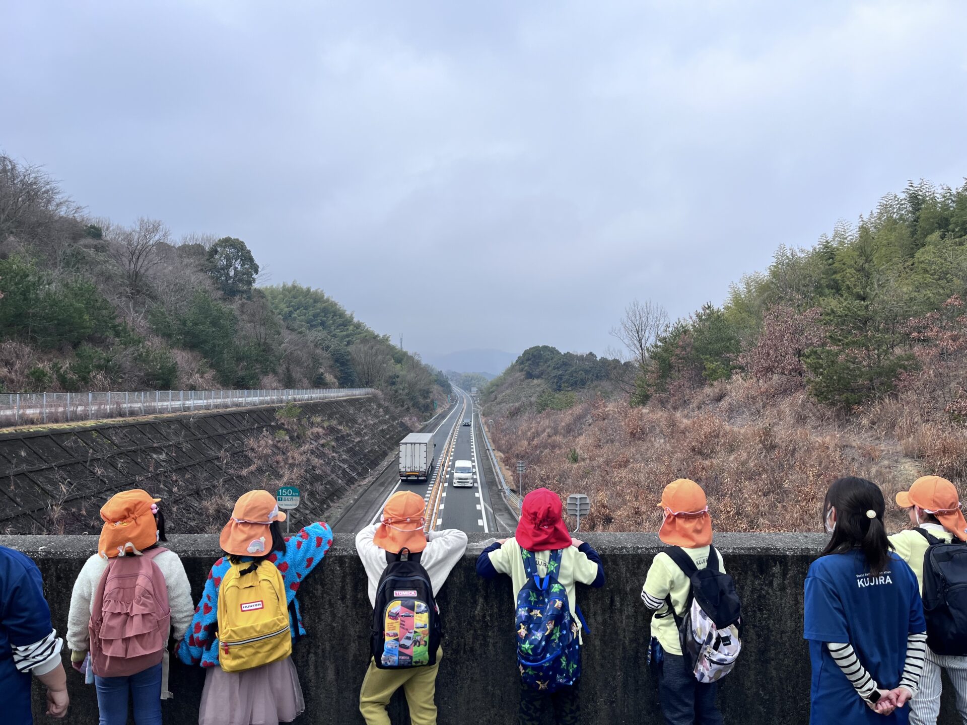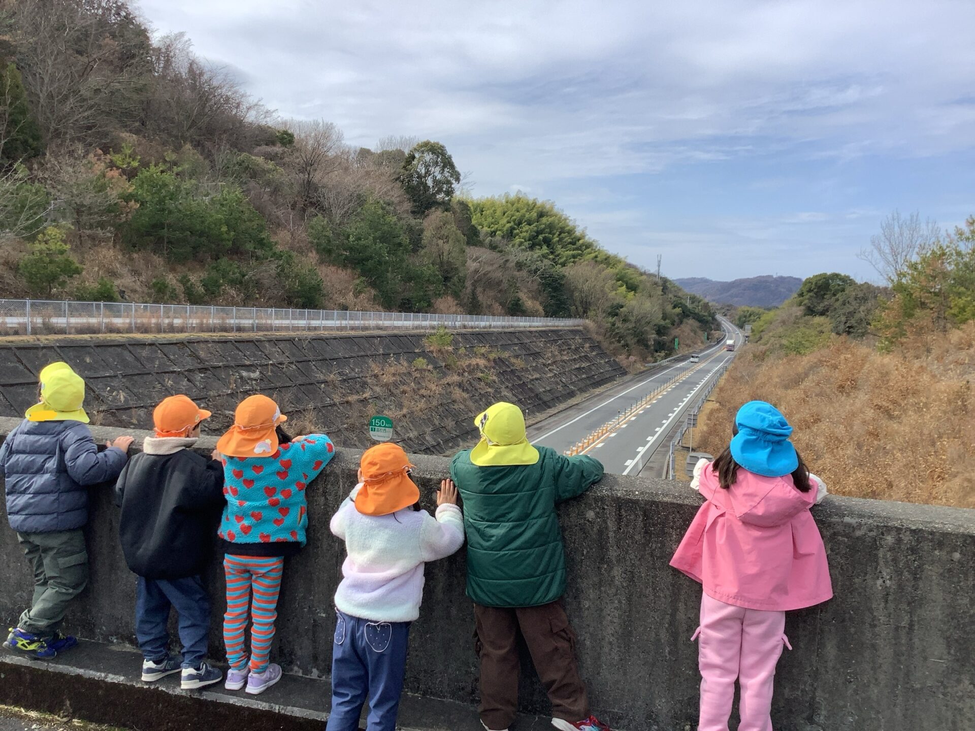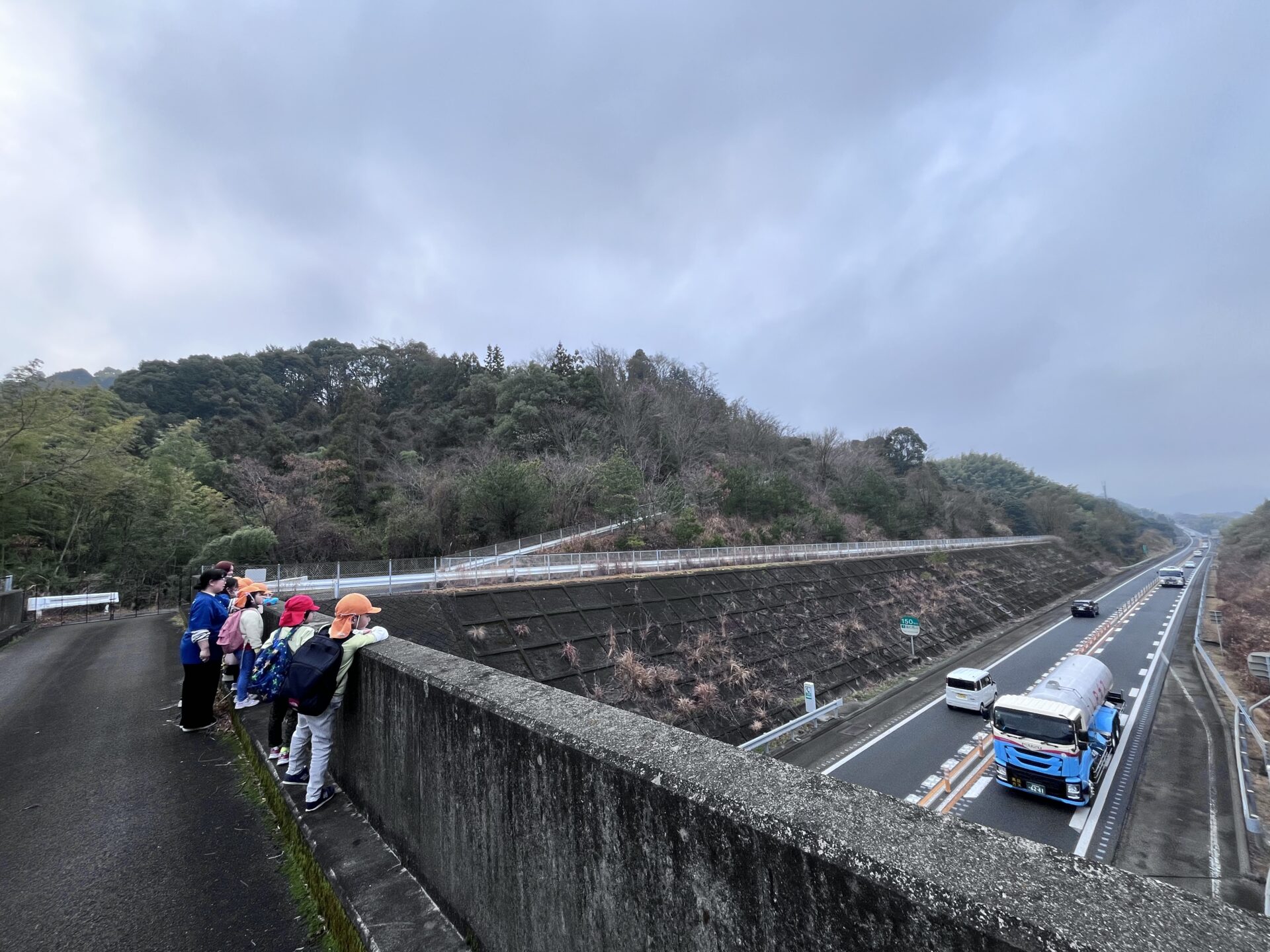 さらに登っていくと、車のエンジン音やタイヤと道路が擦れる音におじけづく子どももいました。ただ、大人が高速道路だということはわかっているので、「あれは車が走っている音だから大丈夫と知らせると安心したようでした😅
