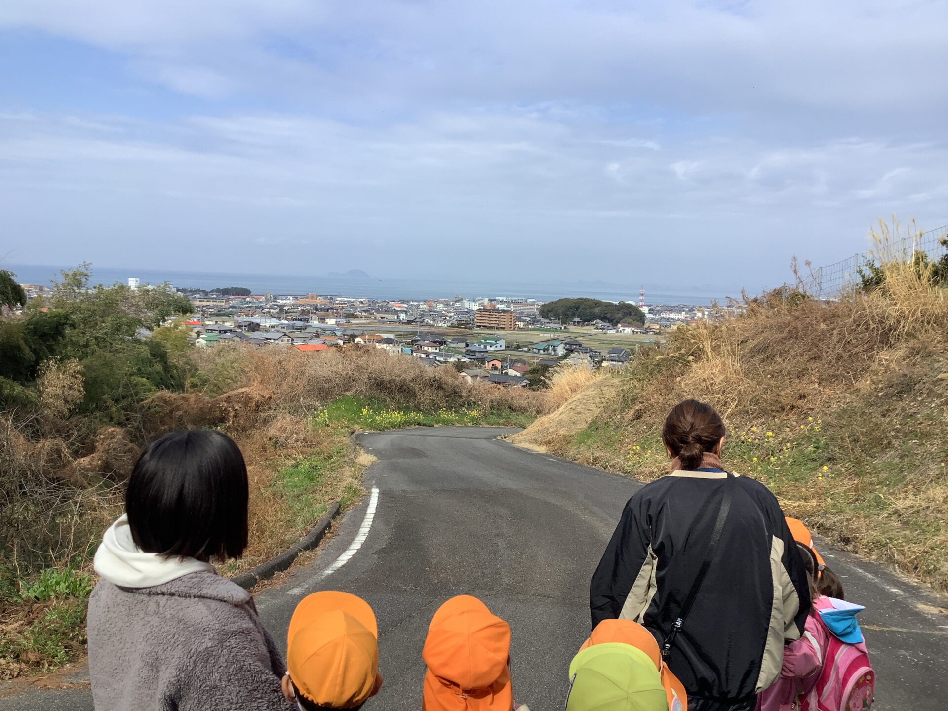 その後、山の中腹から景色を見て建物を探したり、近くで大きく見える建物も遠くから見るとどう見えるのか大きさを比較したりしながら帰りました!
