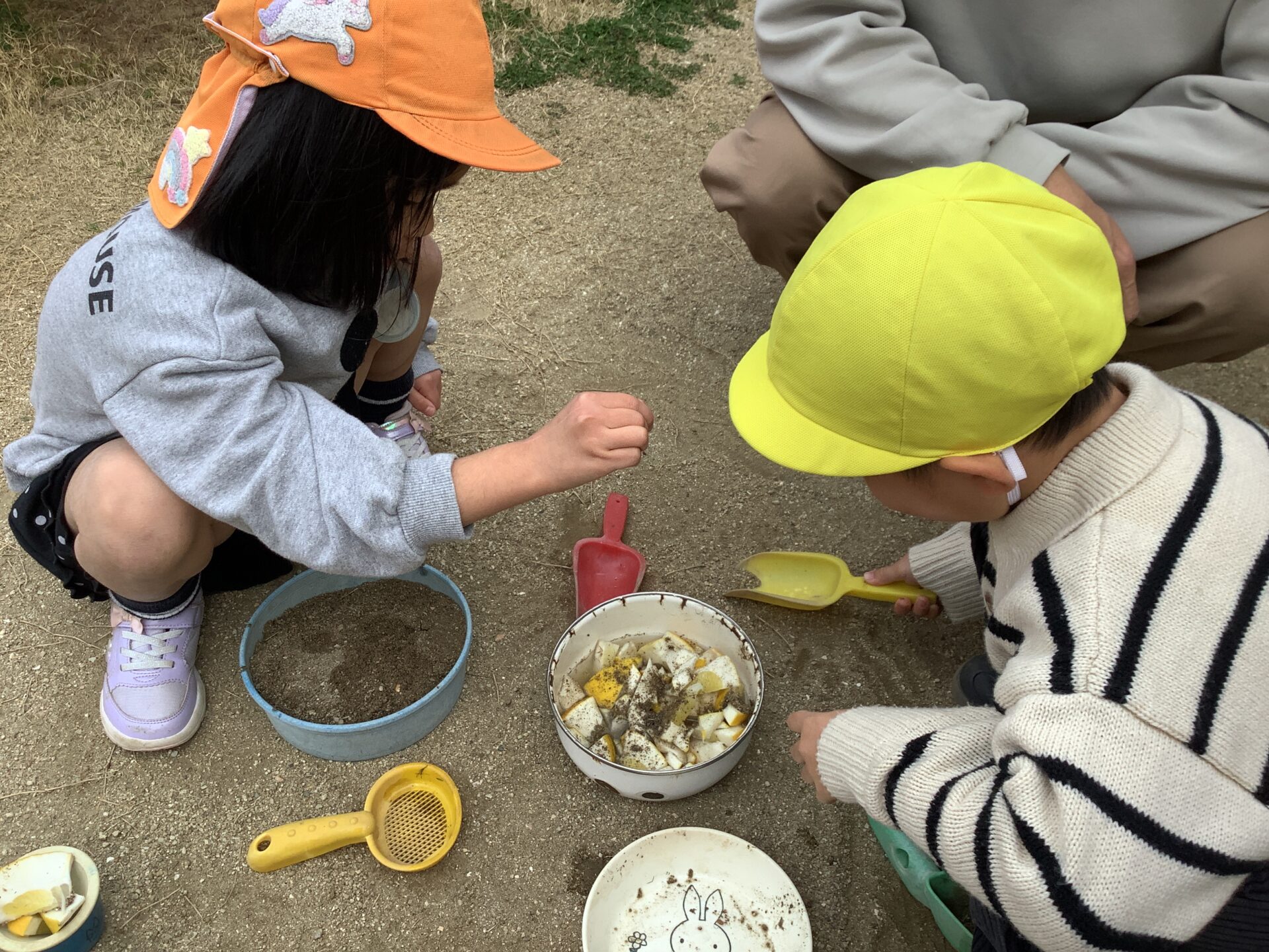 子どもたちと包丁を使って実際に切ってみたり、切ったものを使って料理ごっこをしてみたりして遊んでいます。