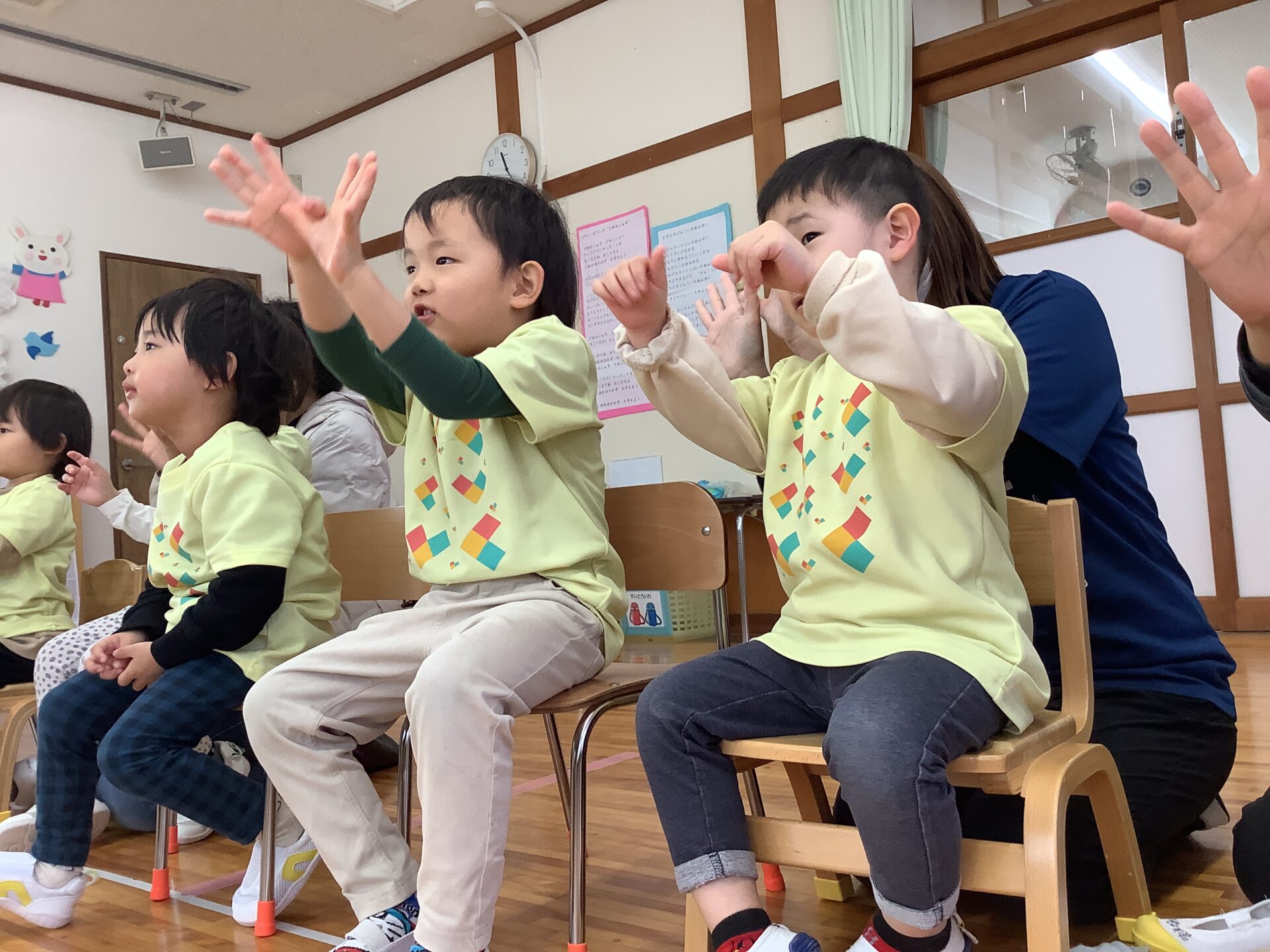年中児、年少児さんからは、手遊びとマグネットのプレゼントがありましたよ🎁