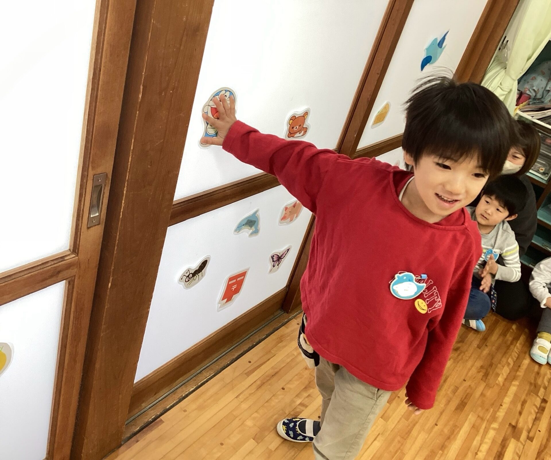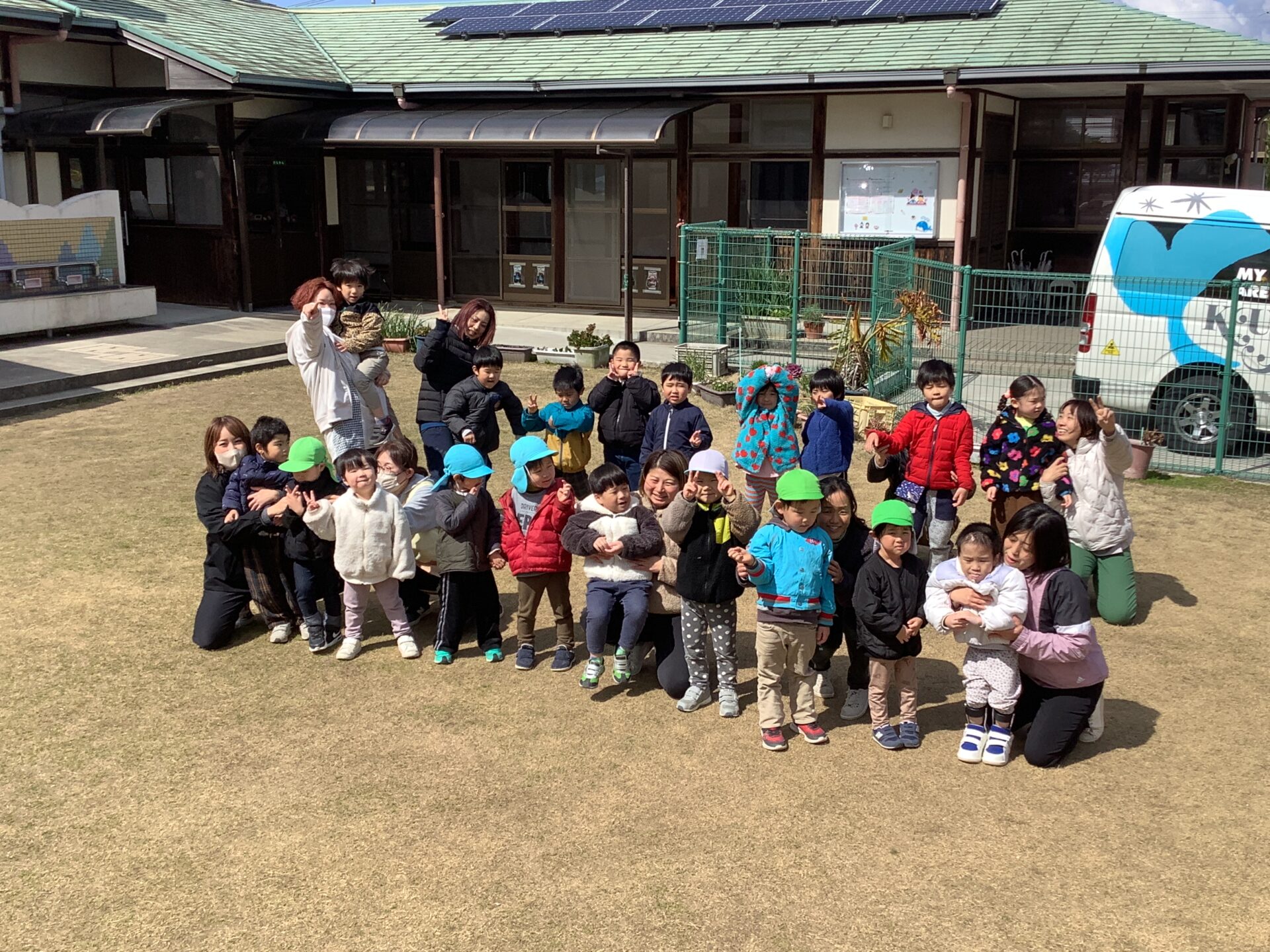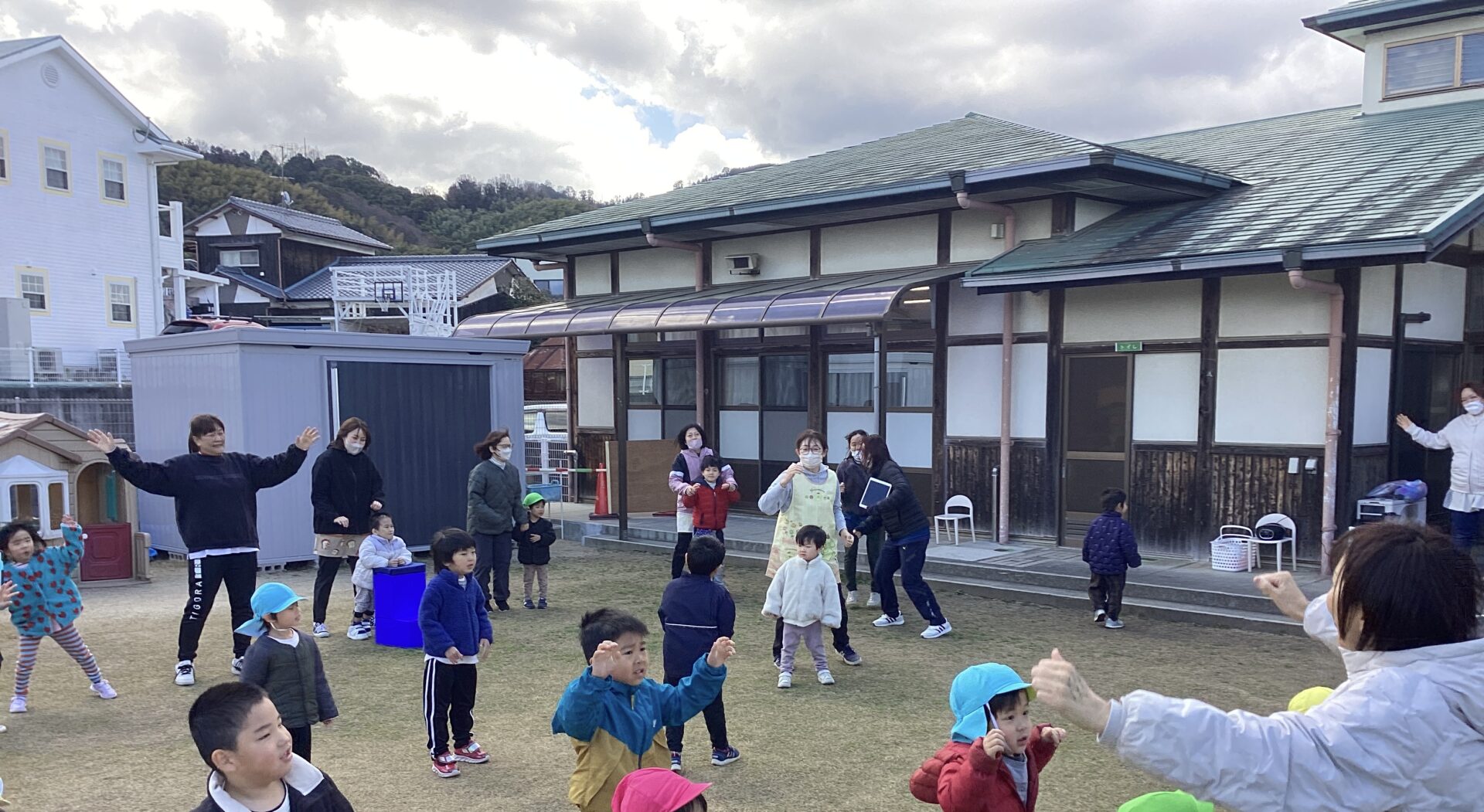 年長児の子どもたちが、「いっしょにあそんでくれてありがとう」と気持ちを伝え、その後、歌のプレゼントがありました。ジーン😢と感動しているところに、年中、年少児の先生たちへの思いがけない贈り物がありました。子どもたちの成長を感じ、心がほっこりあたたかくなるひとときとなりました。