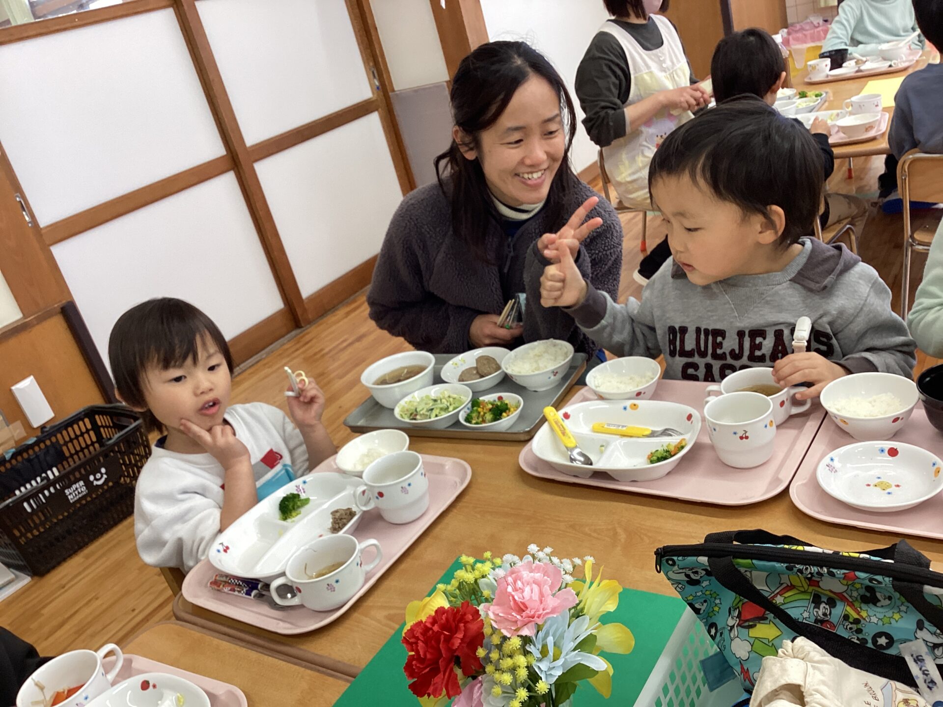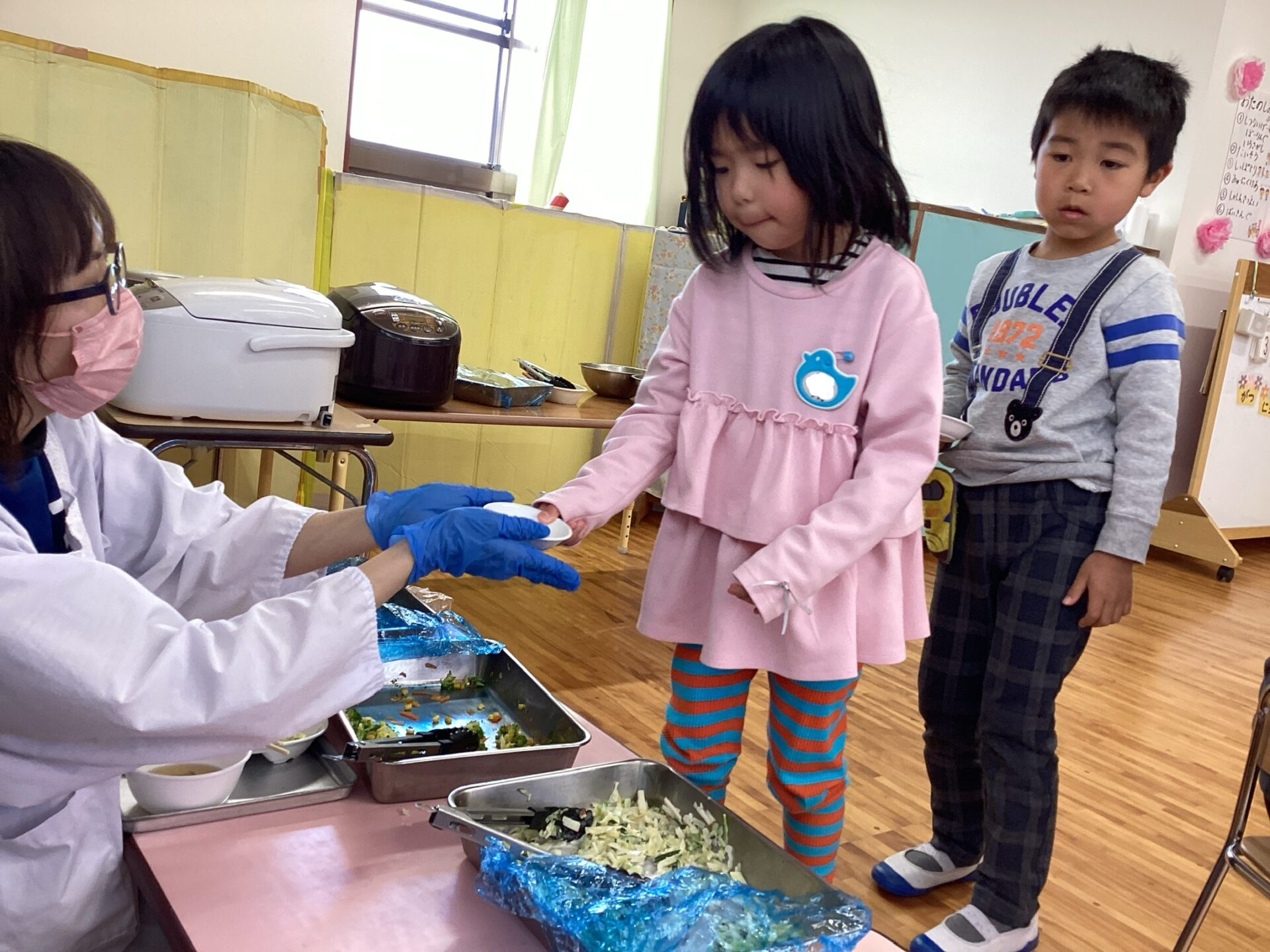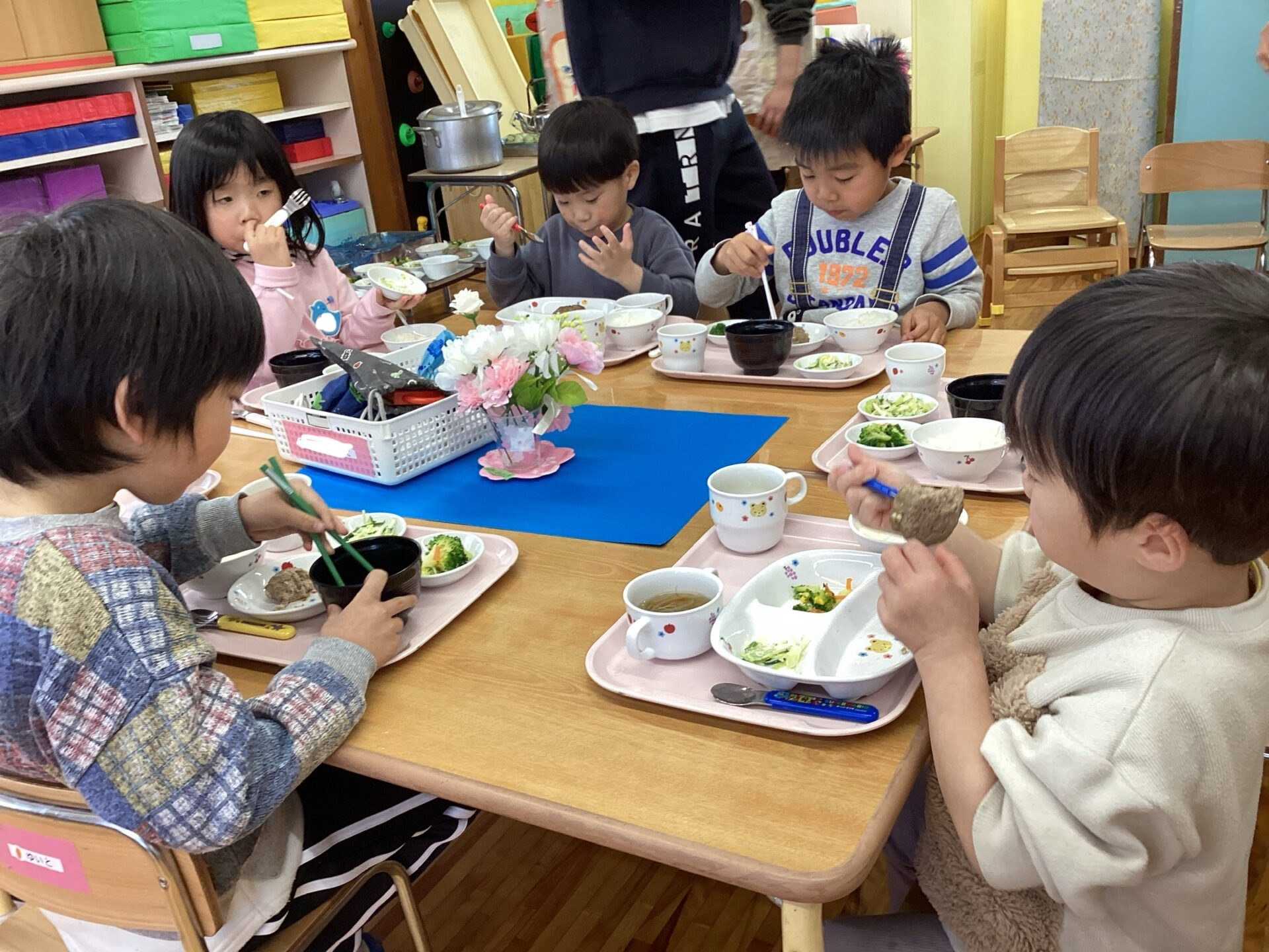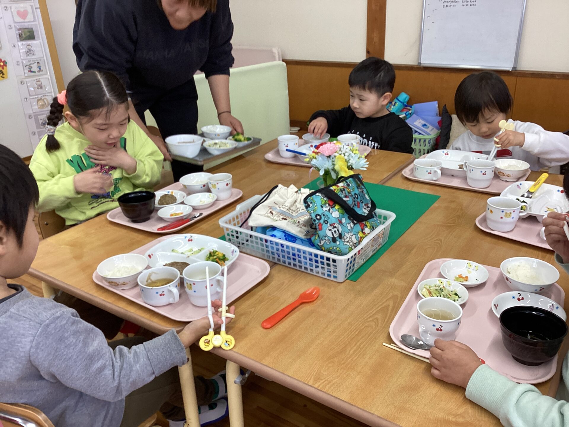 今日は、みんなで一緒に活動するのが最後になるかもしれないので、みんなで一緒に遊んで、みんなで一緒にご飯を食べようねとお話しして、お楽しみ会がスタートしました。