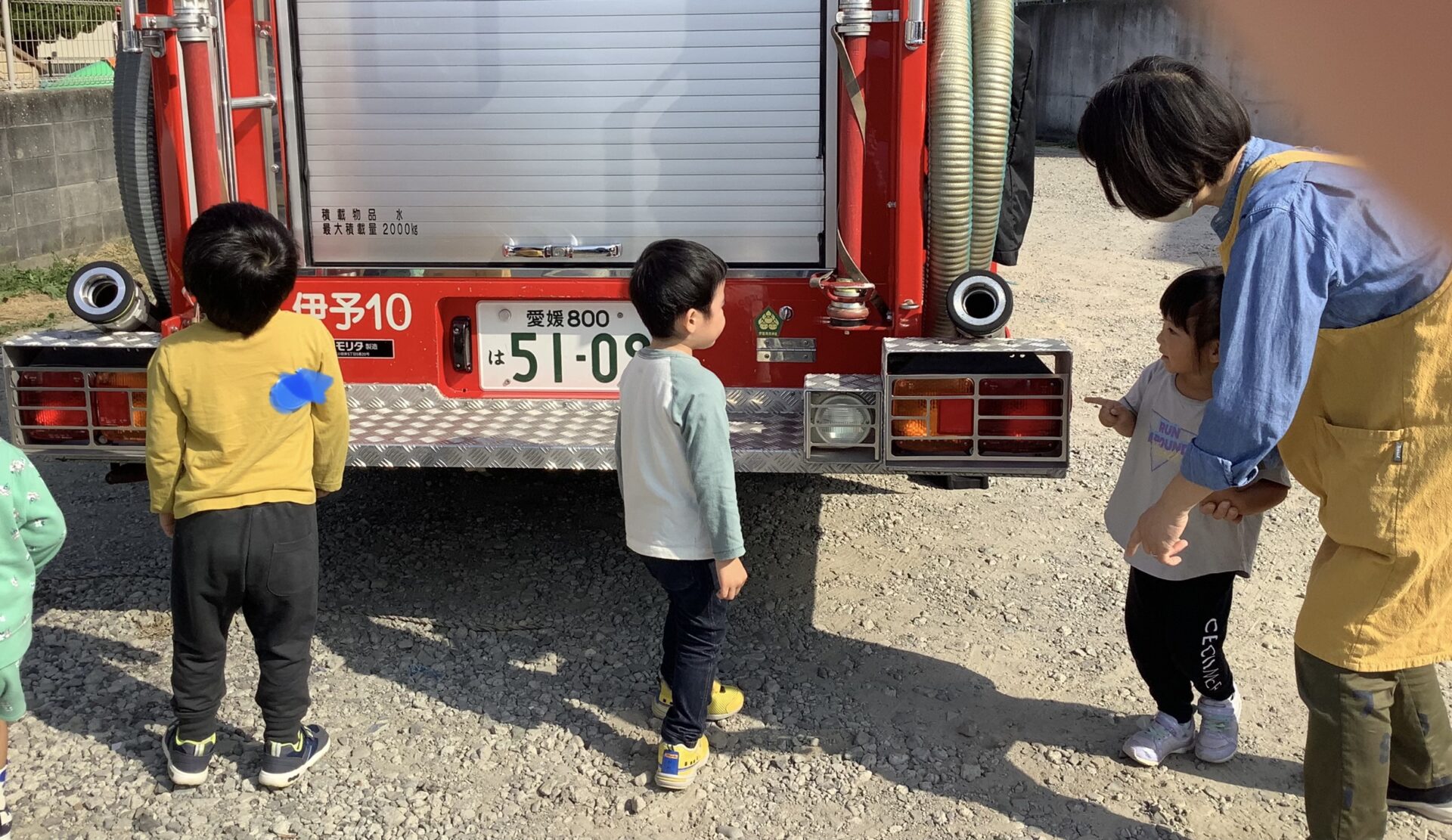 その後、消防車を見せてもらいました。大きなホースなどに興味シンシンです。