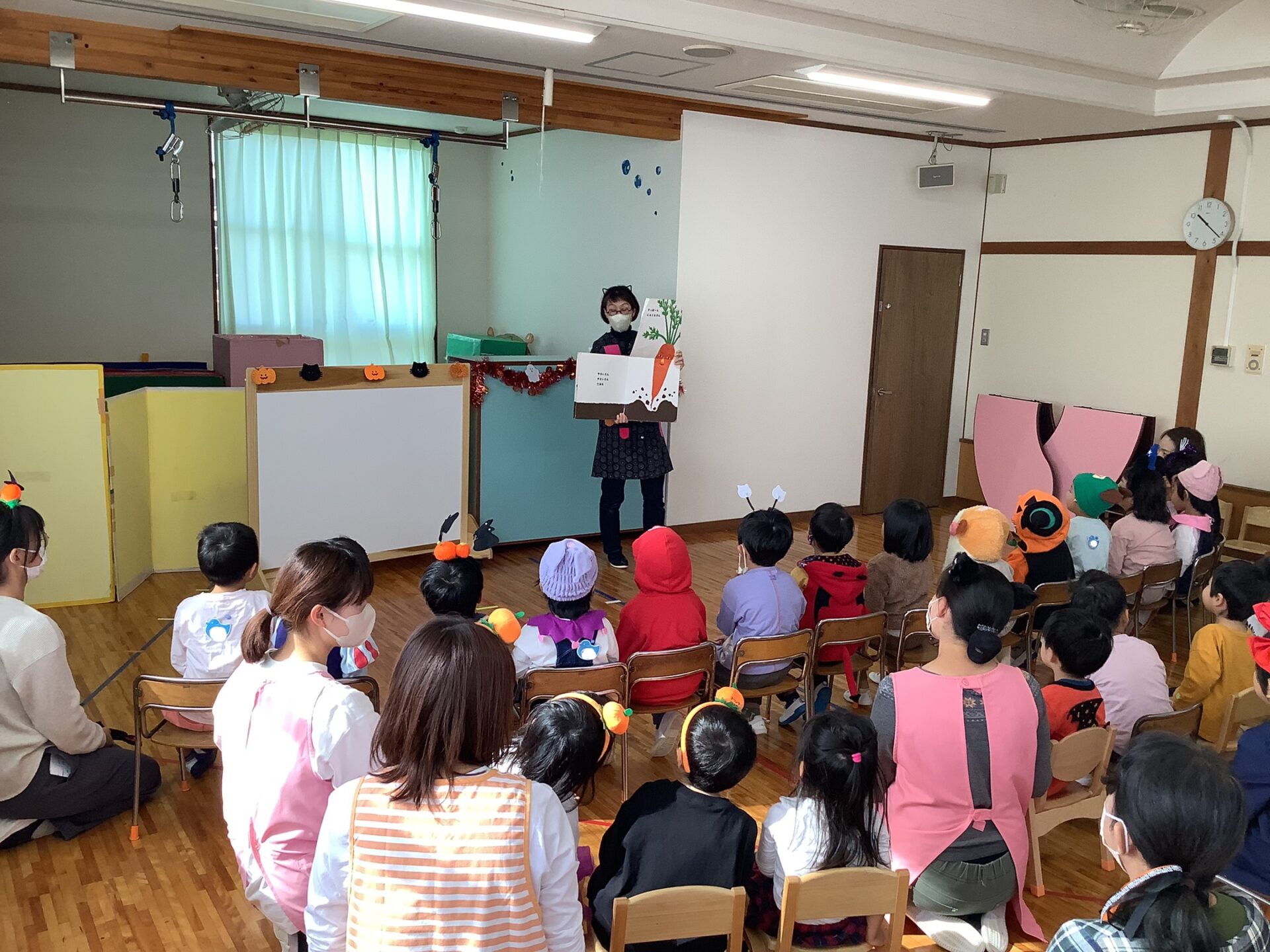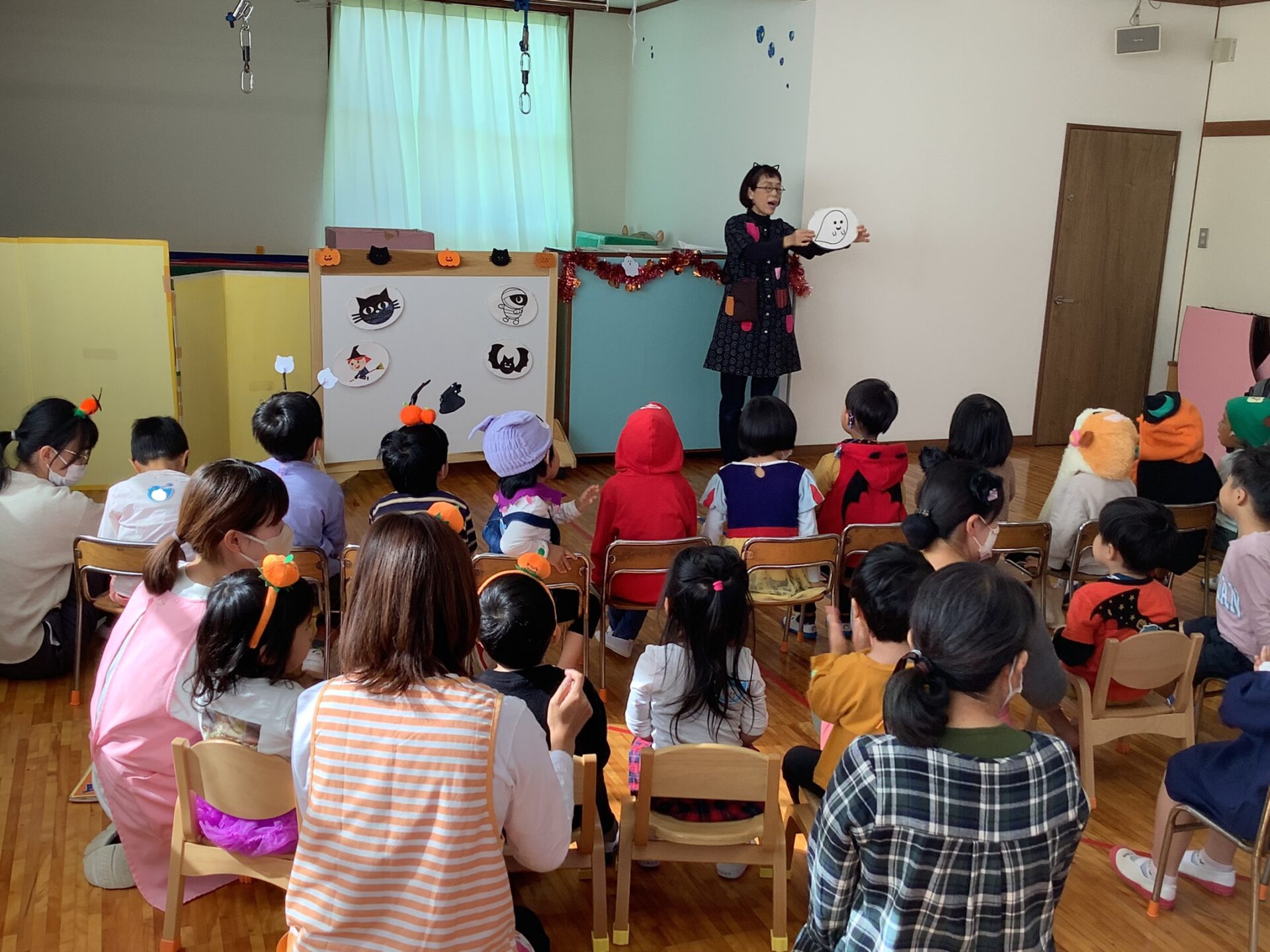 絵本を楽しんだ後に、ハロウィンの由来やクイズをしました。