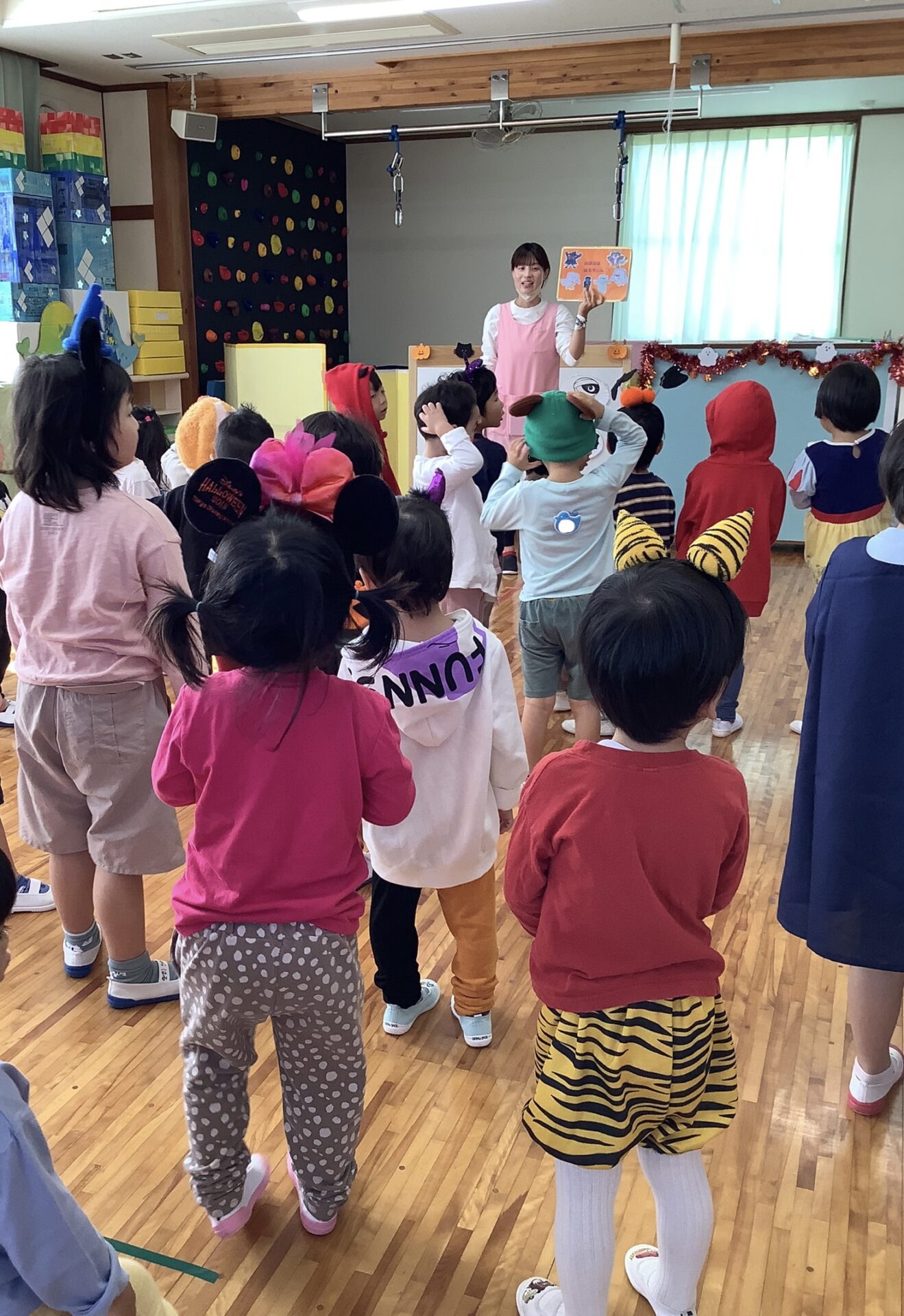 運動会でにじチームが踊った「ははははハロウィン」のダンスをみんなでしたよ。