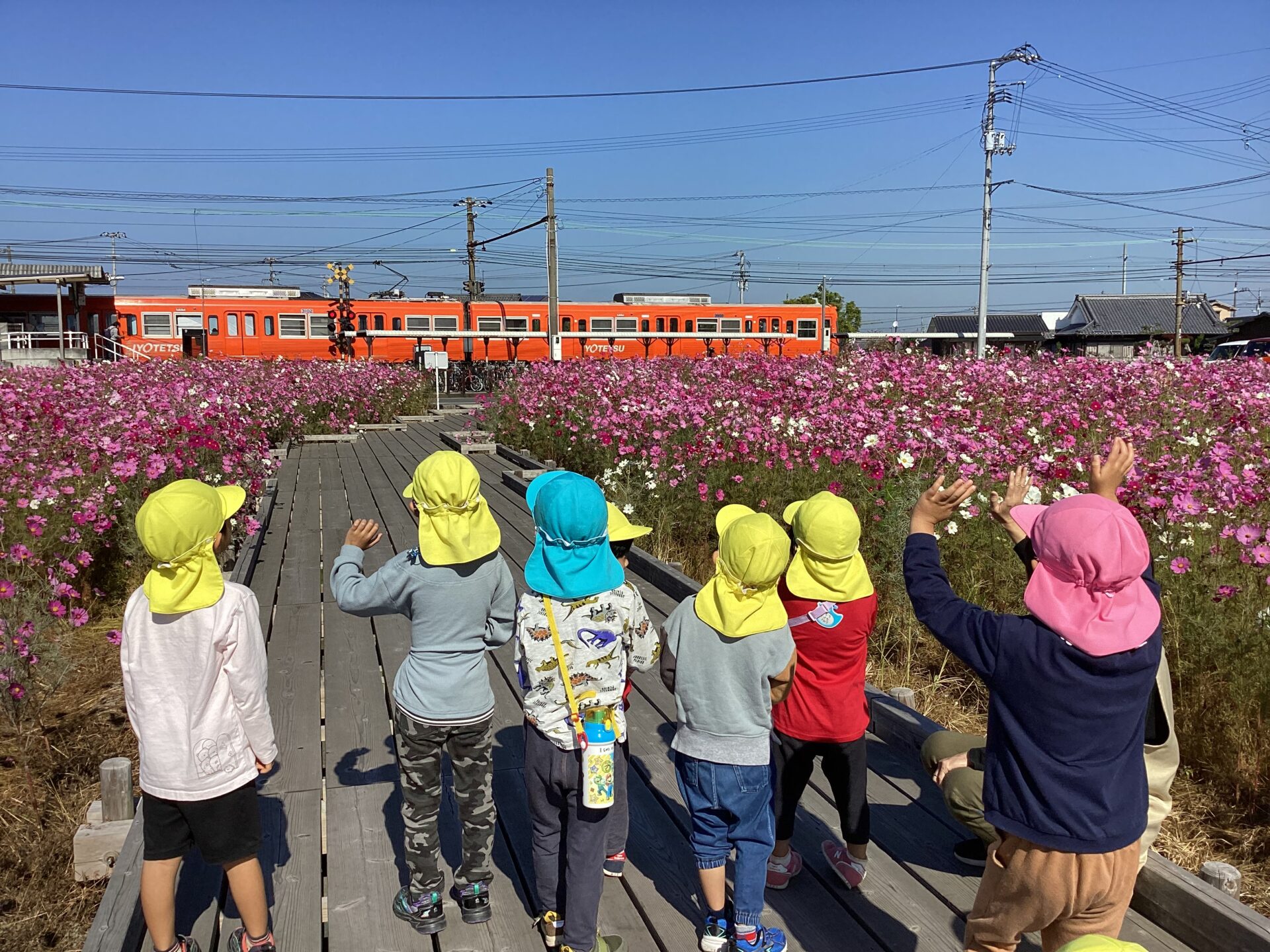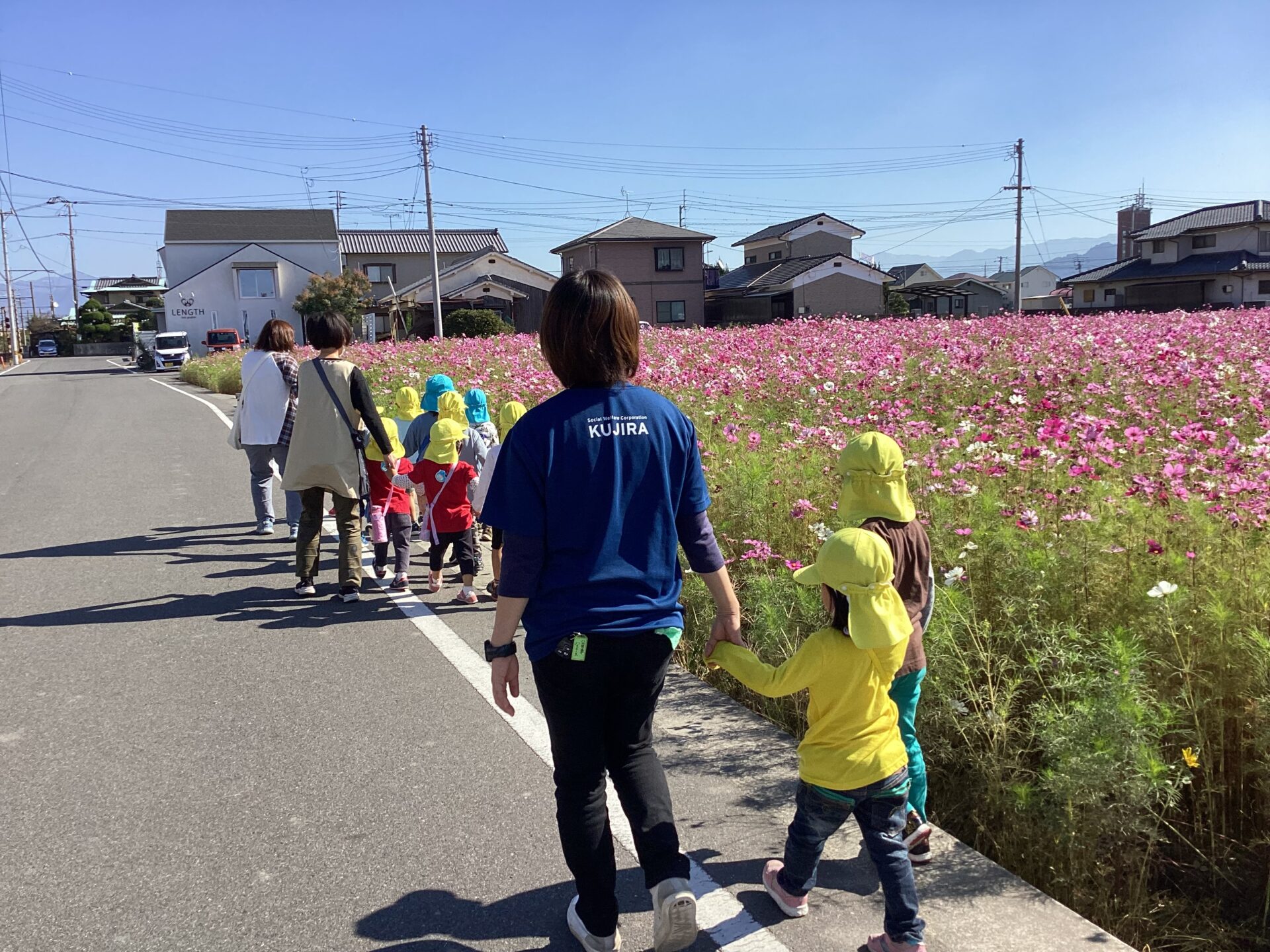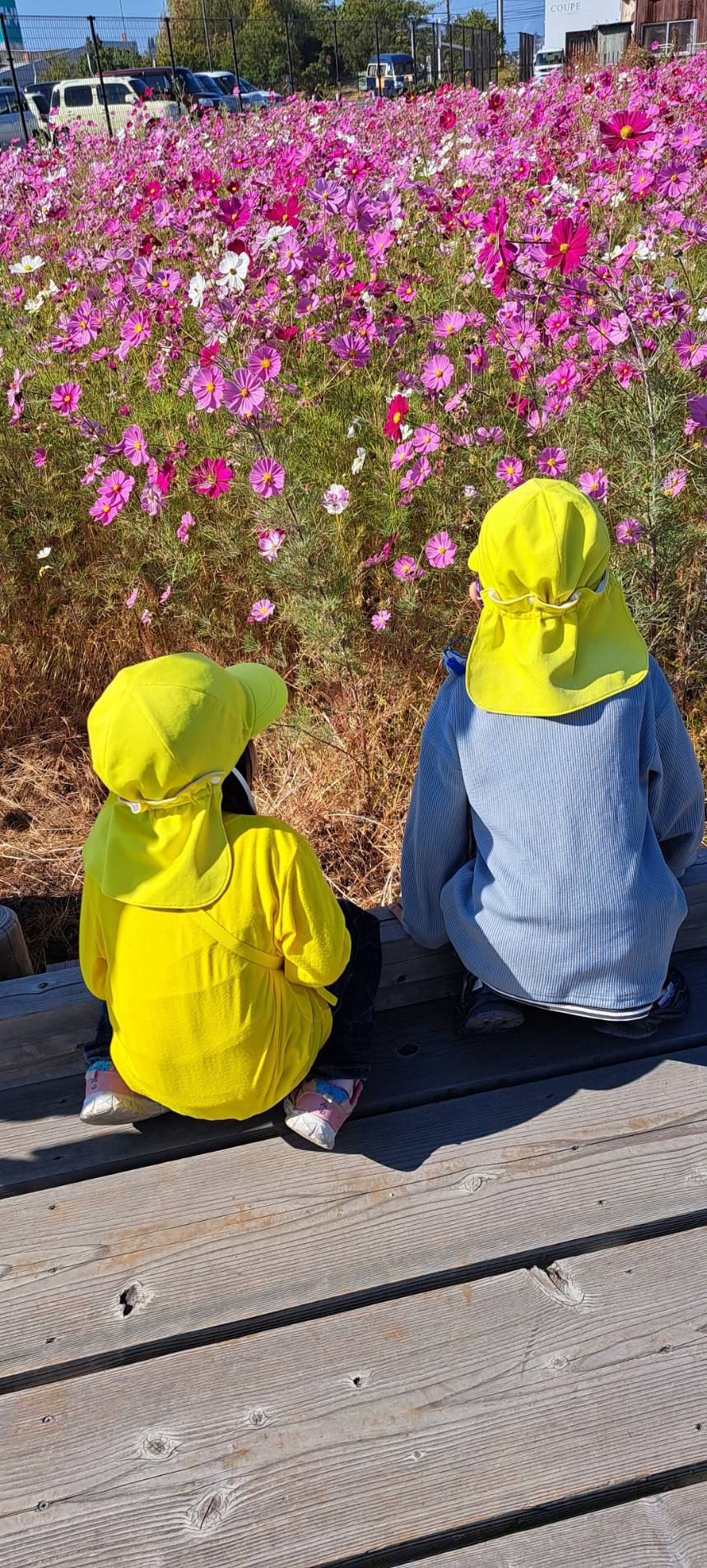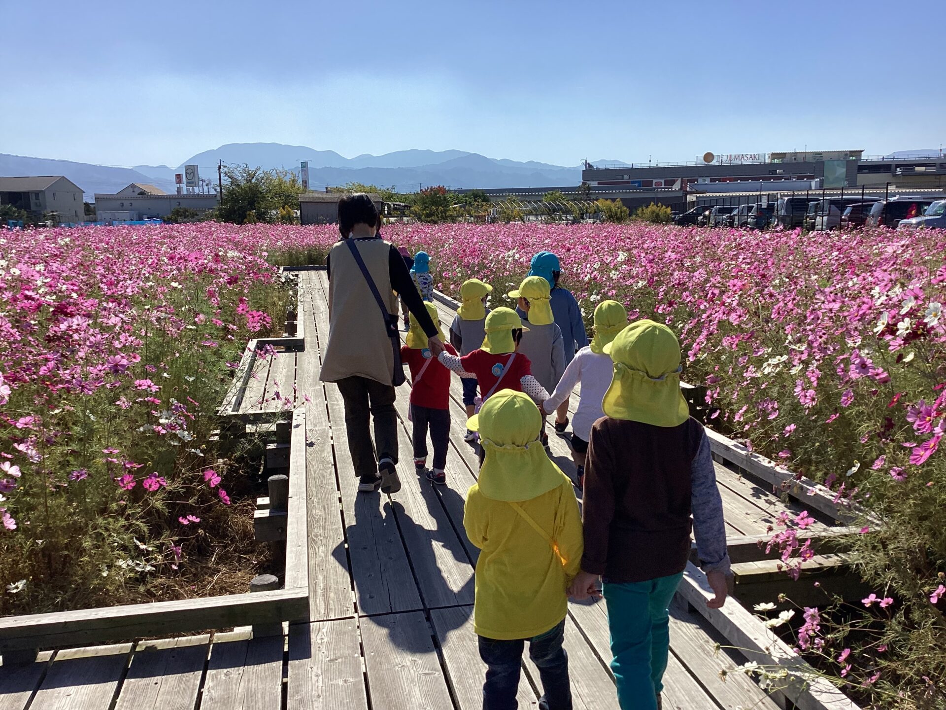 近づくと、一面ピンクの景色に!「わー」と大喜びの子どもたちでした。