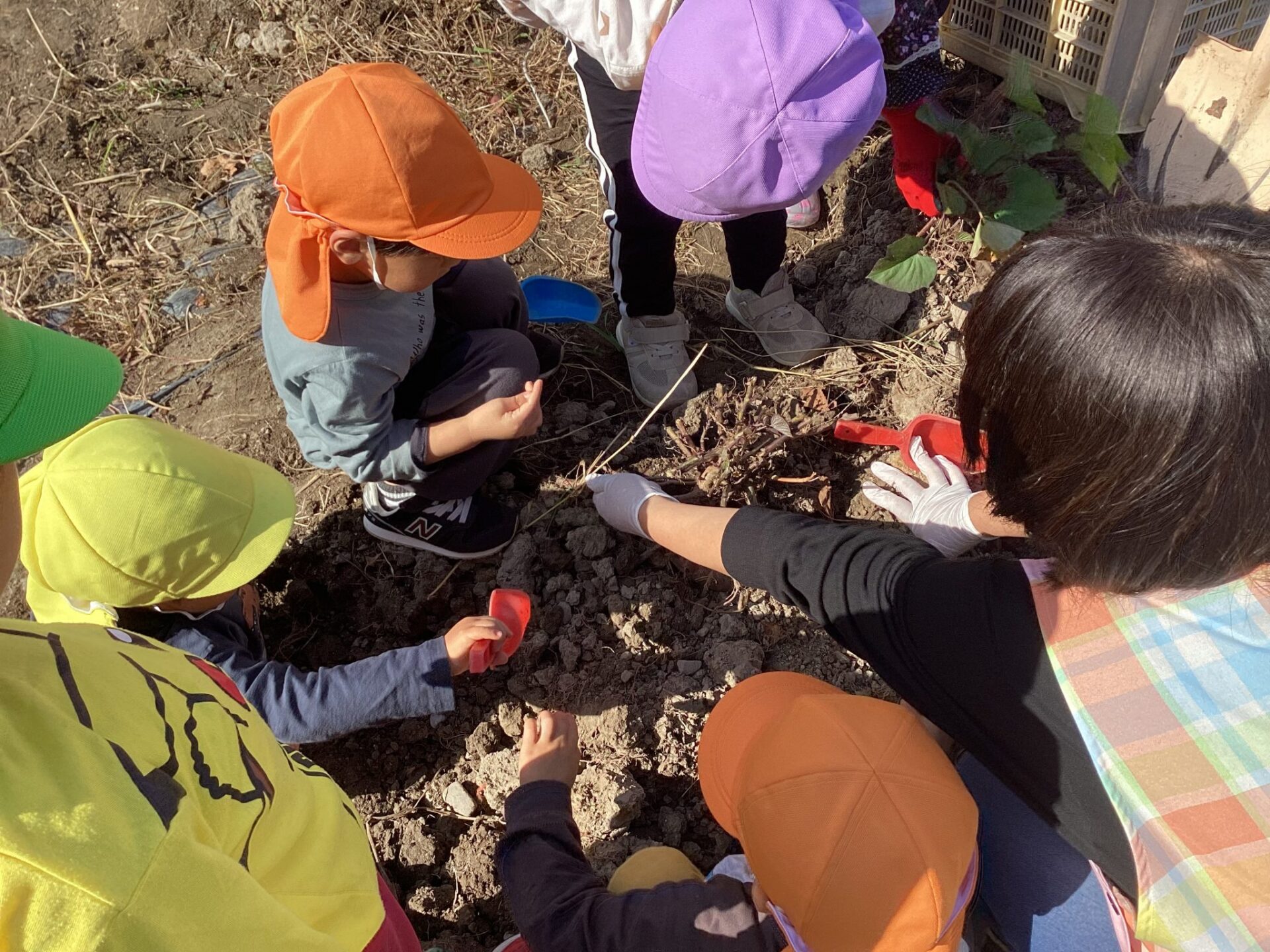 バスのY先生の掛け声で芋掘り開始です(^O^)♪