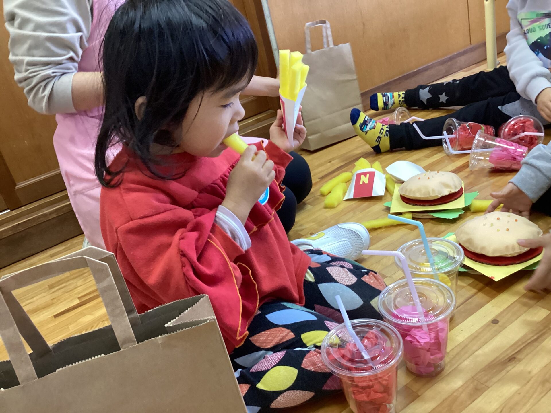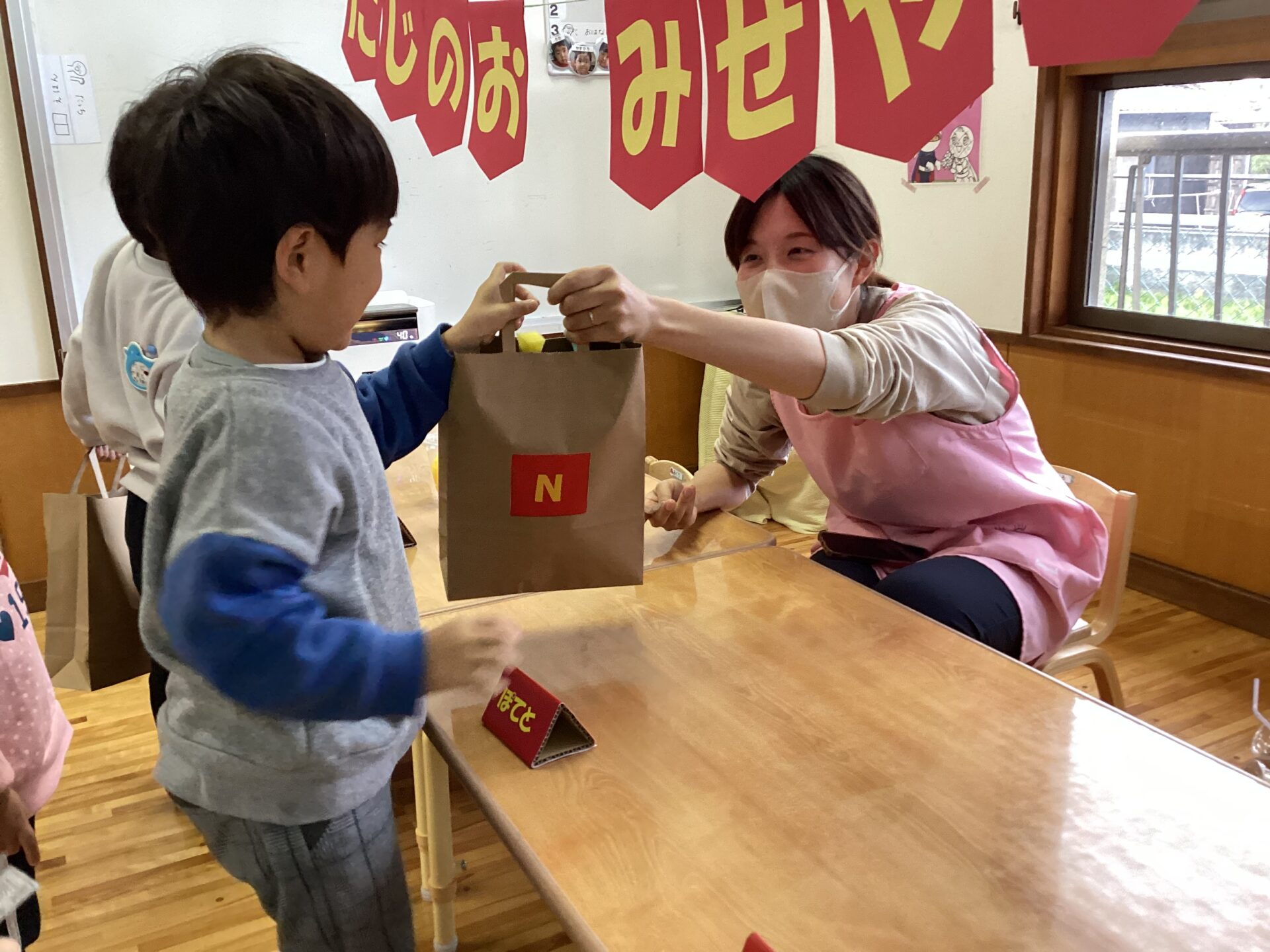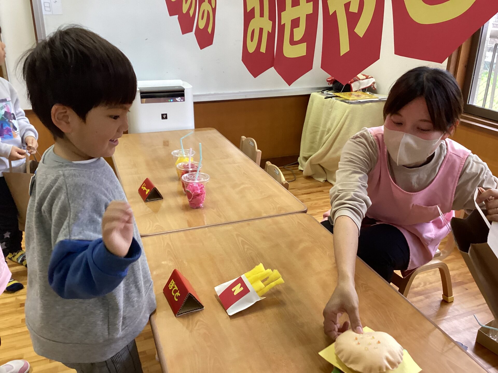 お店屋さんはスタッフがなりました。部屋に入ってきた子どもたちの