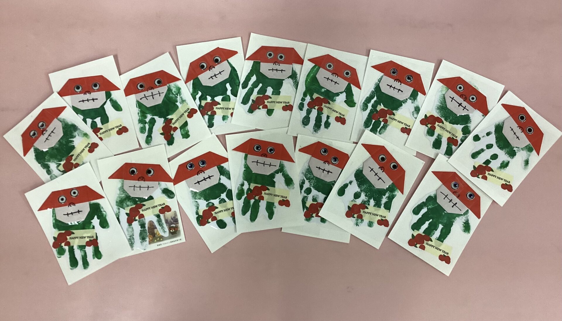 「届きますように」と願いをこめて1人ずつ年賀状を入れました。