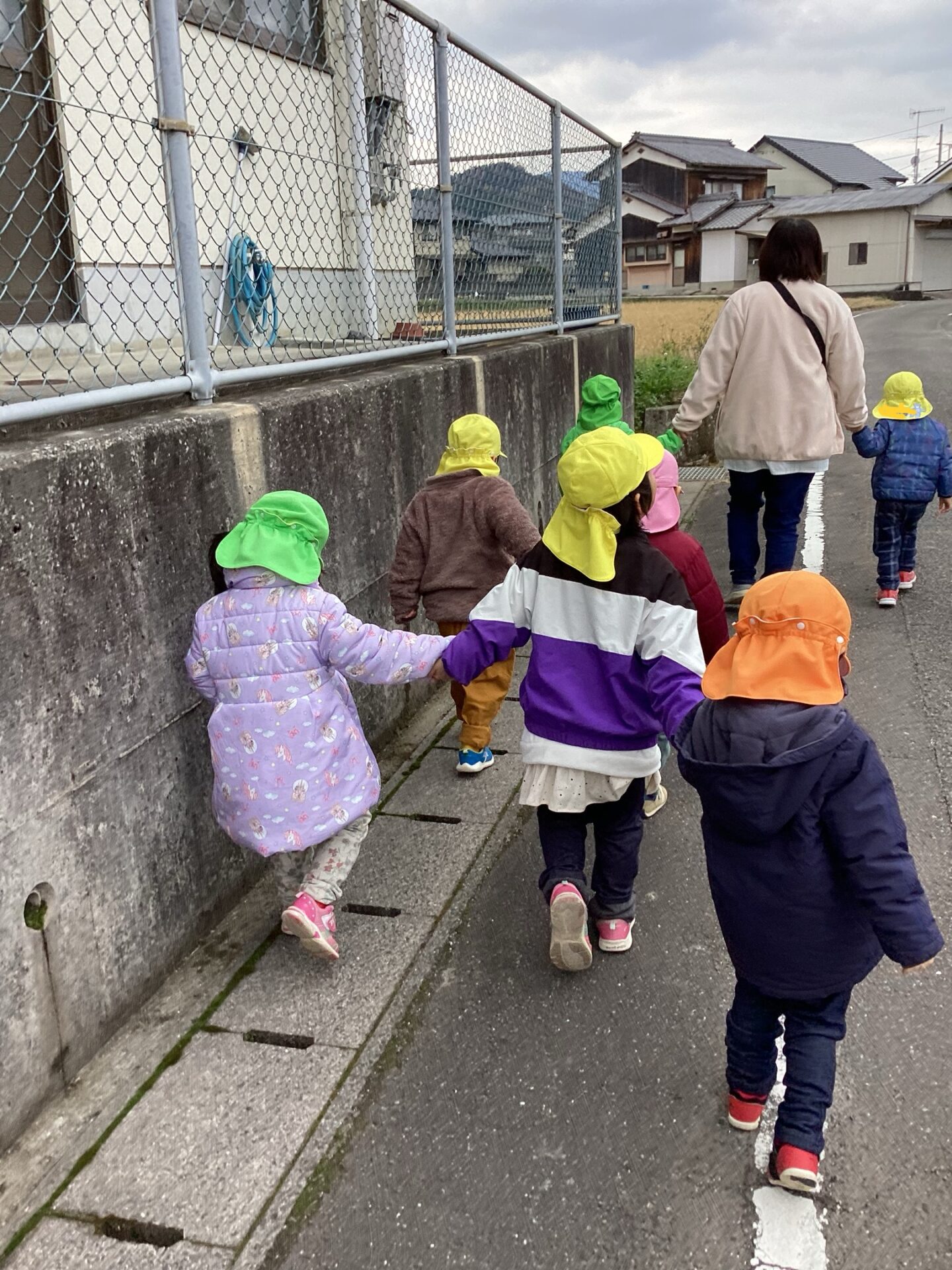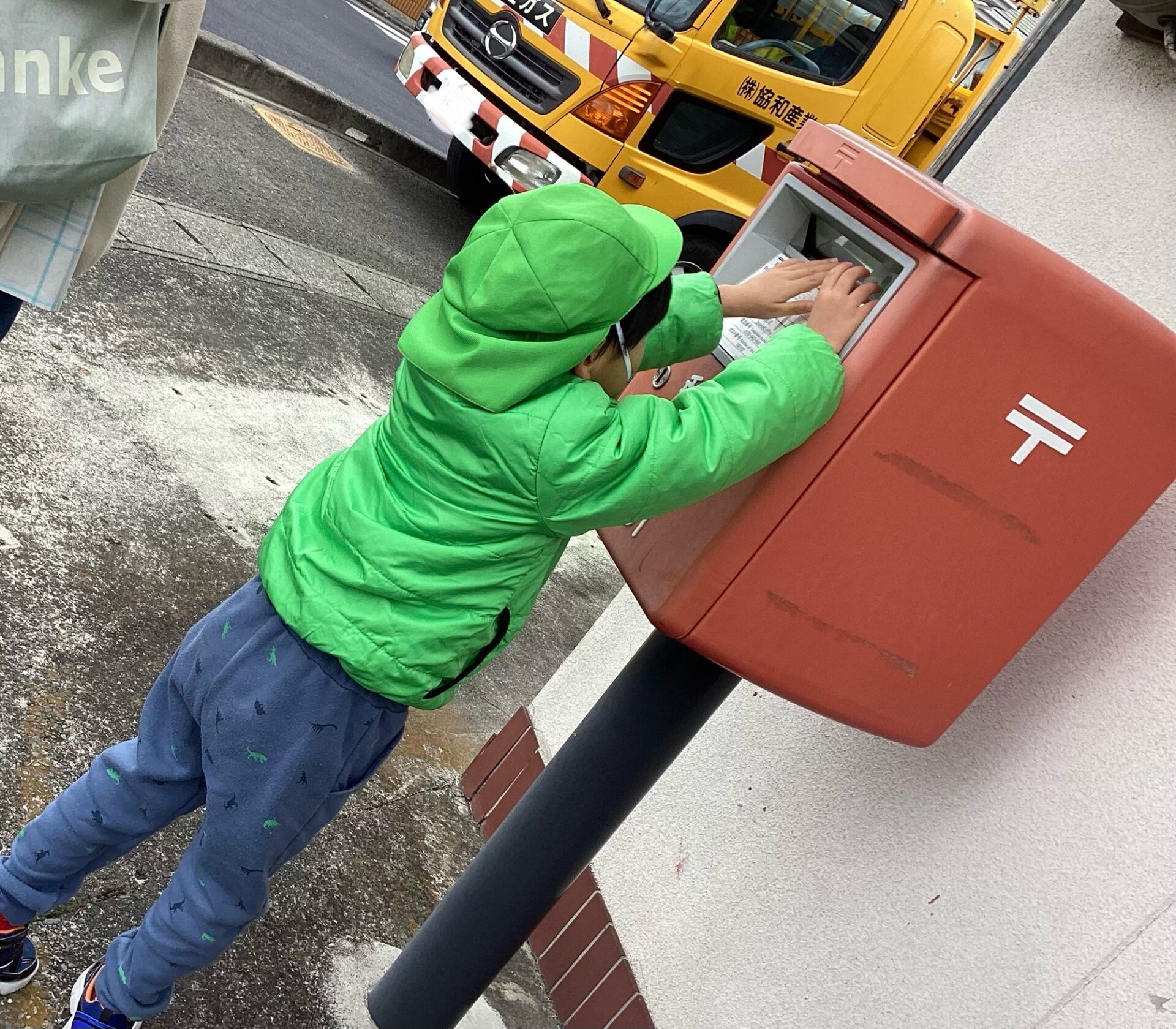 友だちが投函する間も危なくないように、壁側に順番に並んで「ピタッ」と!