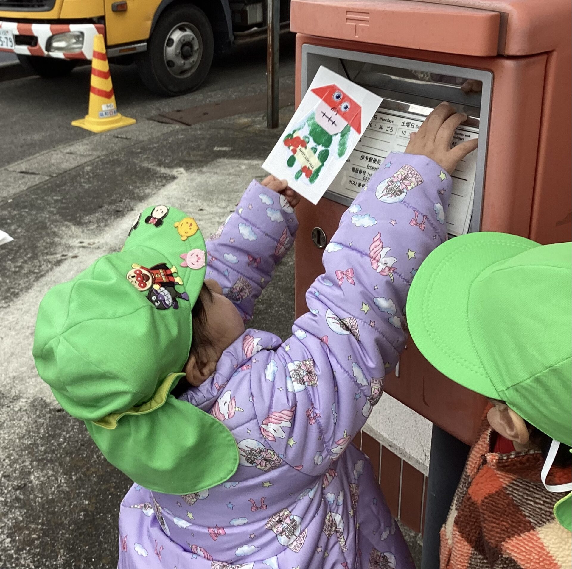 友だちやスタッフと手をつないで、今年も年賀状の投函に行きました。