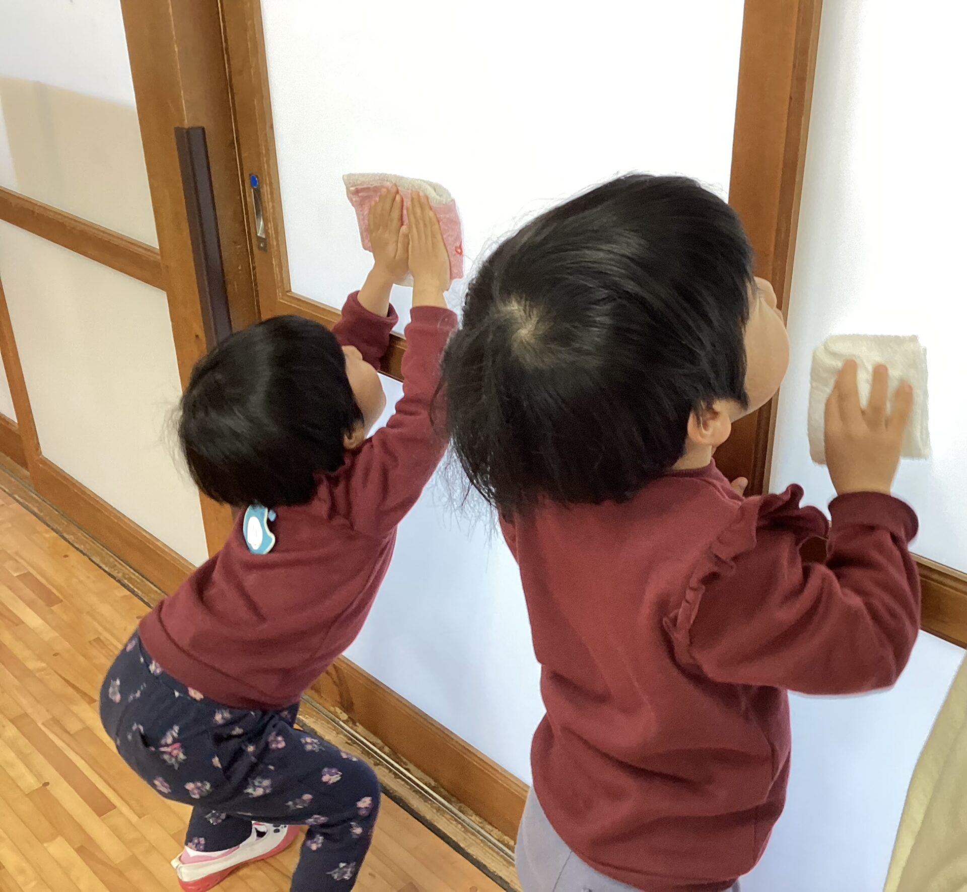 窓拭き、しっかり力を入れて拭くことができていますね✨