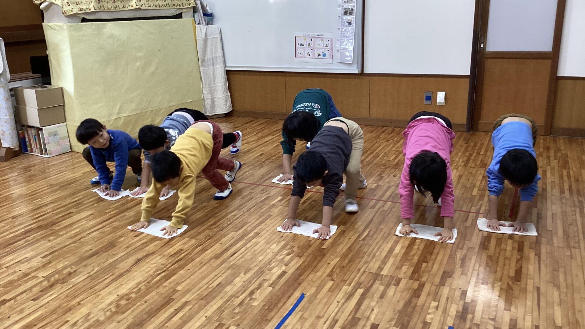「頑張ろうね!」という年長児さんの声掛けに、年中児さんも「頑張ろう!」と応え