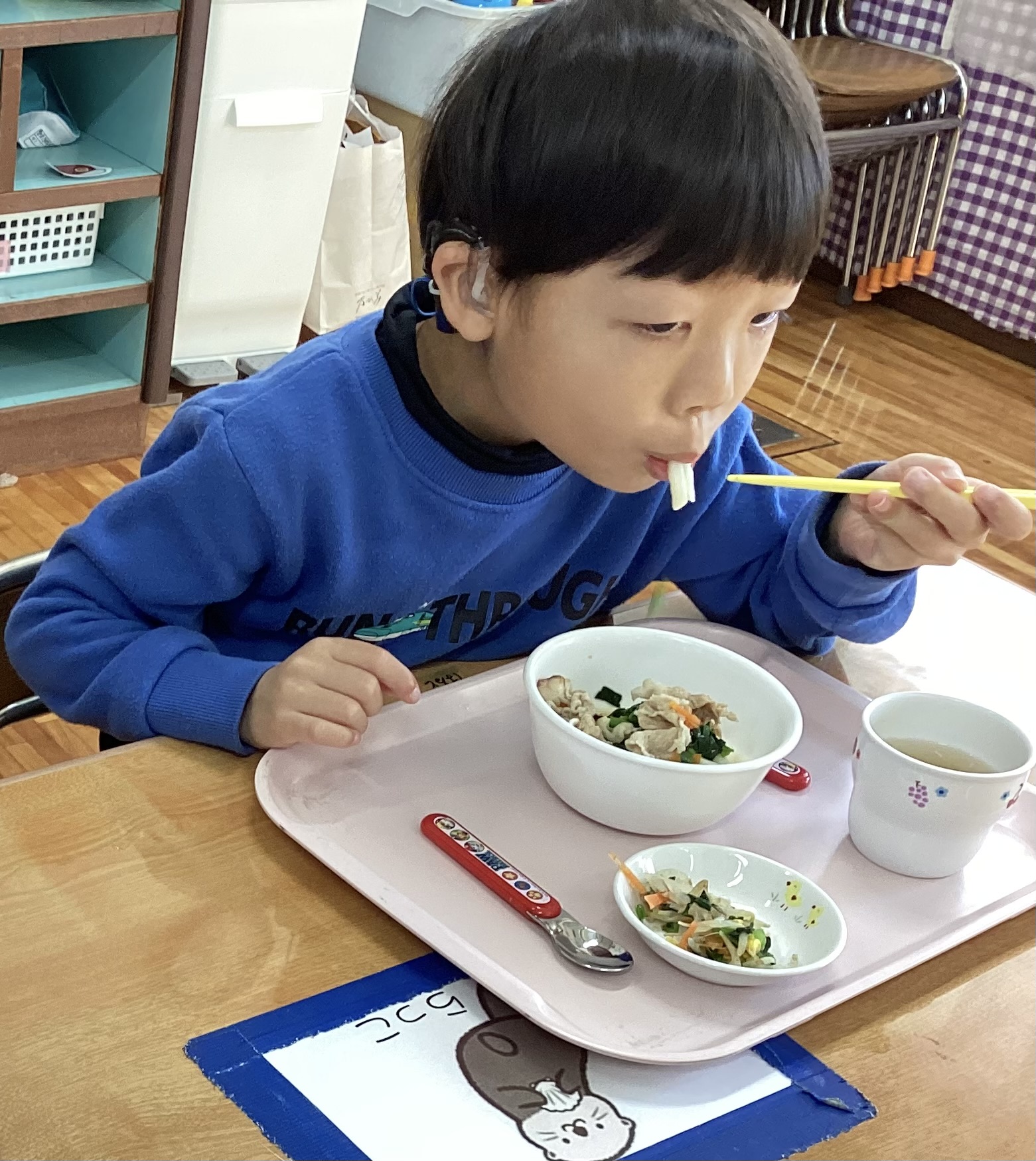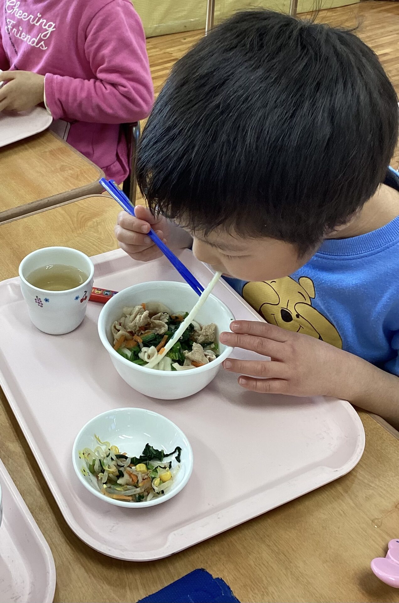 12月最後の登園日、大好きな給食は「年越しうどん」