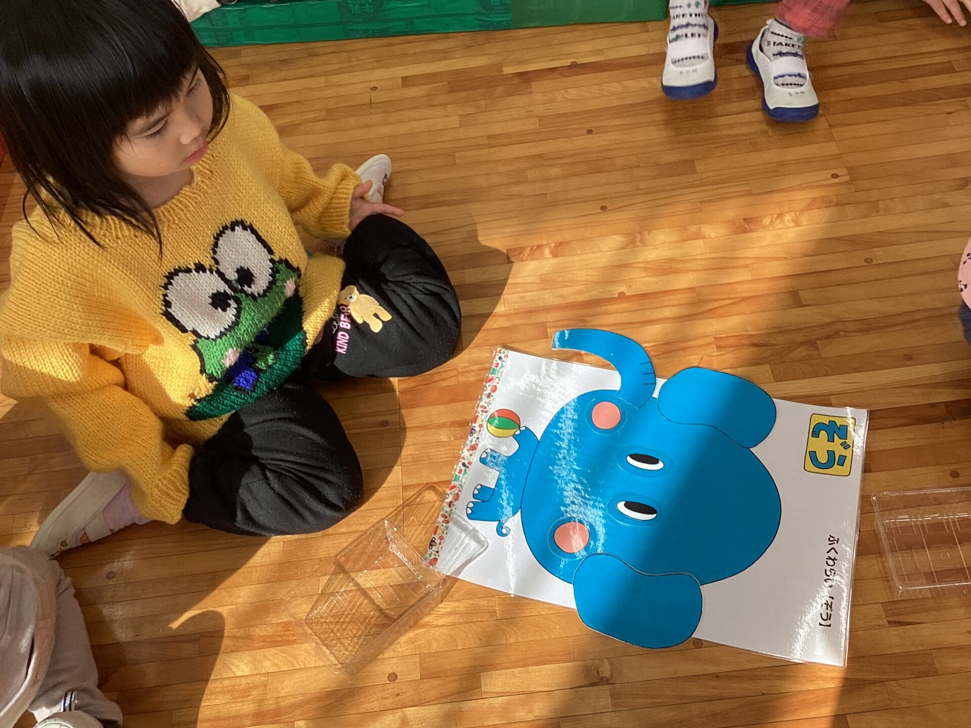 「目、鼻、口はどこかな?」顔の部位の場所を