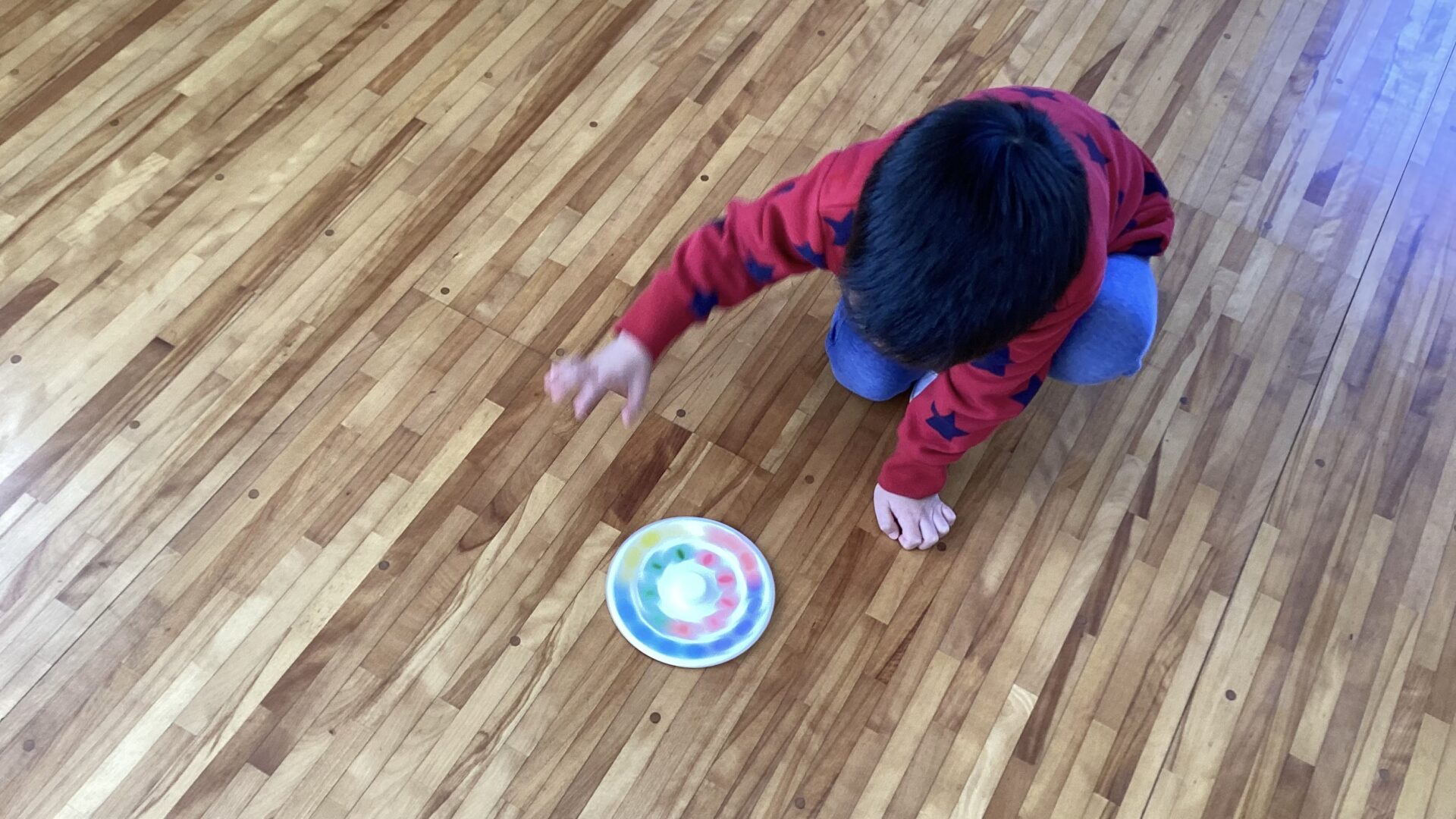 スタッフと競争したり、回して模様を眺めたりして楽しみました。
