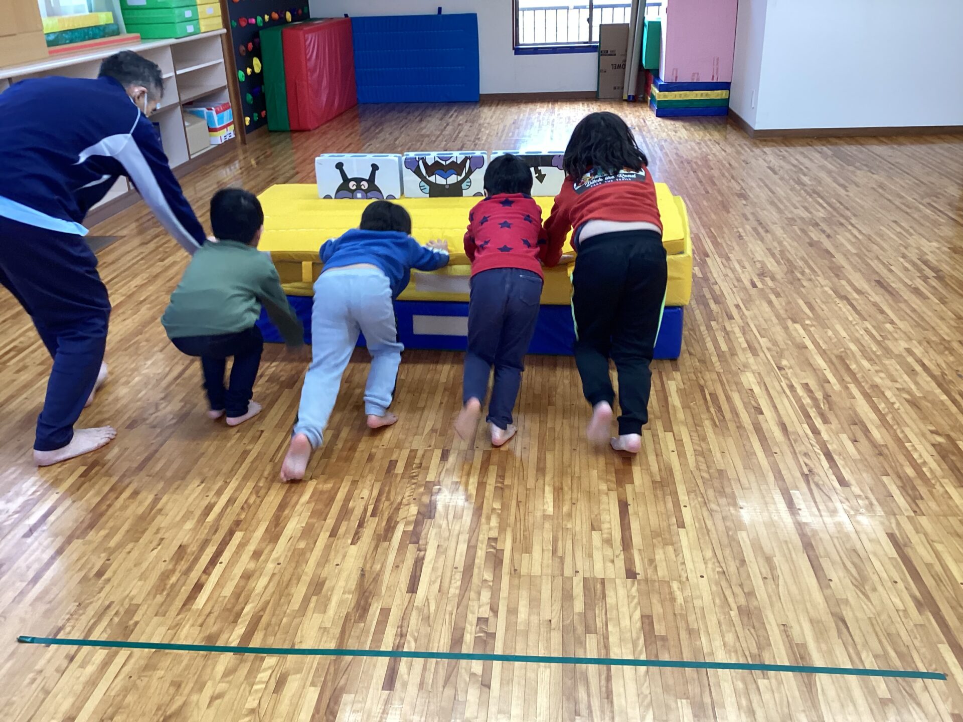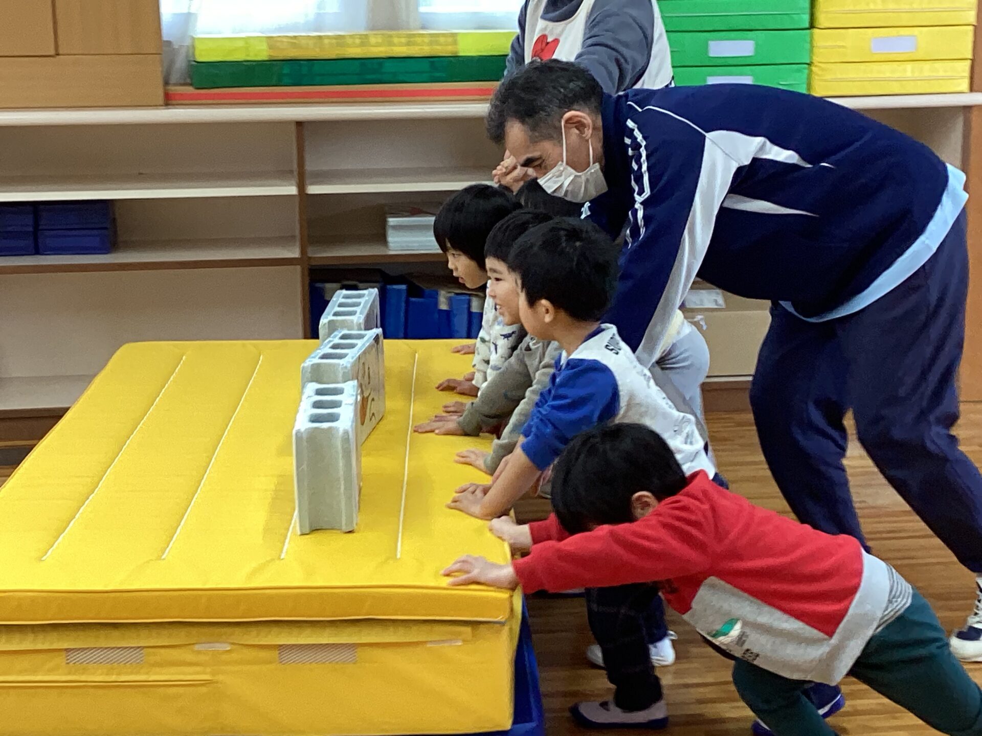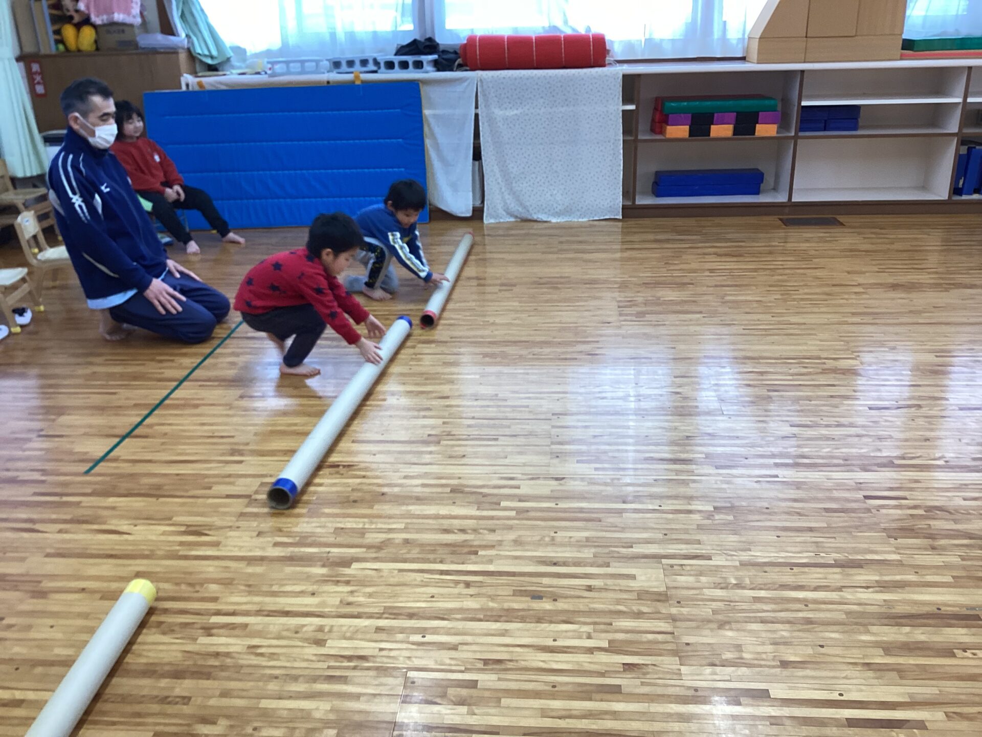 こちらも、友だちと息を合わせて押し具合を調整しています。