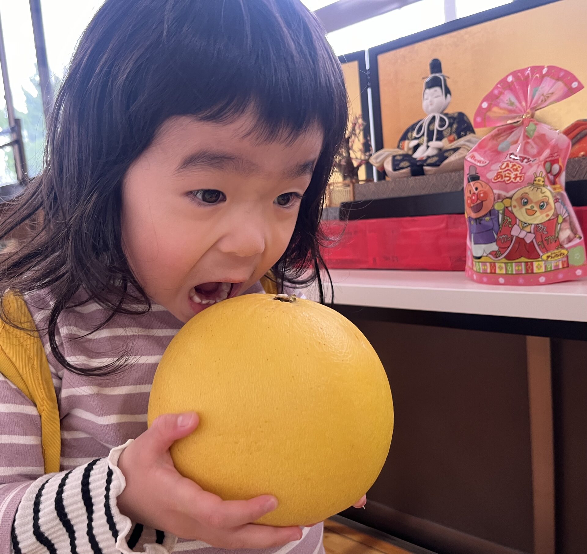 「おみかん?」「グレープフルーツじゃない?」