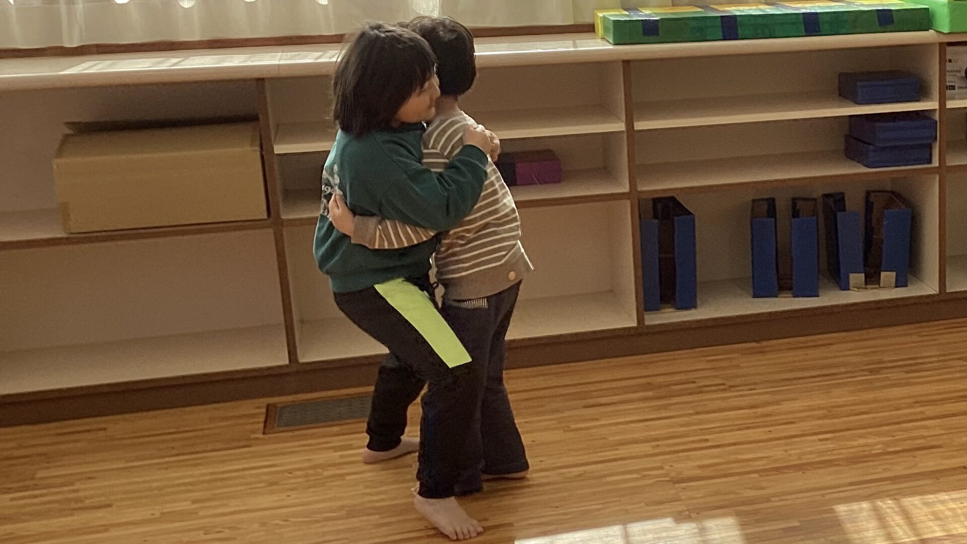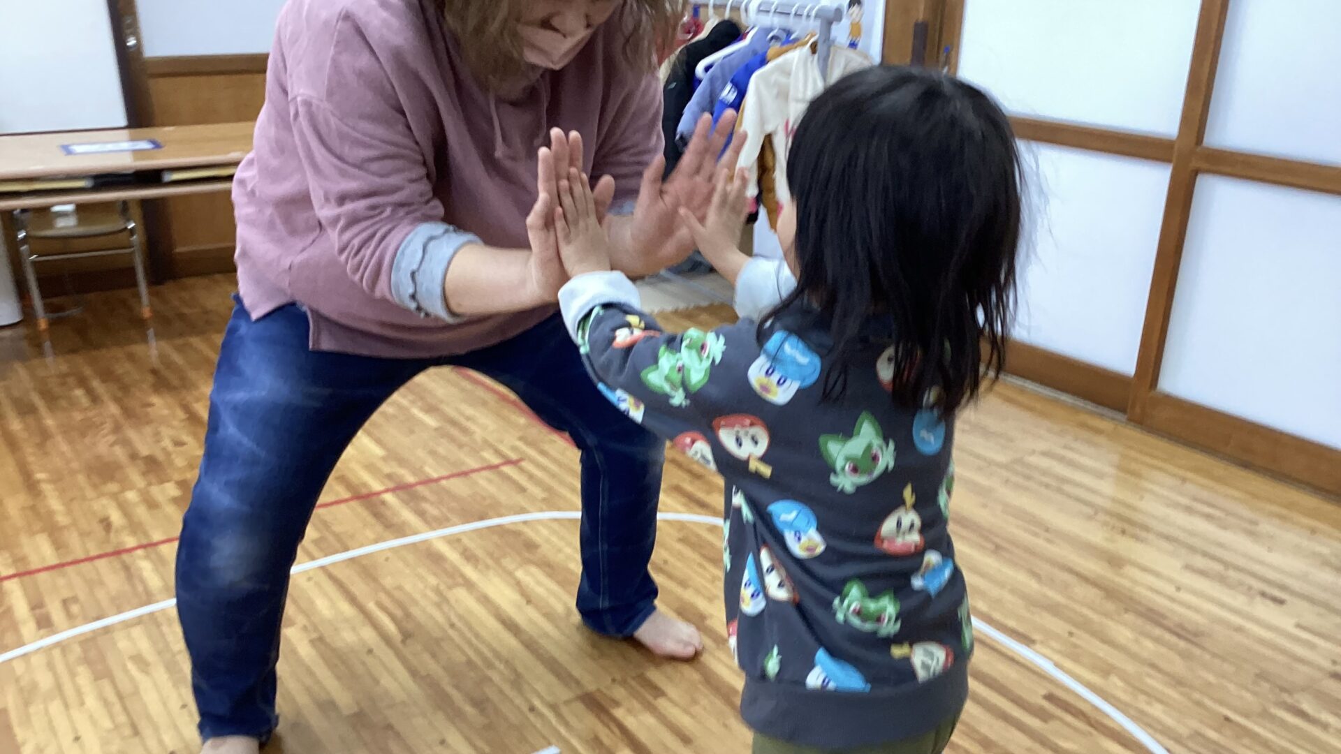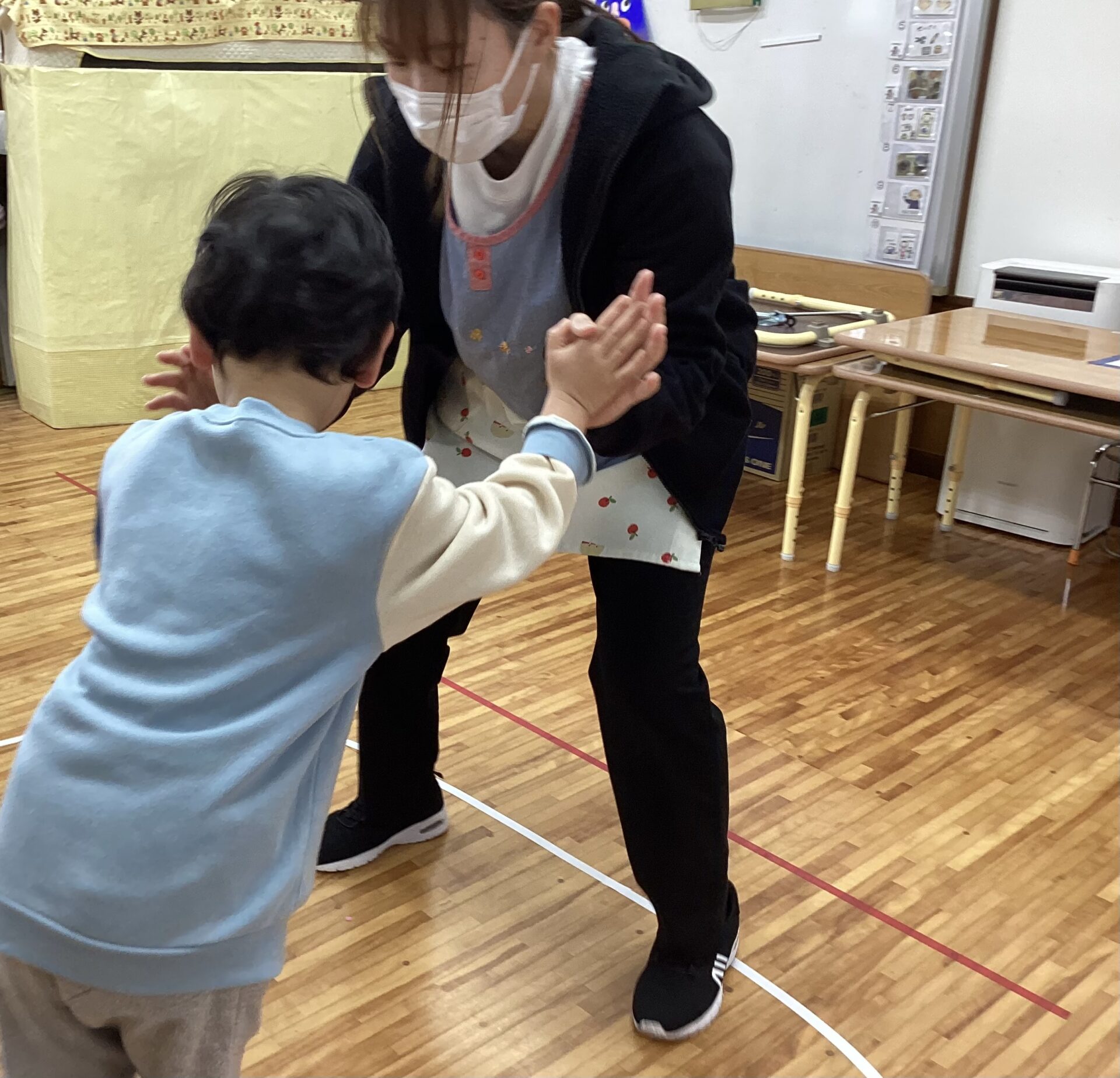 その中で、年長児が年中児さんの気持ちを思いやり、力を加減する姿が見られました。