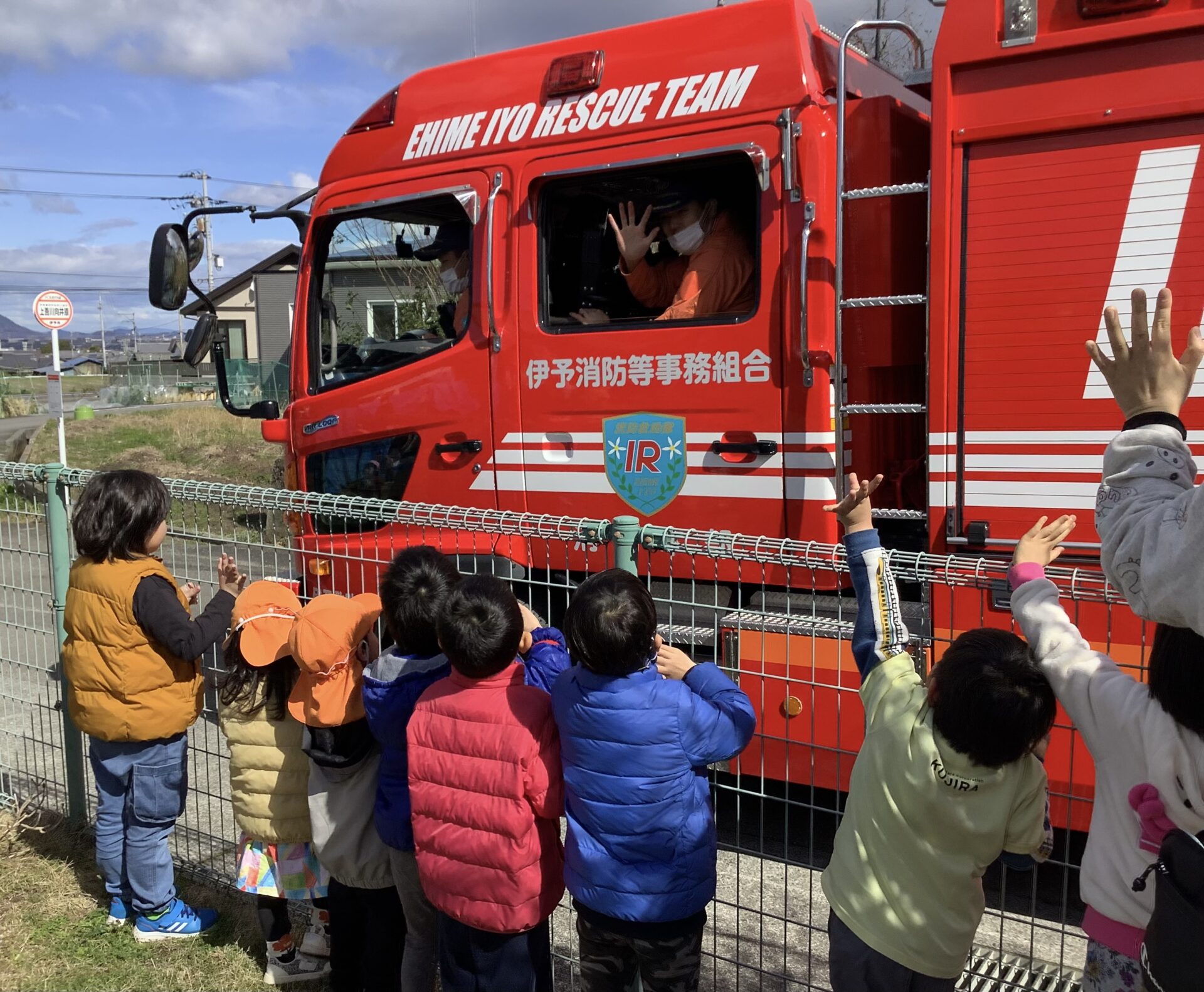 最後は、消防士の皆さんをお見送りしたよ。