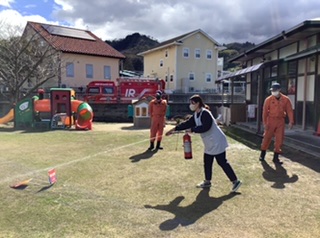 消火器は大人が使うよ。(命を守ることが何より大切、子ども達はまず逃げると教えてくれました)