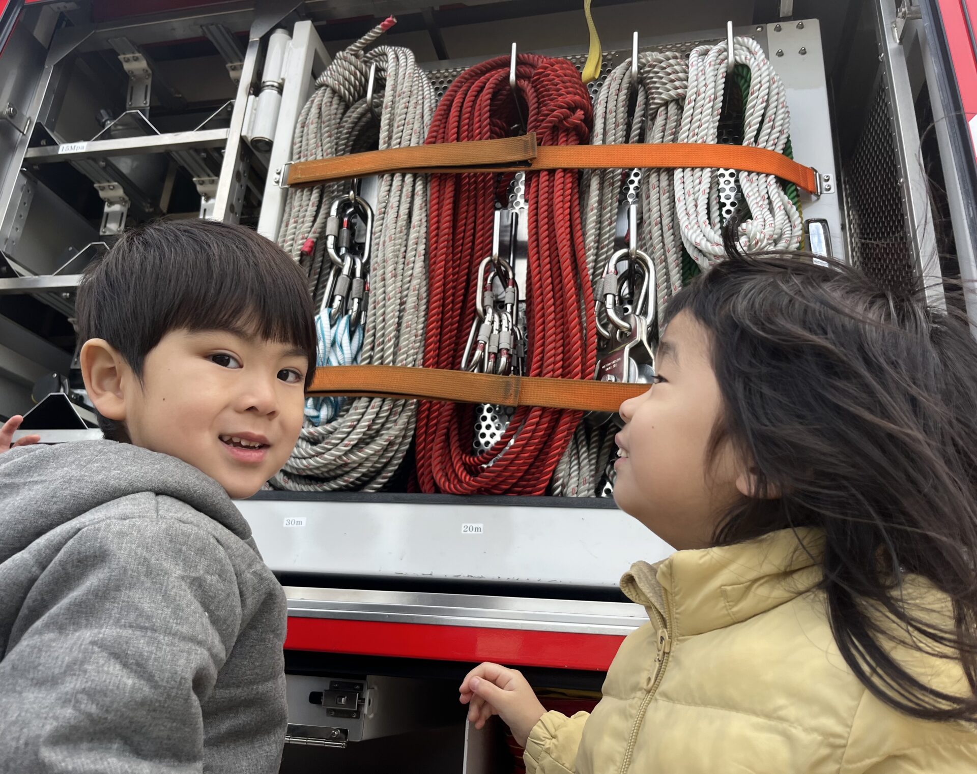 憧れの消防士さんに会えて、消防車を目の前で