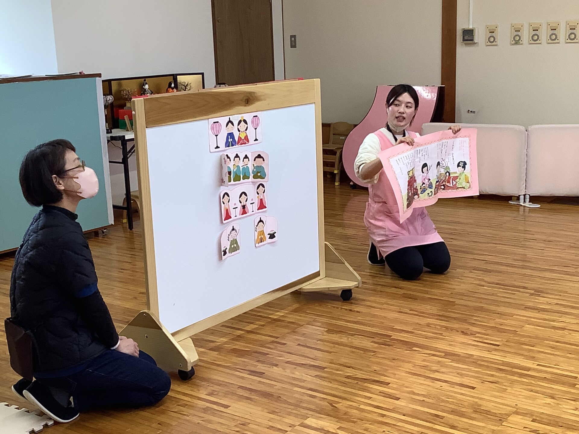 「お花も菱餅も貼ってるよ」と