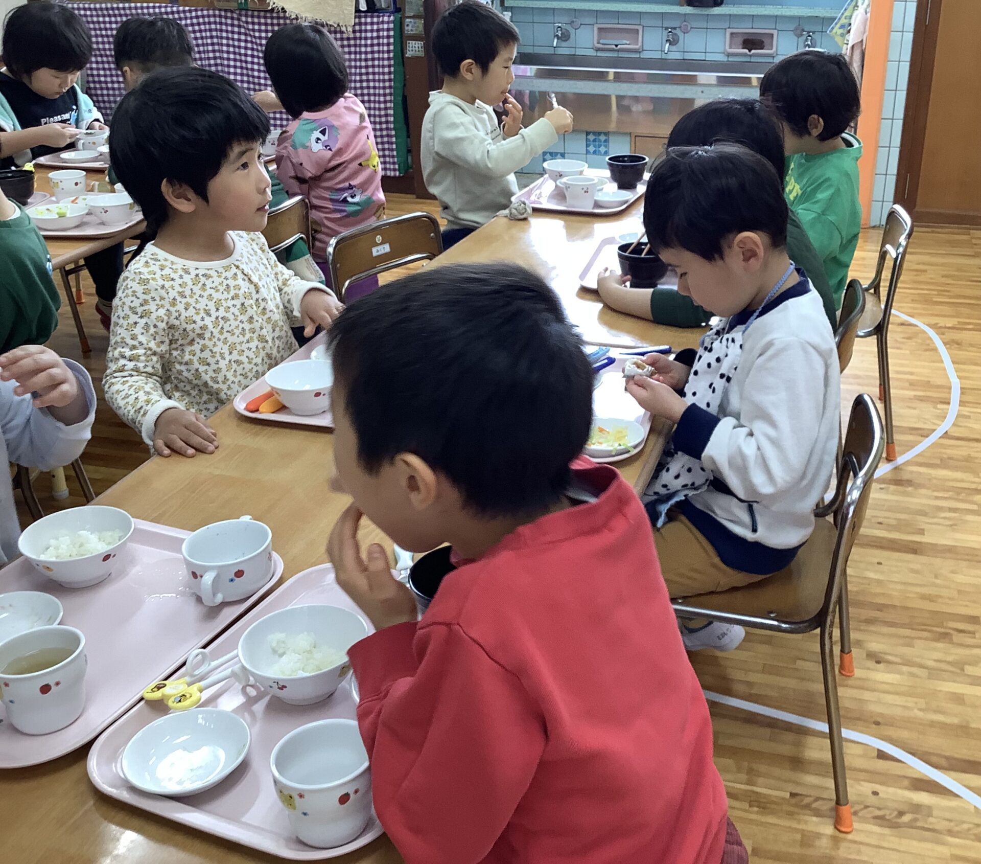 くじらチームの給食では、次々お皿をからっぽにして‥