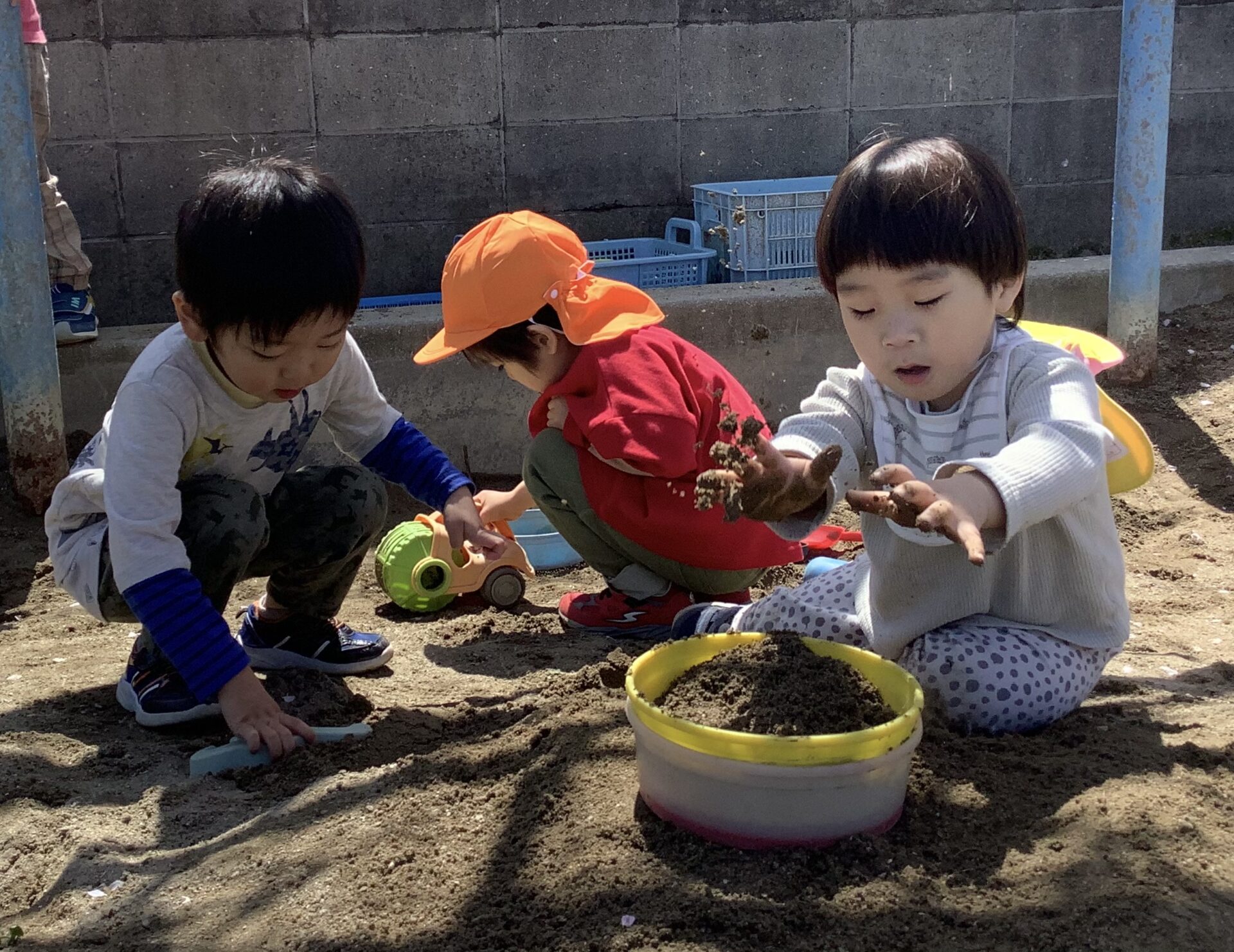 砂場では、花弁を集めてお店屋さんが開店しました。