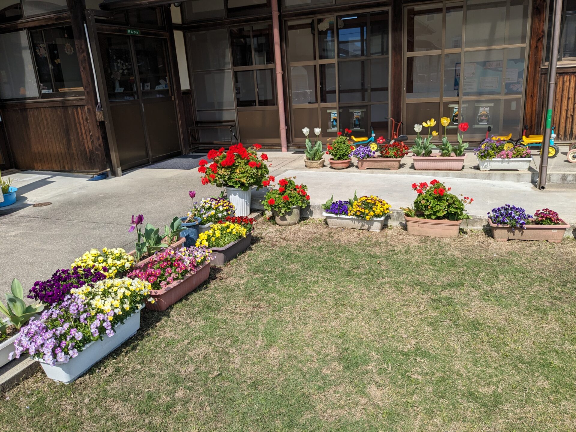 子どもたちが楽しく遊ぶ園庭にはきれいな花が咲いています。